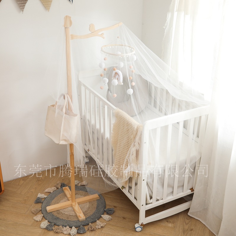 亚马逊木制婴儿床铃支架可旋转宝宝安抚支架落地悬挂木质床铃玩具