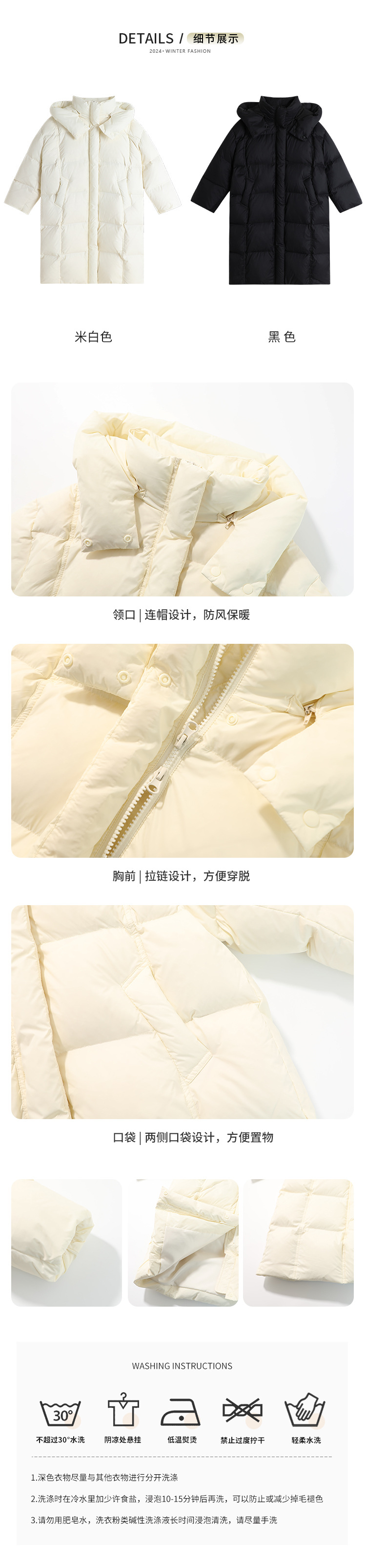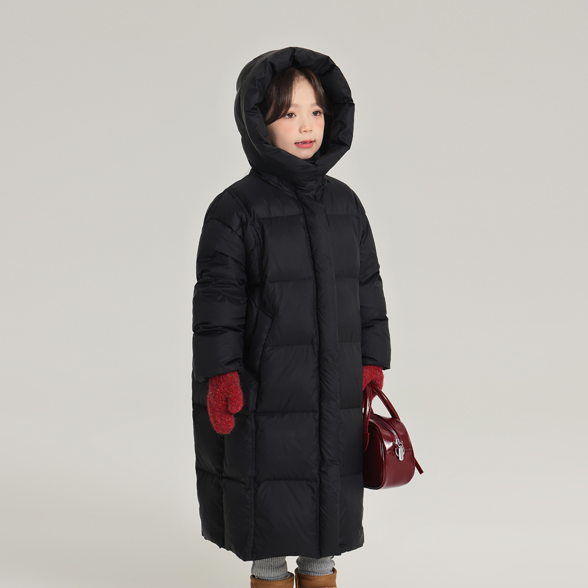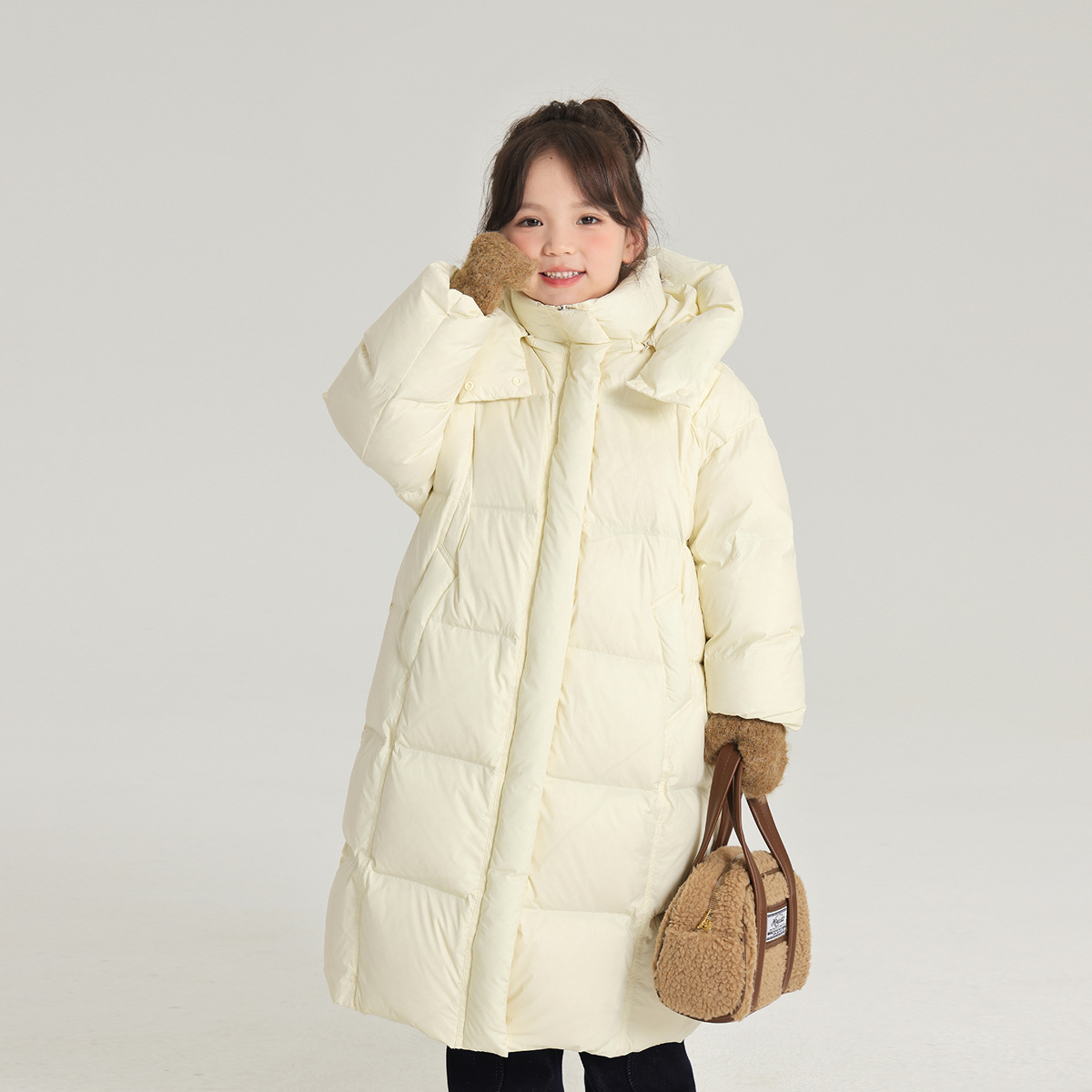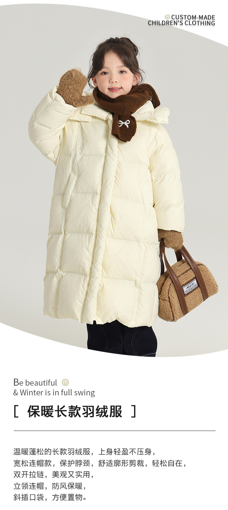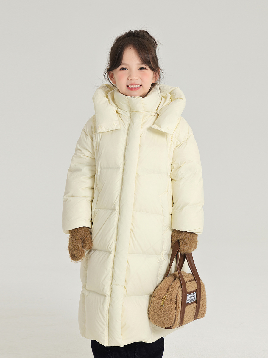 沫沫家女童保暖三防羽绒服时尚百搭纯色长款宽松版型羽绒服外套