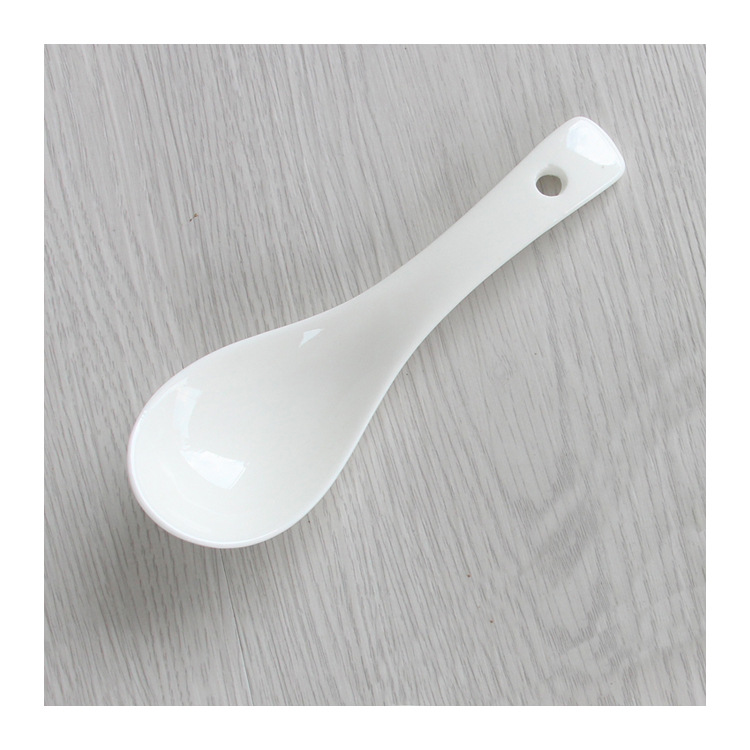 纯白陶瓷小勺子酒店餐厅汤勺家用调羹镁质瓷汤匙