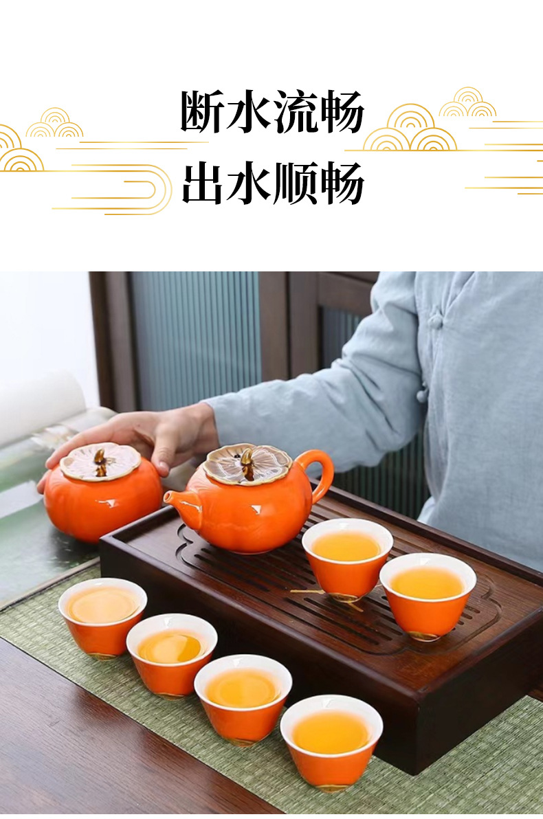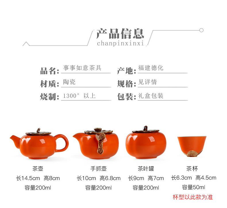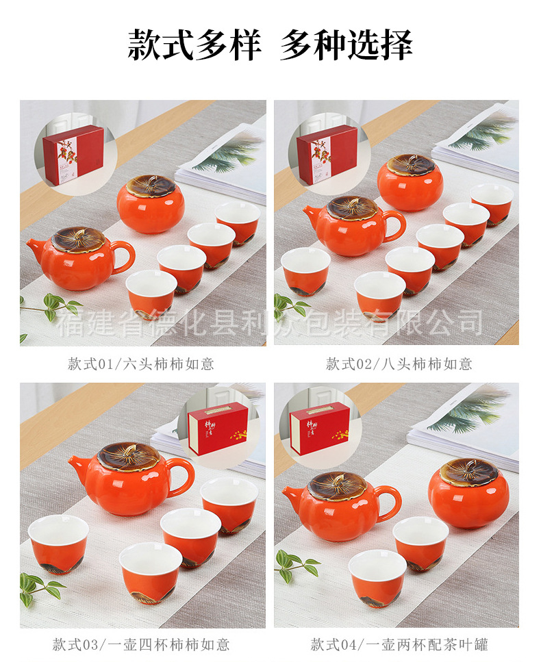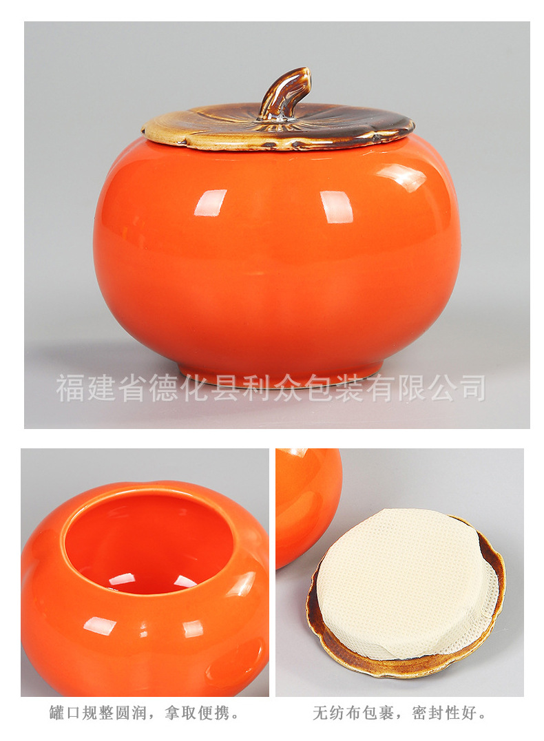 柿柿如意陶瓷功夫茶具礼盒套装柿子茶叶罐密封储茶罐创意礼品批发