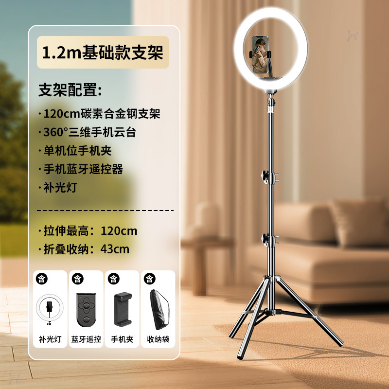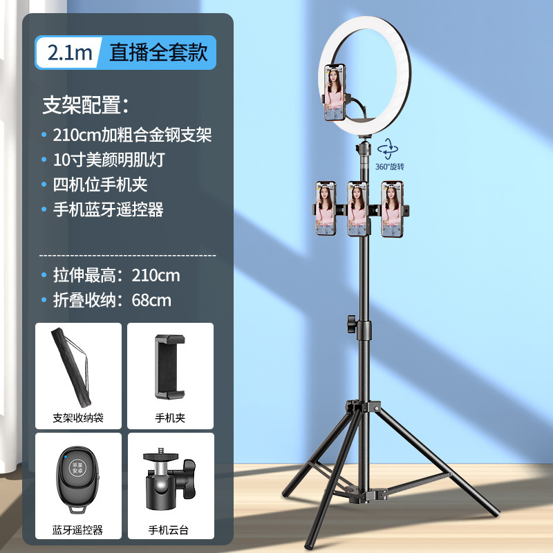 厂家直销直播手机支架金属户外拍照摄影升降加长多功能三脚架跨境