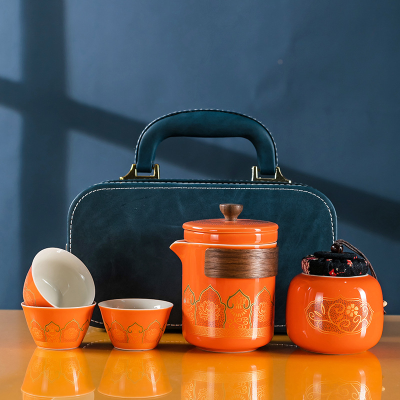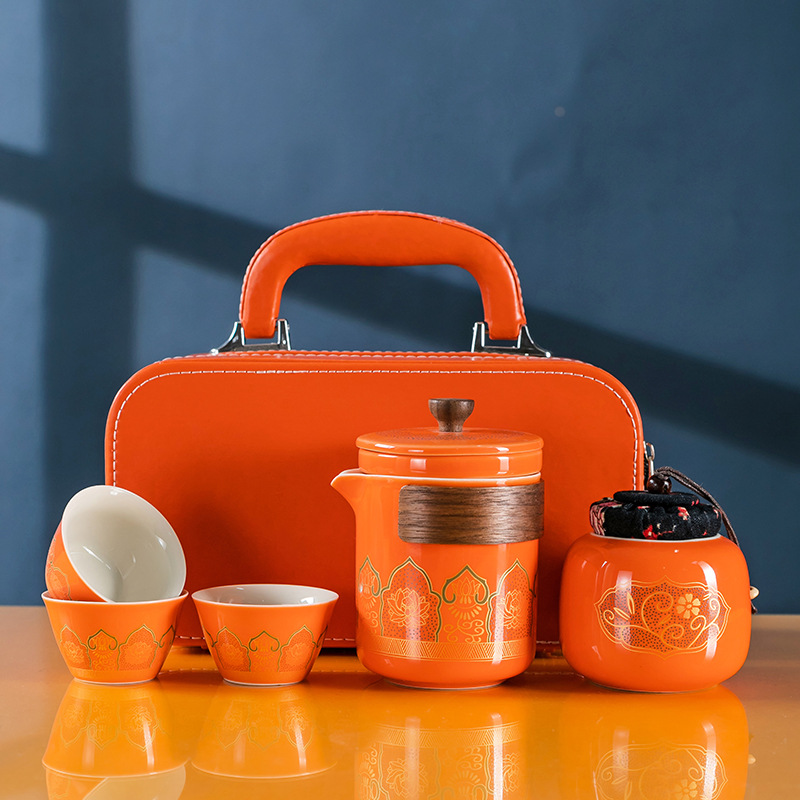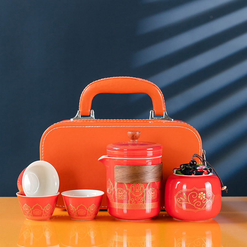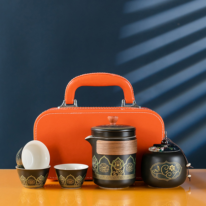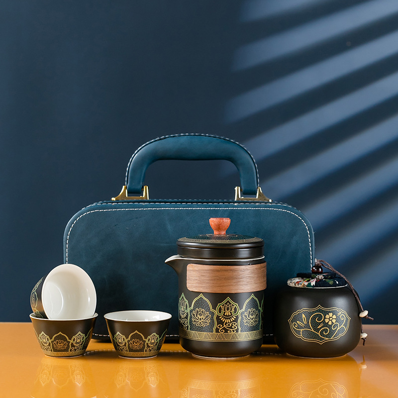 旅行茶具套装户外露营古韵陶瓷茶具泡茶快客杯商务礼品手提礼盒包
