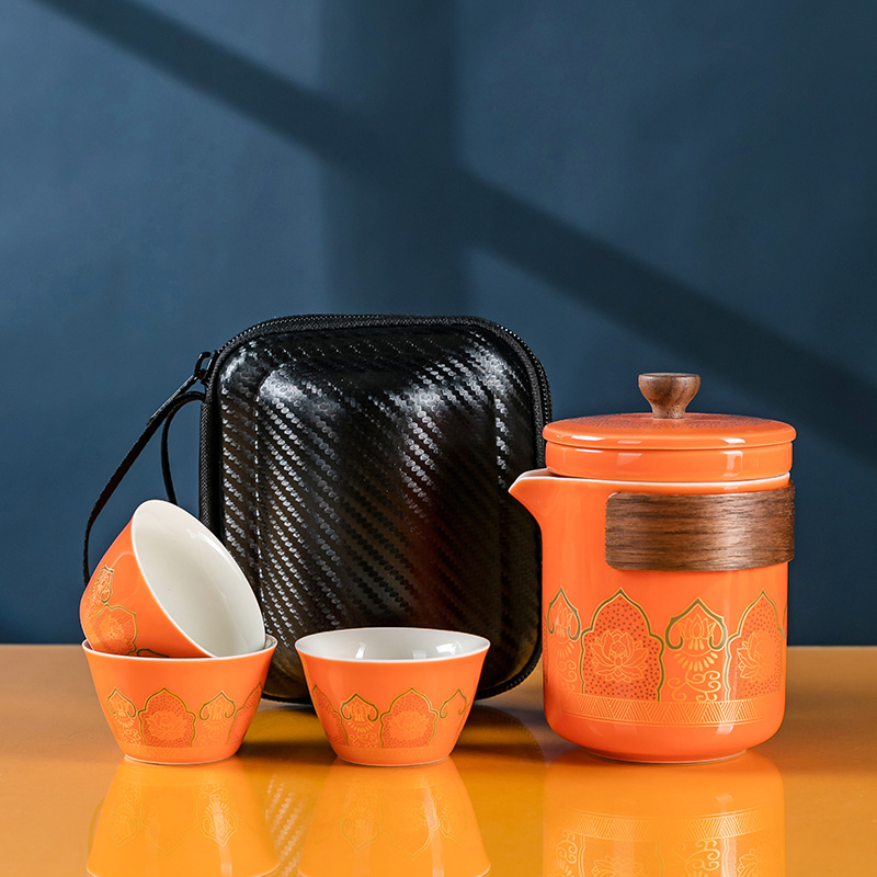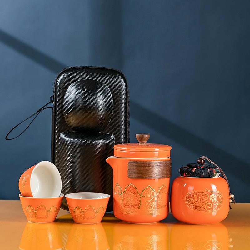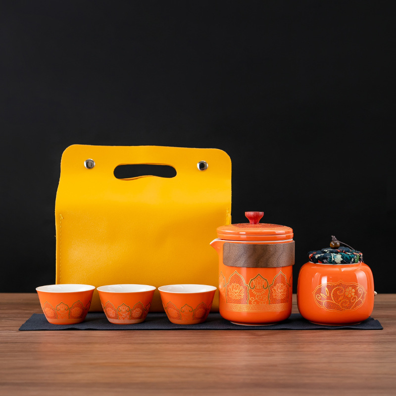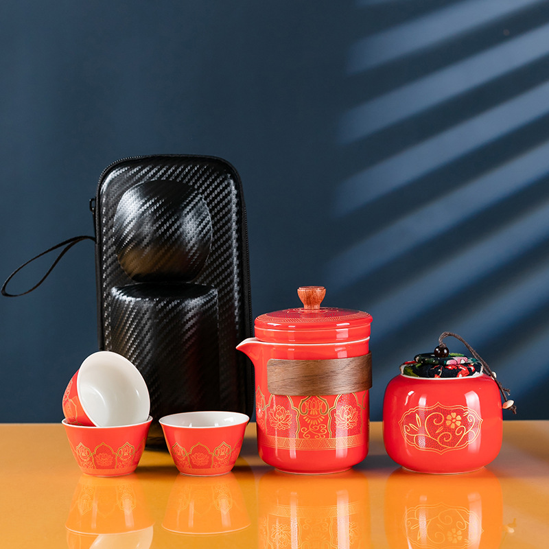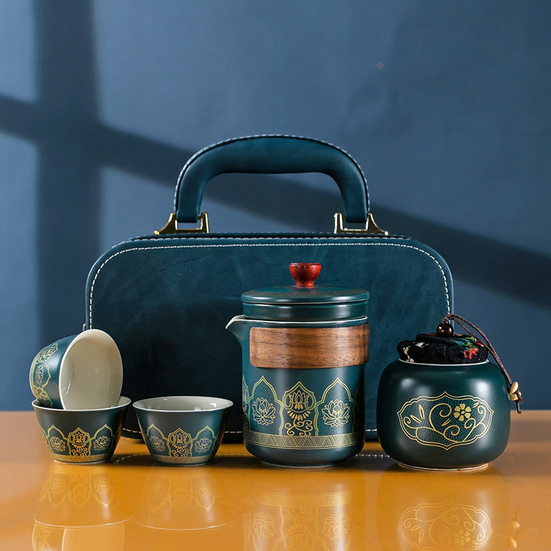 旅行茶具套装户外露营古韵陶瓷茶具泡茶快客杯商务礼品手提礼盒包