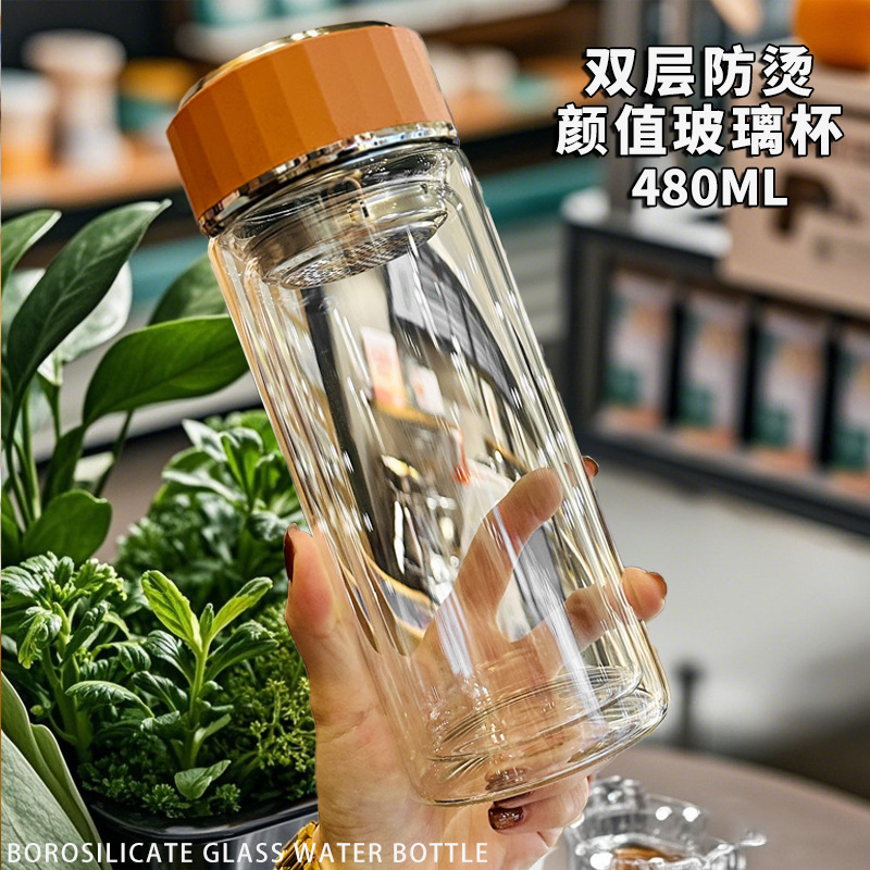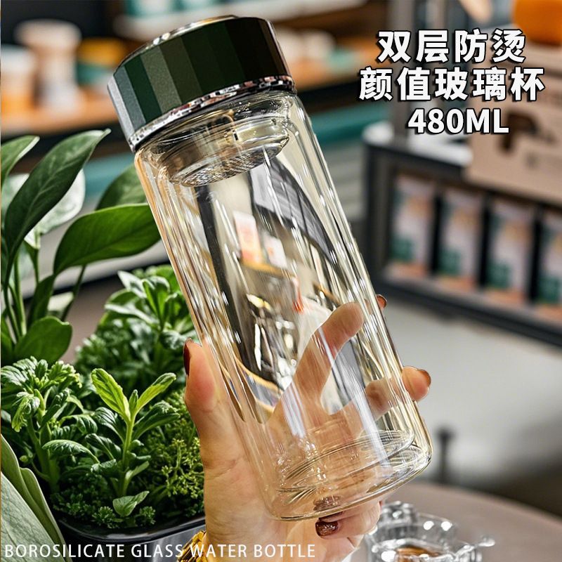 双层玻璃杯高级感家用带盖茶杯大容量耐高温高端水杯批发一件起批