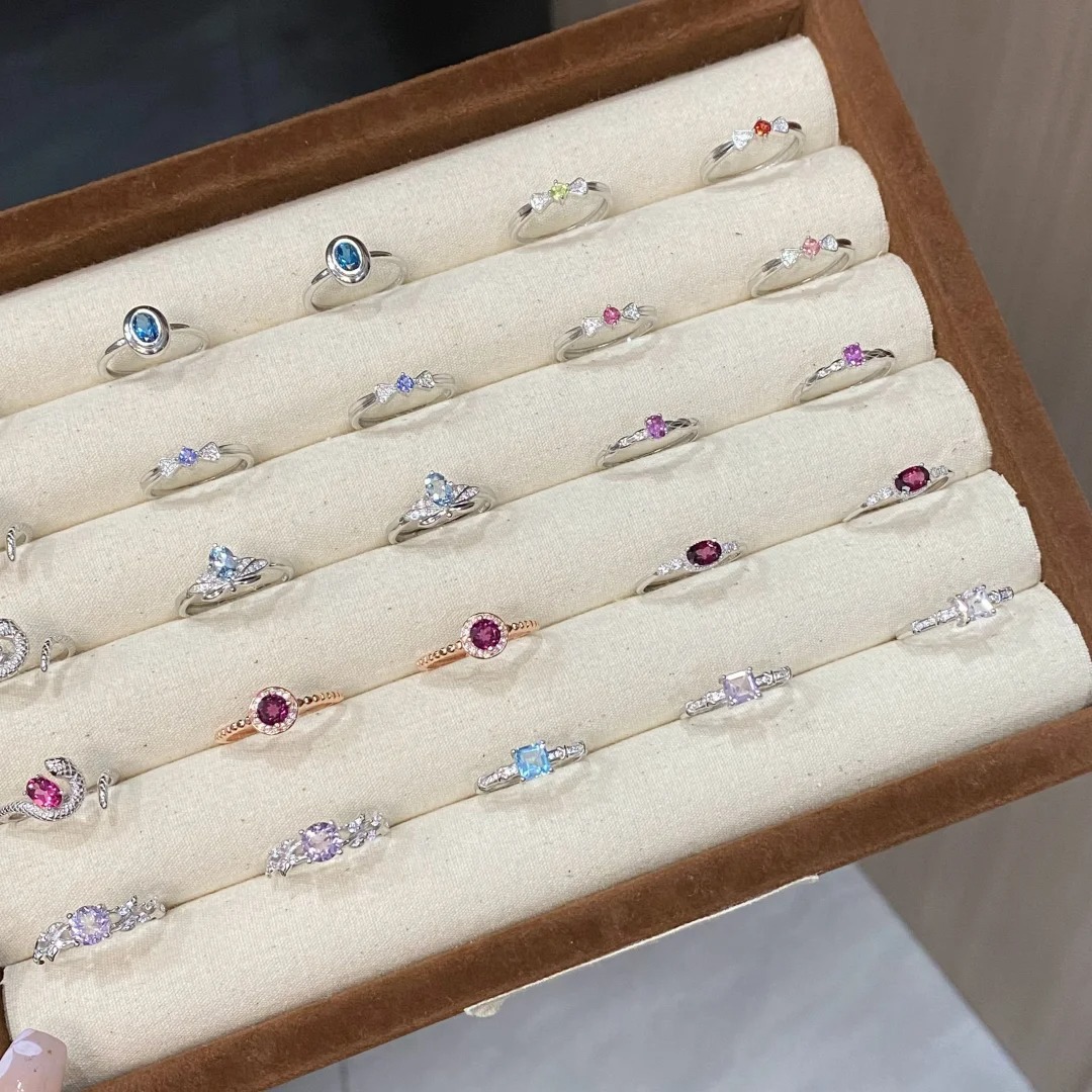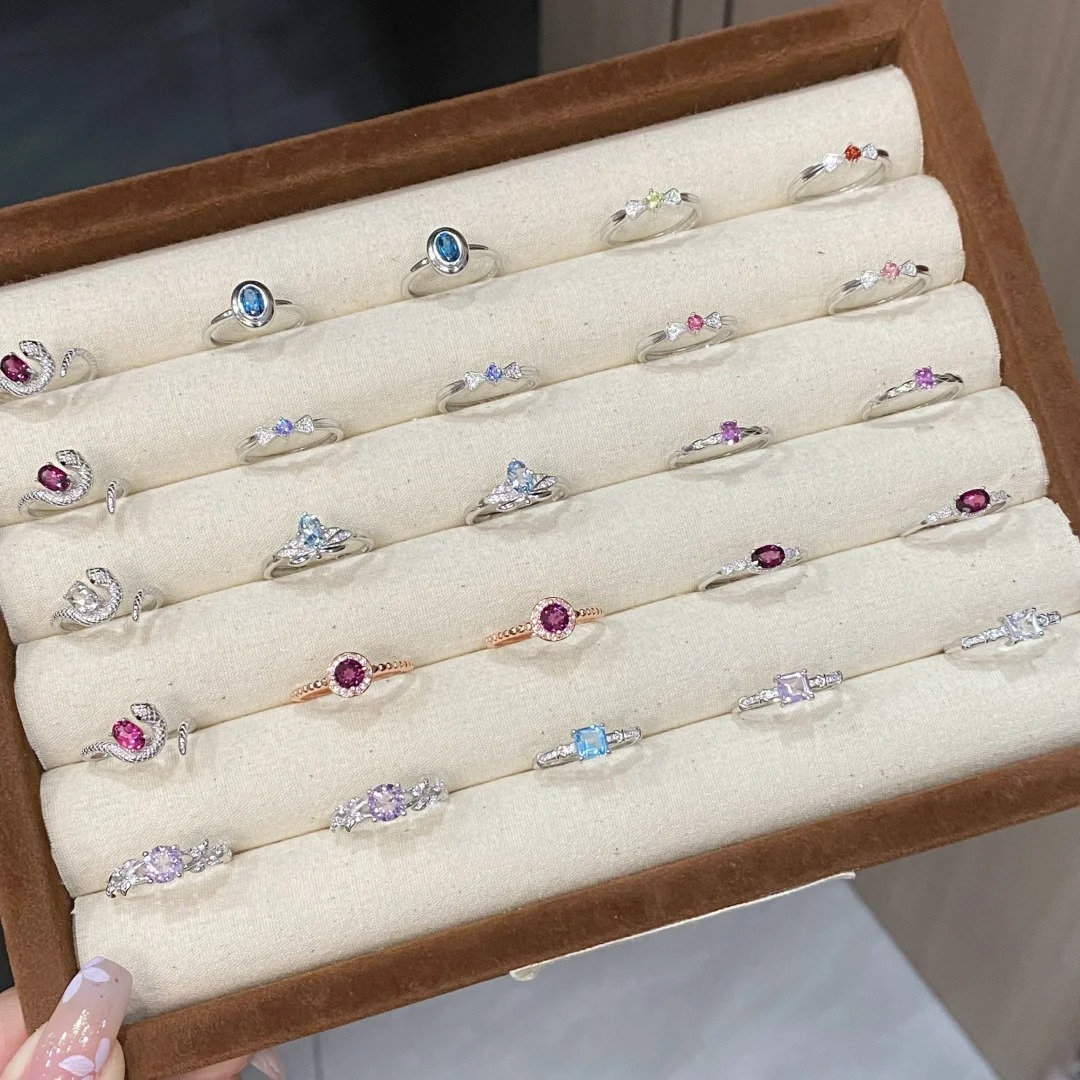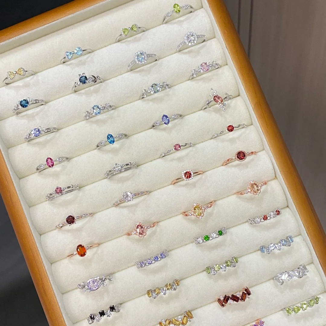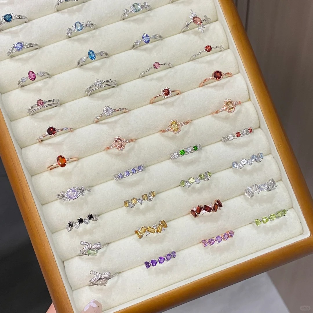 S925纯银天然彩宝锆石日系戒指女不掉色小众高级感轻奢开口指环潮