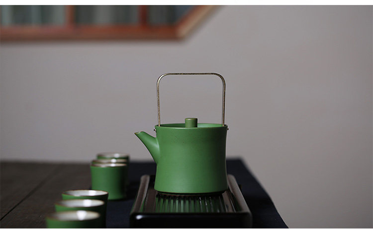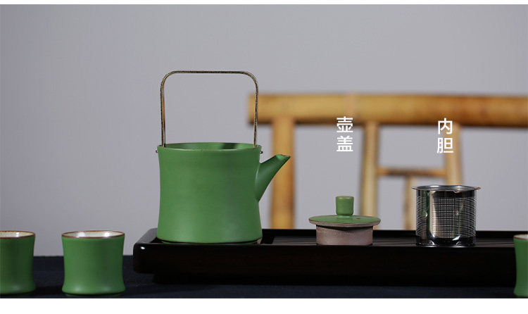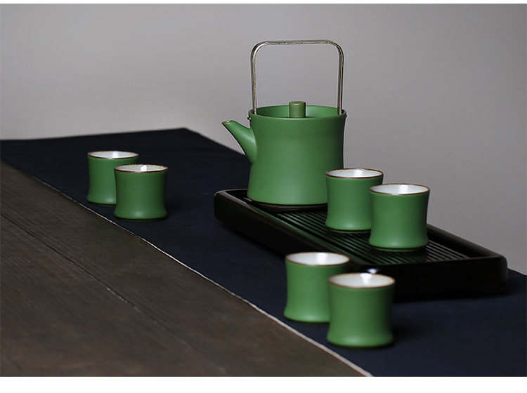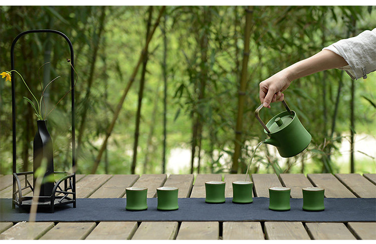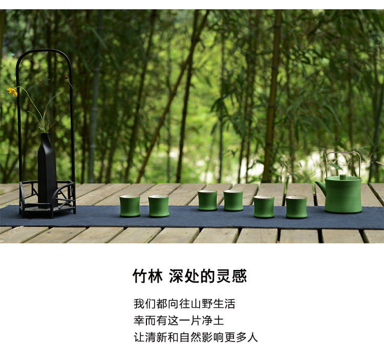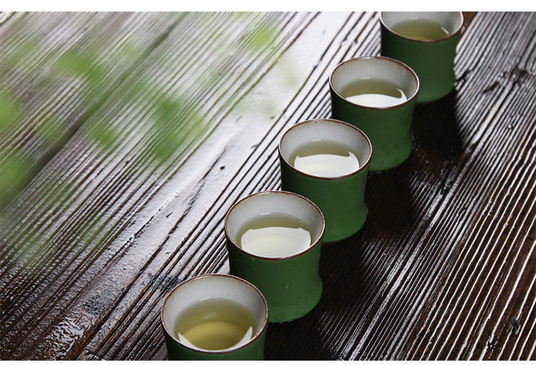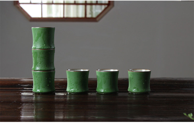 陶瓷竹节茶杯复古仿青竹功夫品茗杯大容量主人杯山水绿釉竹节杯