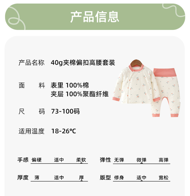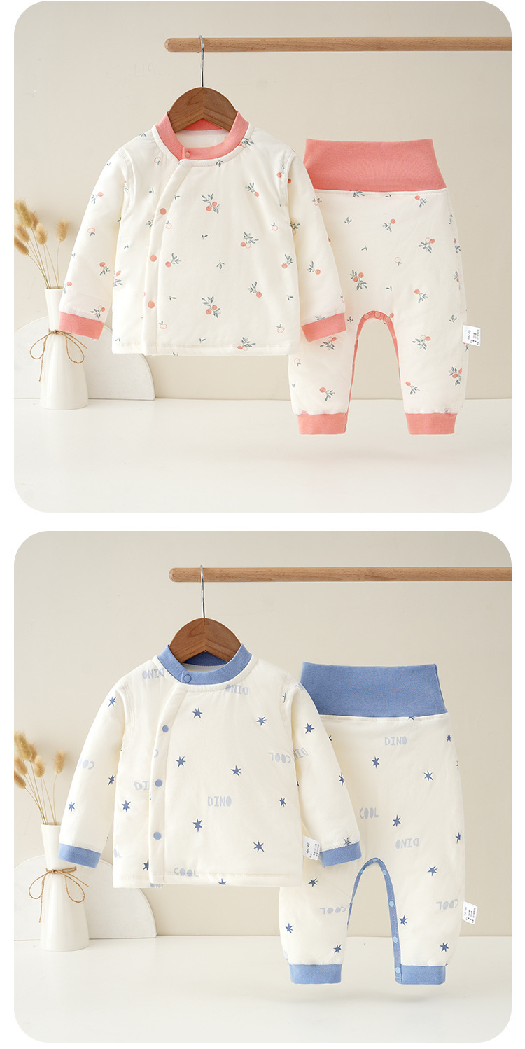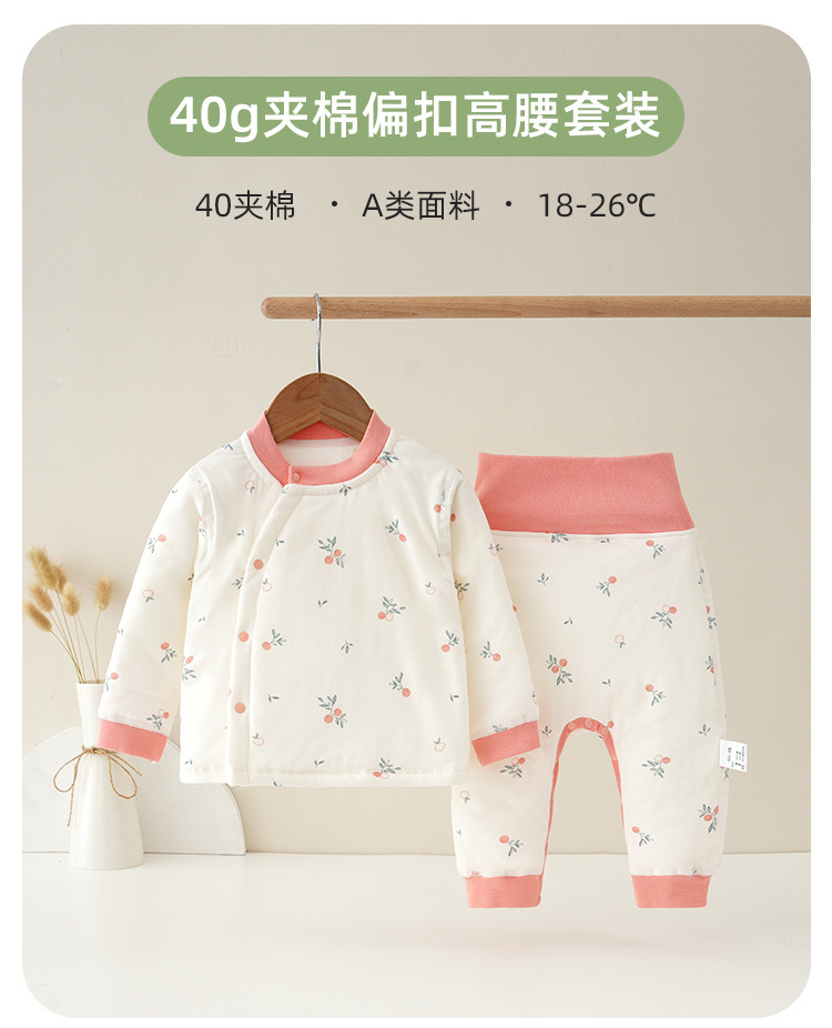 婴儿40g夹棉分体套装新生宝宝a类保暖内衣春秋季高腰免脱加厚衣服