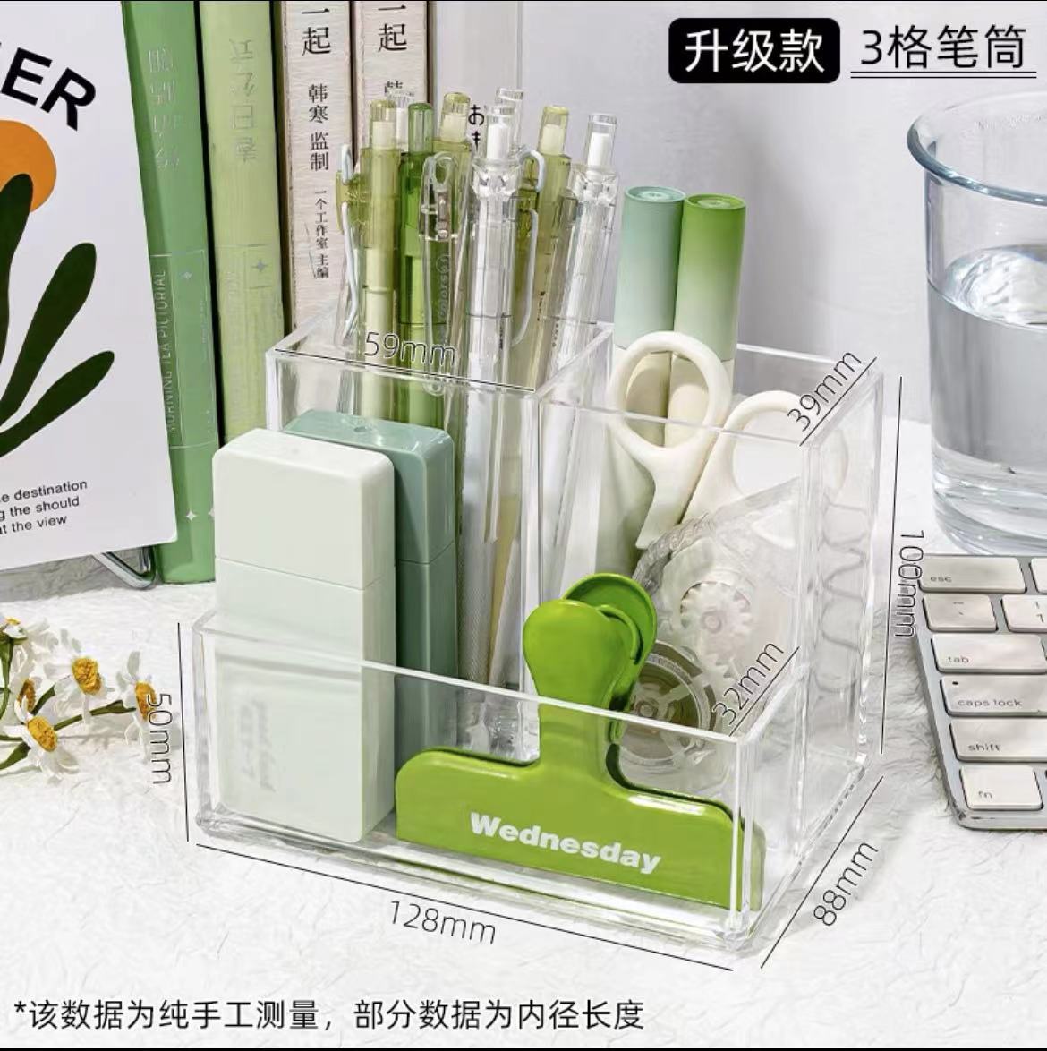 透明五格亚克力笔筒ins高颜值收纳盒办公桌收纳方形塑料笔筒收纳