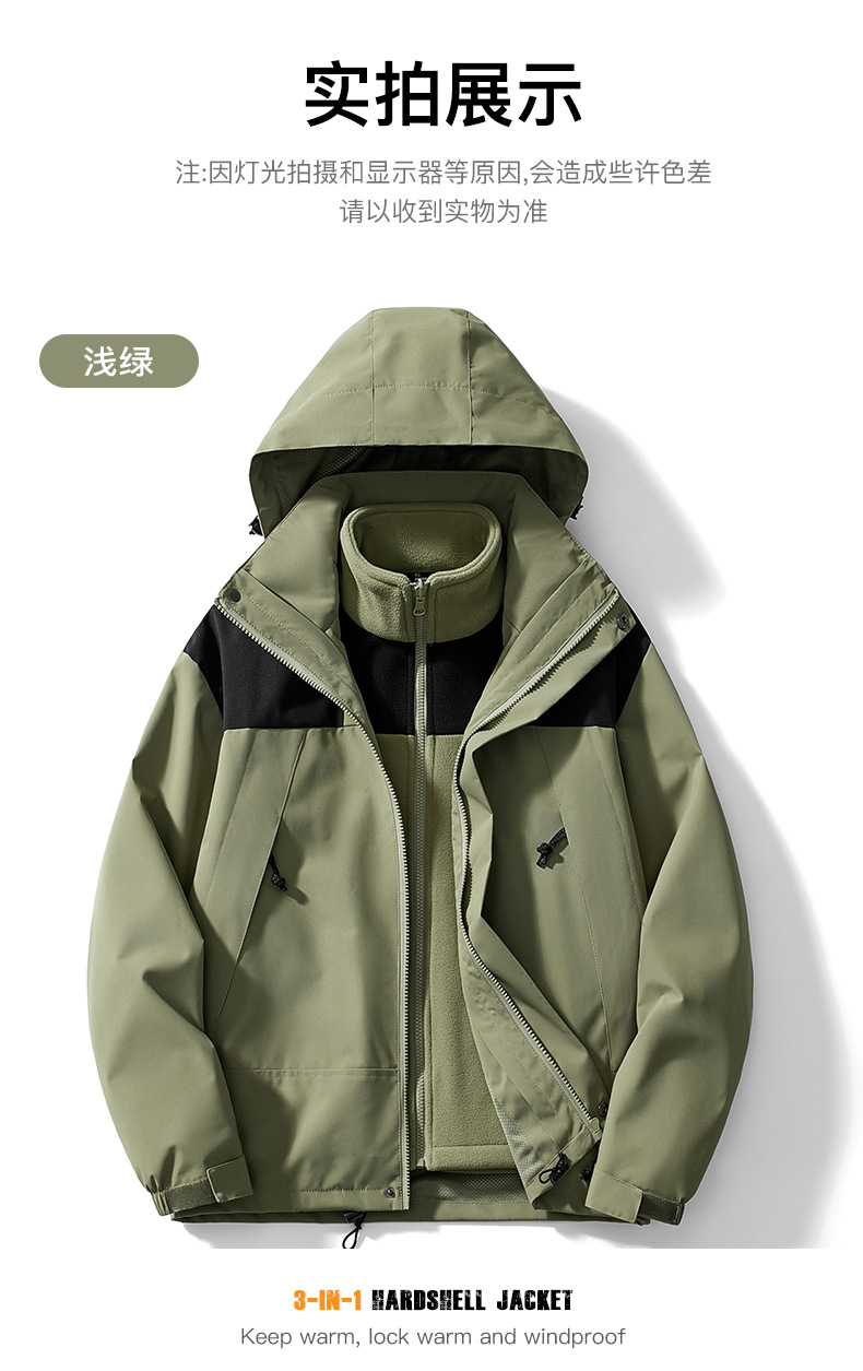 户外冲锋衣三合一男款秋冬加厚外套防风防泼水两件套登山服女印制
