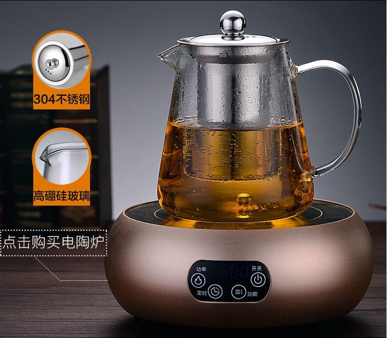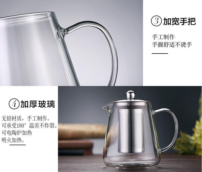 透明玻璃泡茶壶不锈钢过滤红茶煮茶器家用过滤茶具三角壶大号