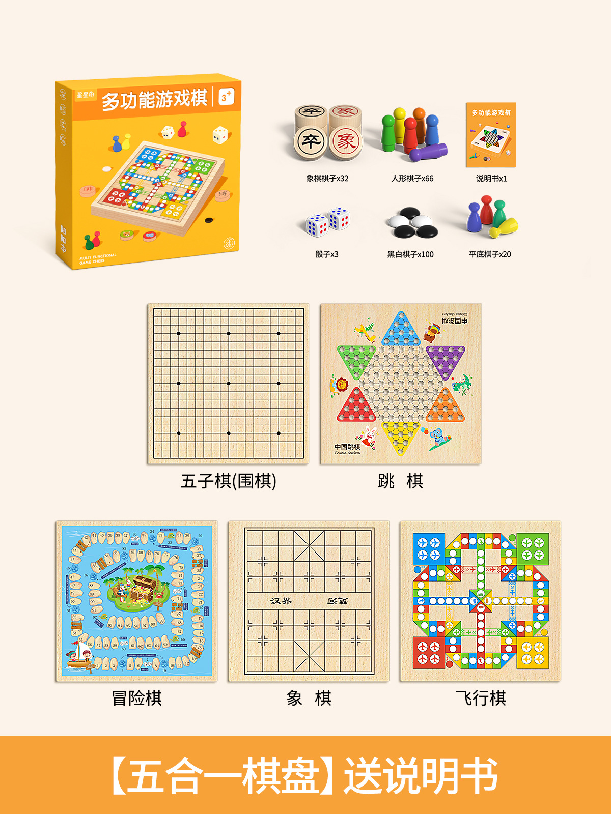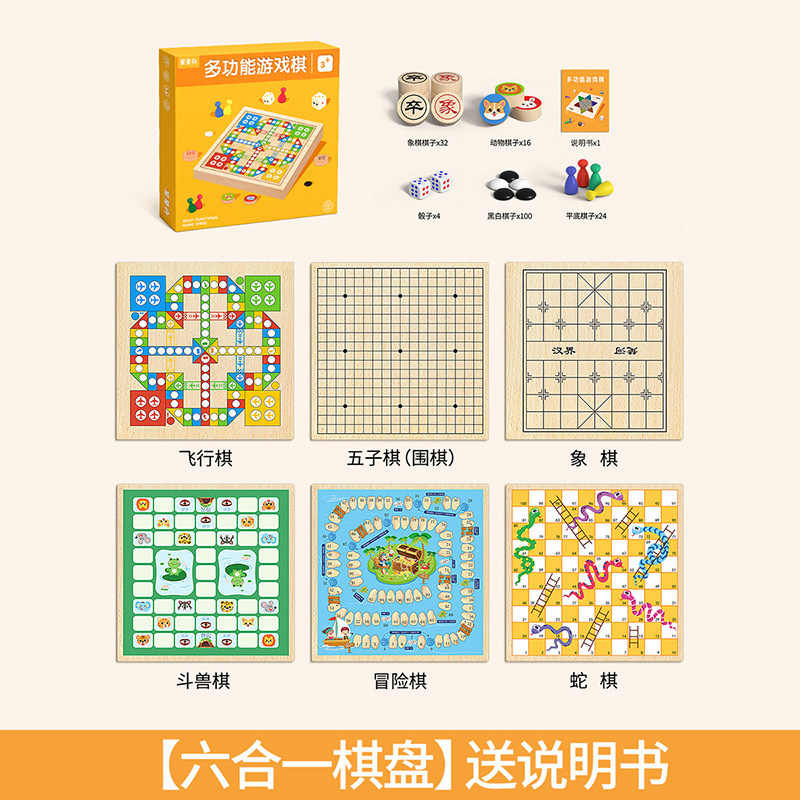 儿童多功能棋盘飞行棋五子棋跳棋象棋十二合一棋类益智玩具桌游版