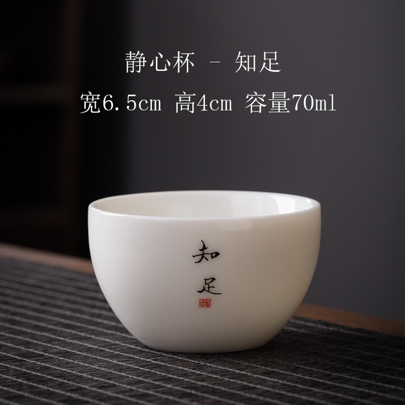 单个茶杯茶具陶瓷家用羊脂玉白瓷礼品中式加厚功夫禅语主人品茗杯