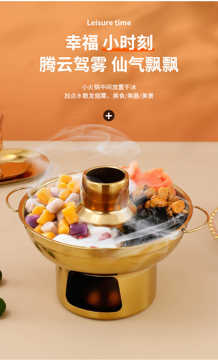 网红干冰小火锅水果捞烧仙草甜品火锅芋圆冰淇淋糖水甜品喷雾铜锅