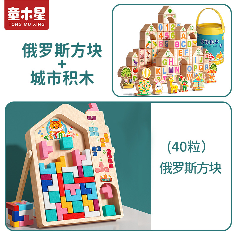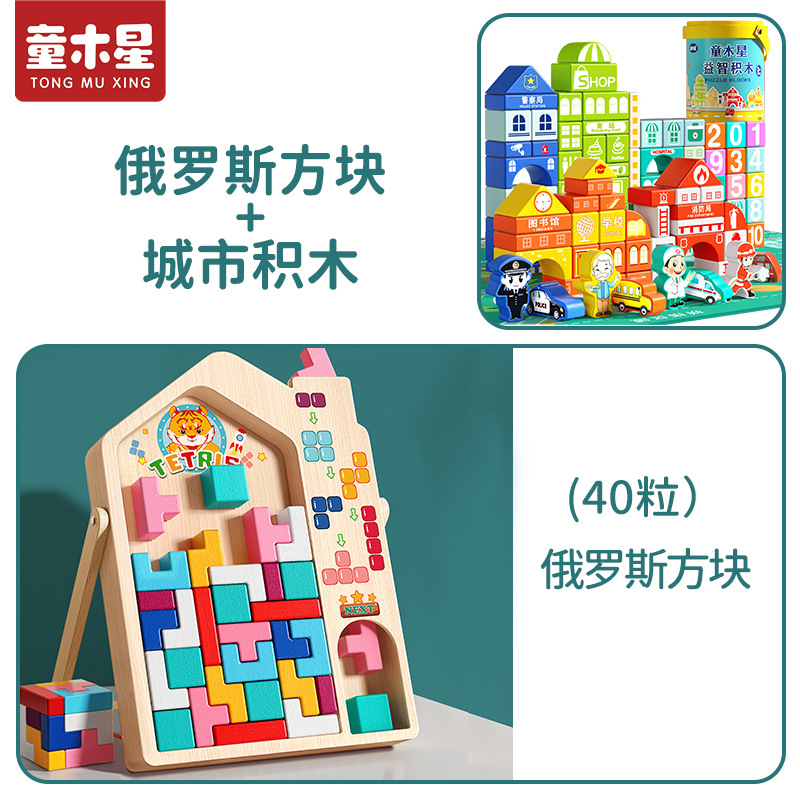 俄罗斯方块积木拼图启蒙思维宝宝3男孩6女孩动脑训练益智积木玩具