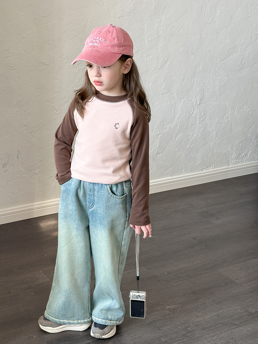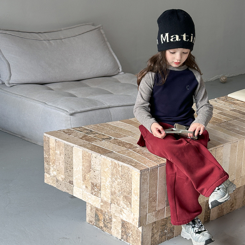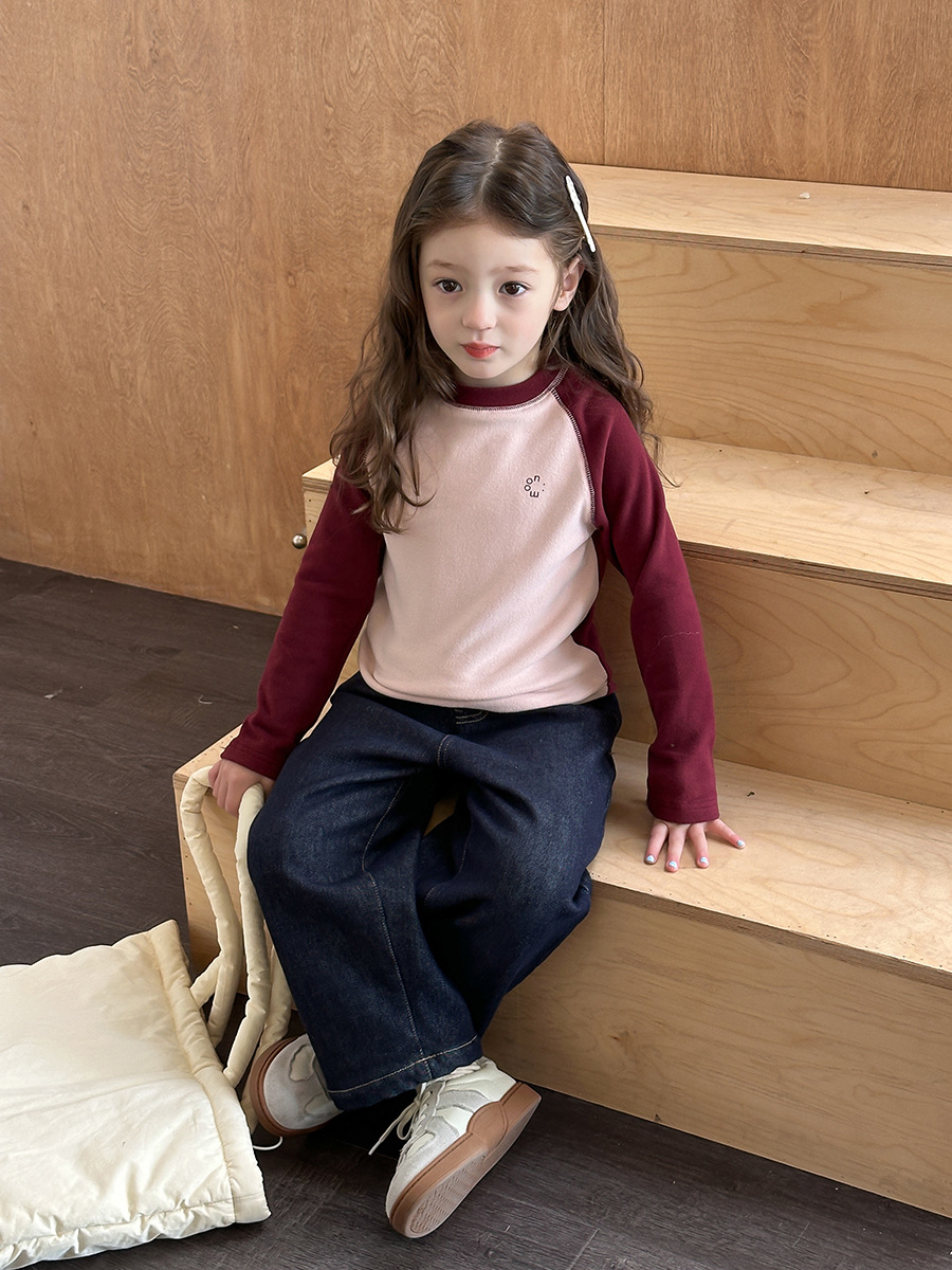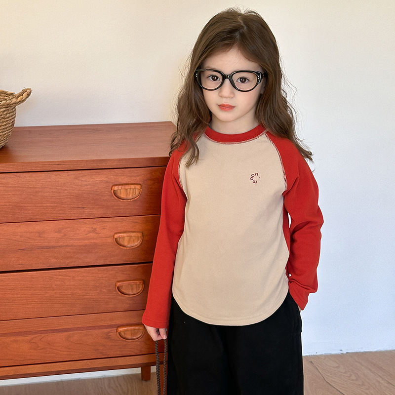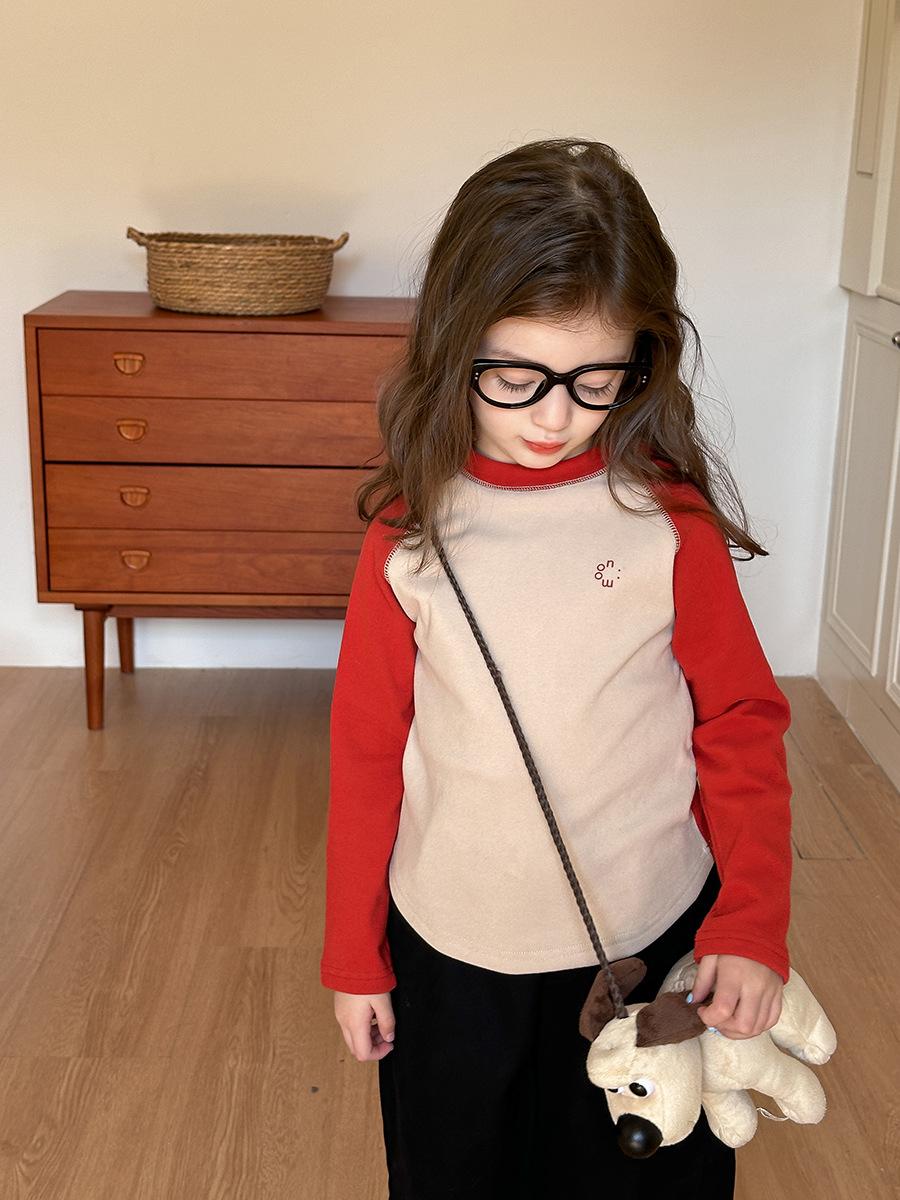 【双面慕斯绒】艾摩贝贝女童宝宝韩版修身冬季撞色插肩打底衫上衣