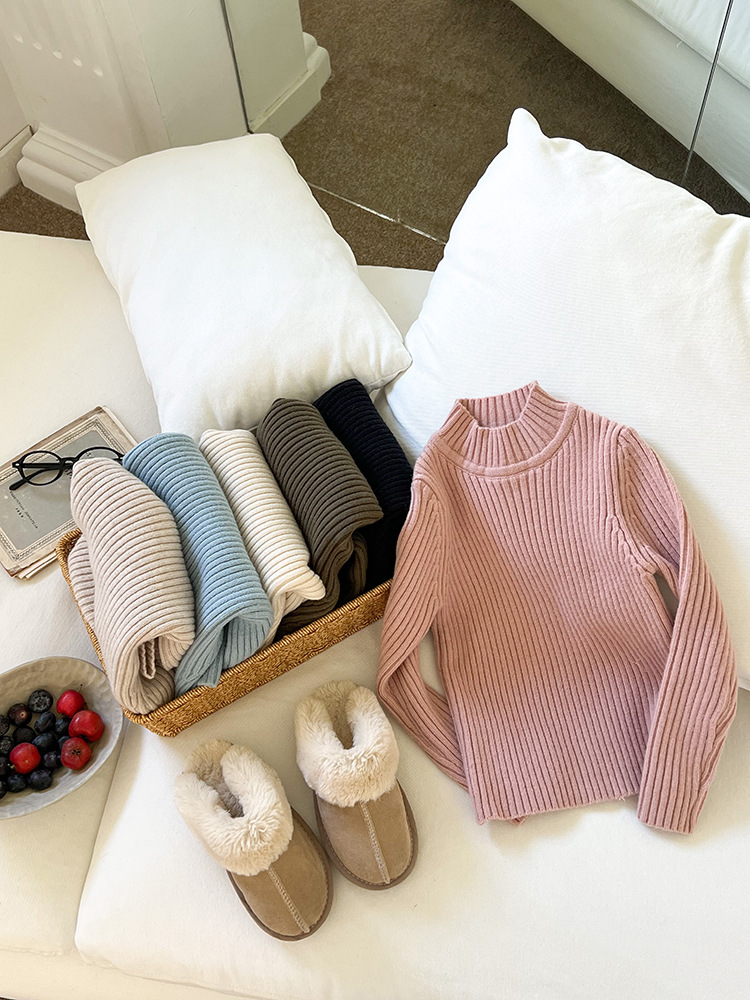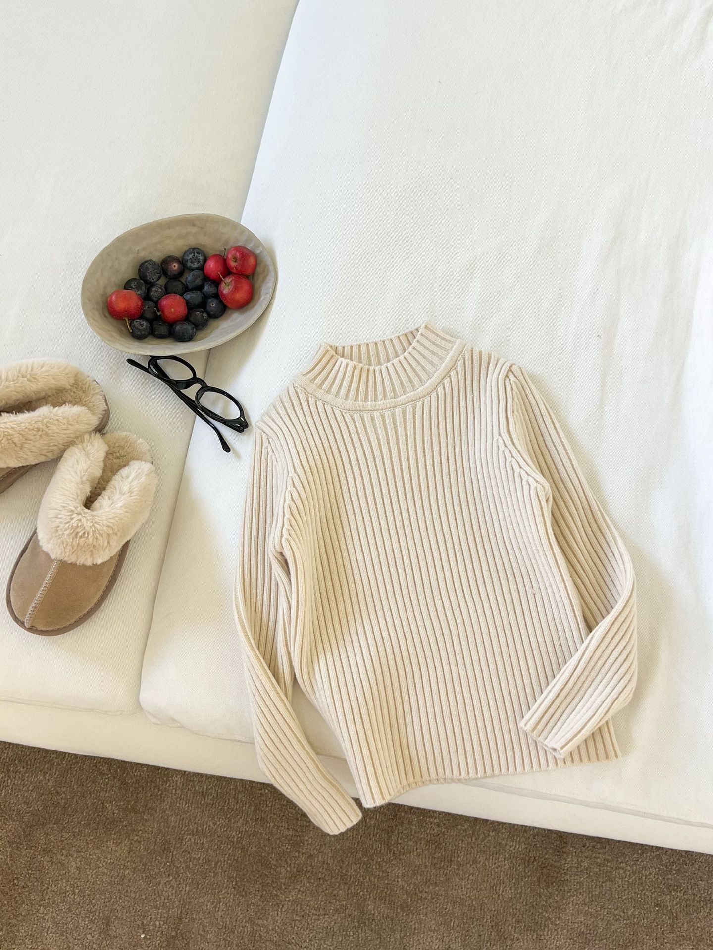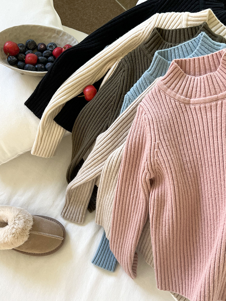 艾摩贝贝男女童宝宝高弹力安哥拉纱线韩版百搭中领打底毛衣2024冬