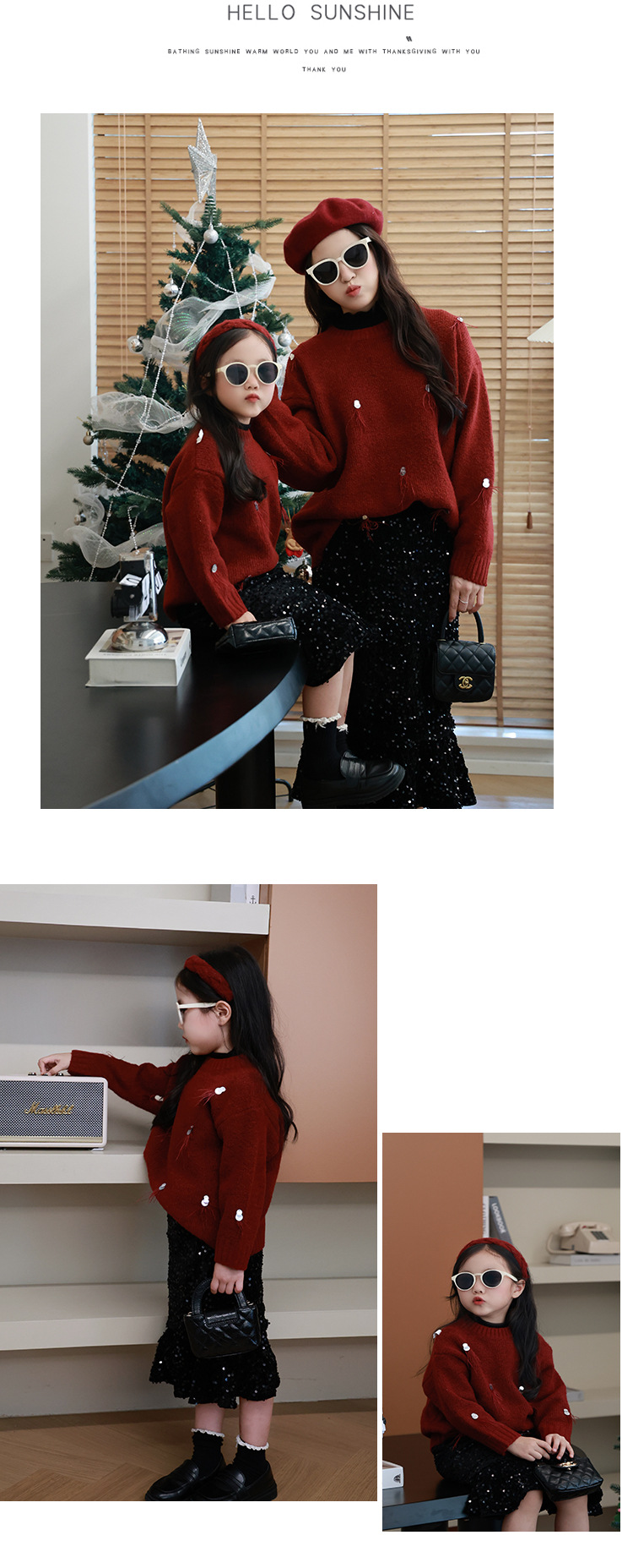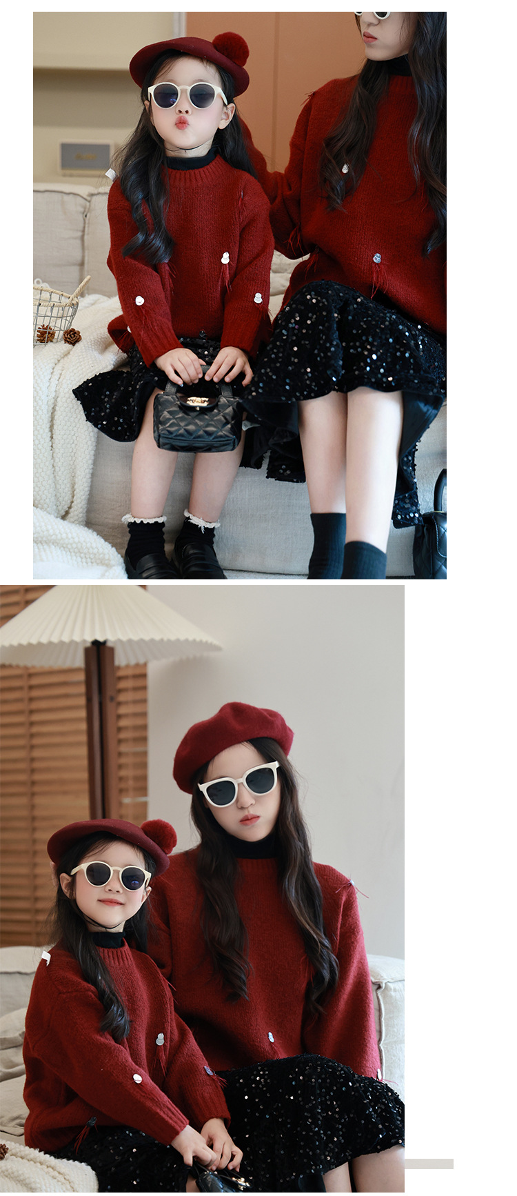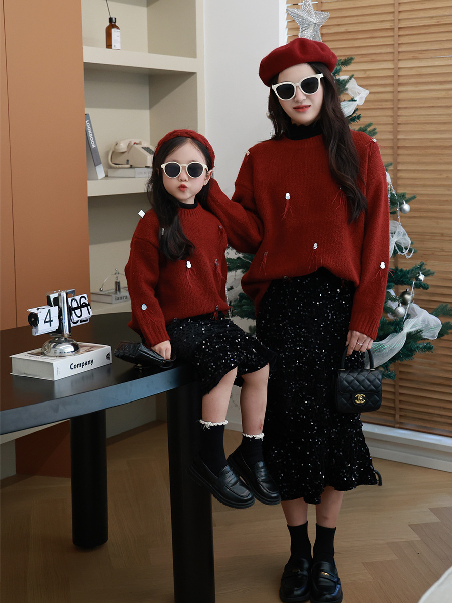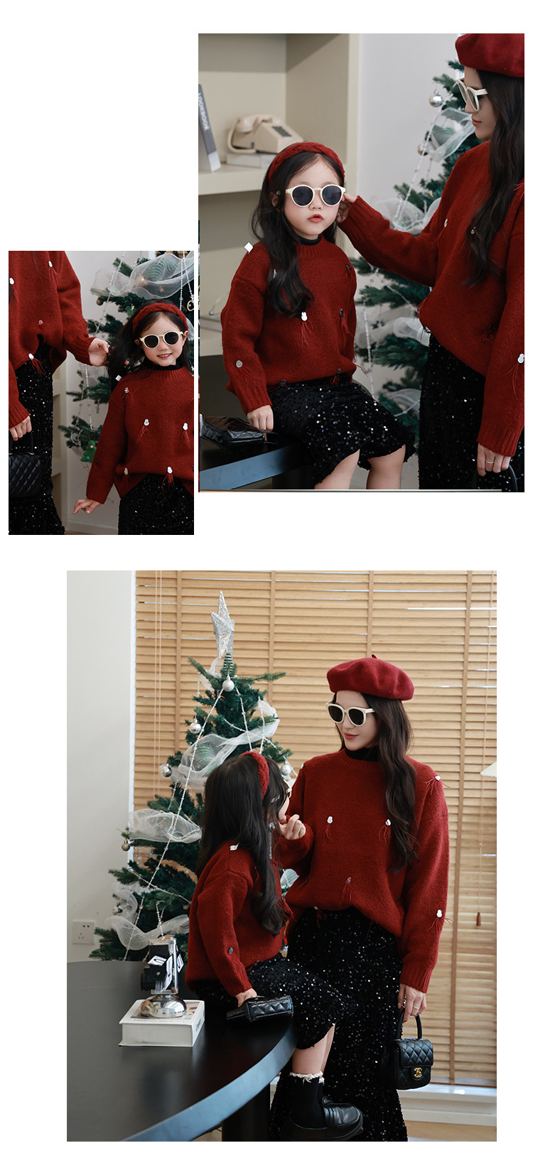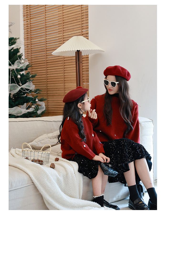 现货一起玩亲子装母女套头毛衣女童韩系圣诞新年装安哥拉红毛衣套