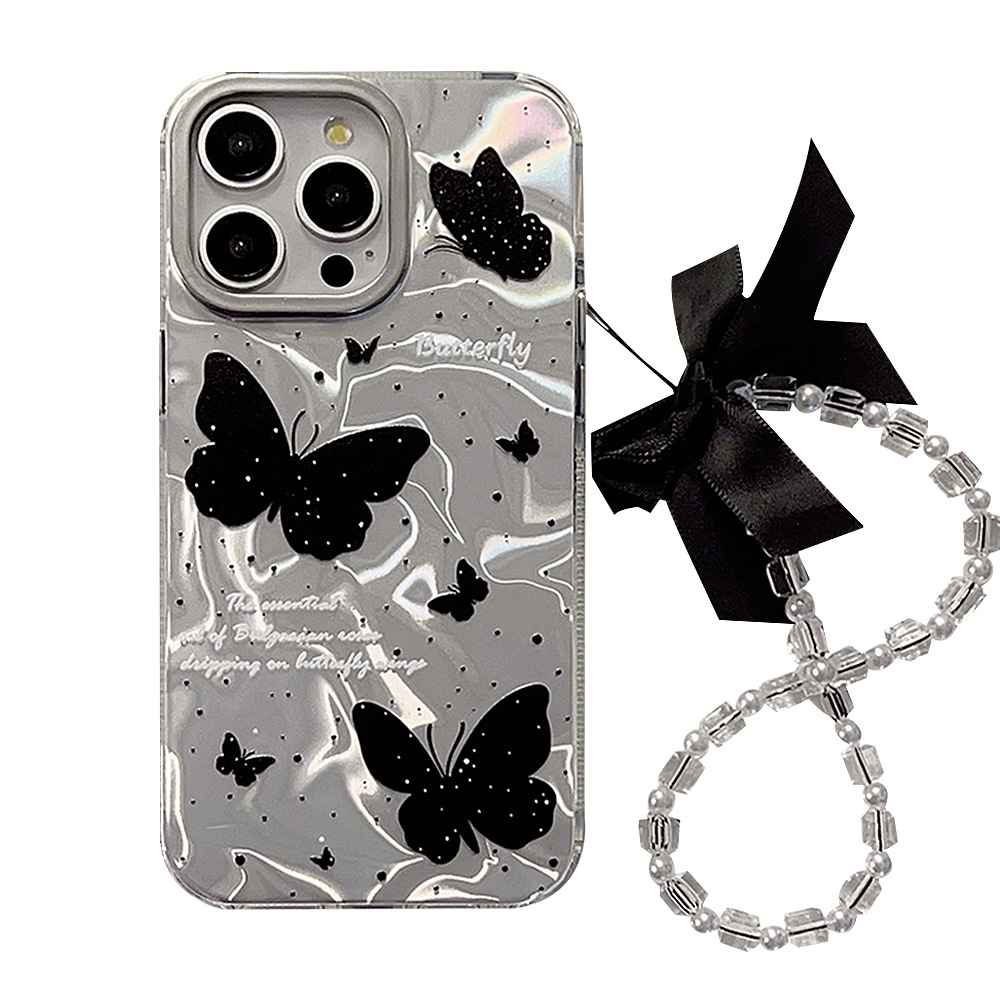 水波纹黑色蝴蝶14ProMax苹果16手机壳iPhone15适用12链条13冷淡风