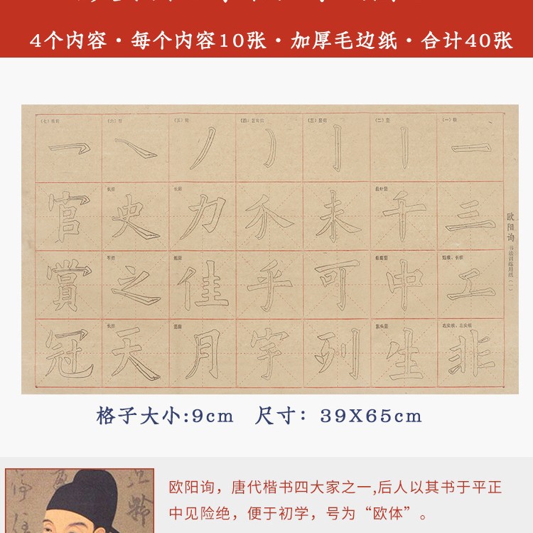 加厚毛边纸米字格毛笔字书法纸学生练习半生熟字帖临摹宣纸批发