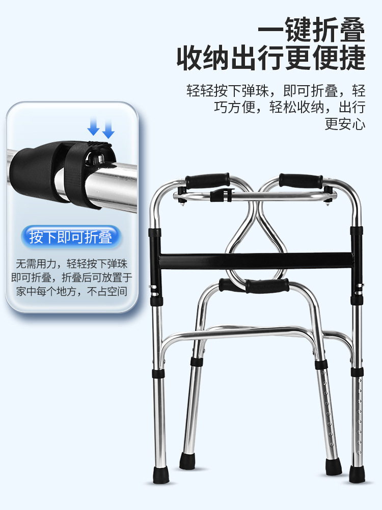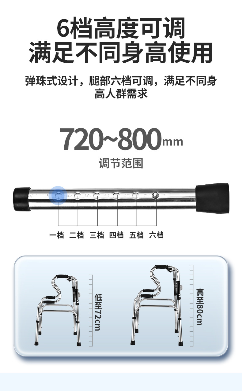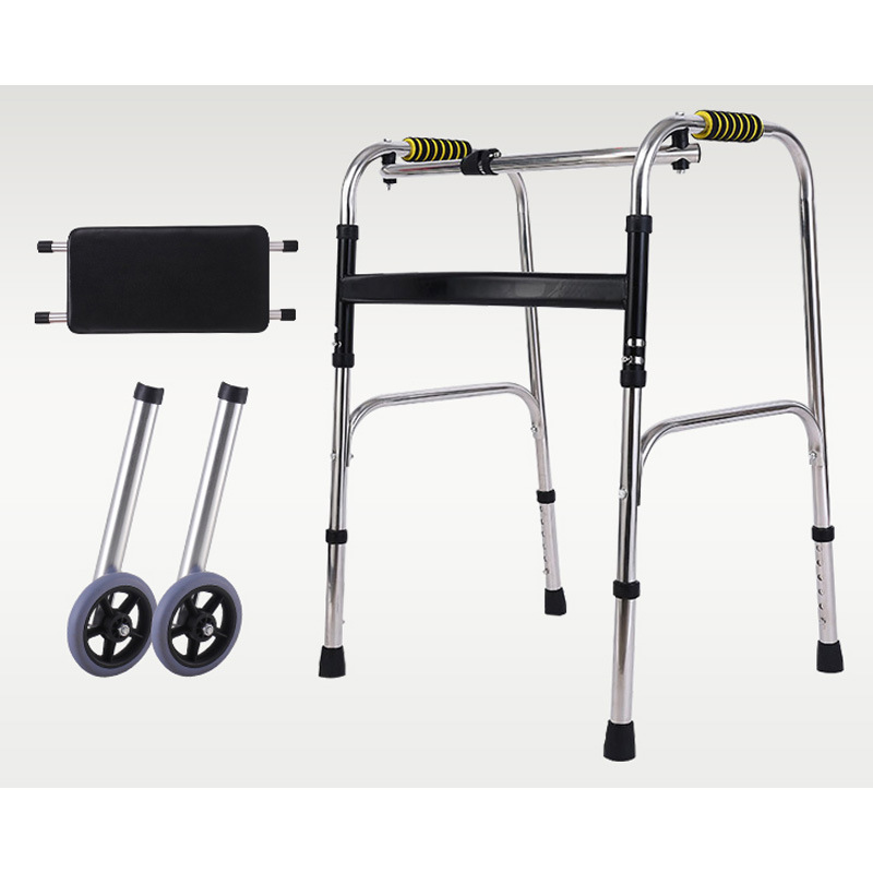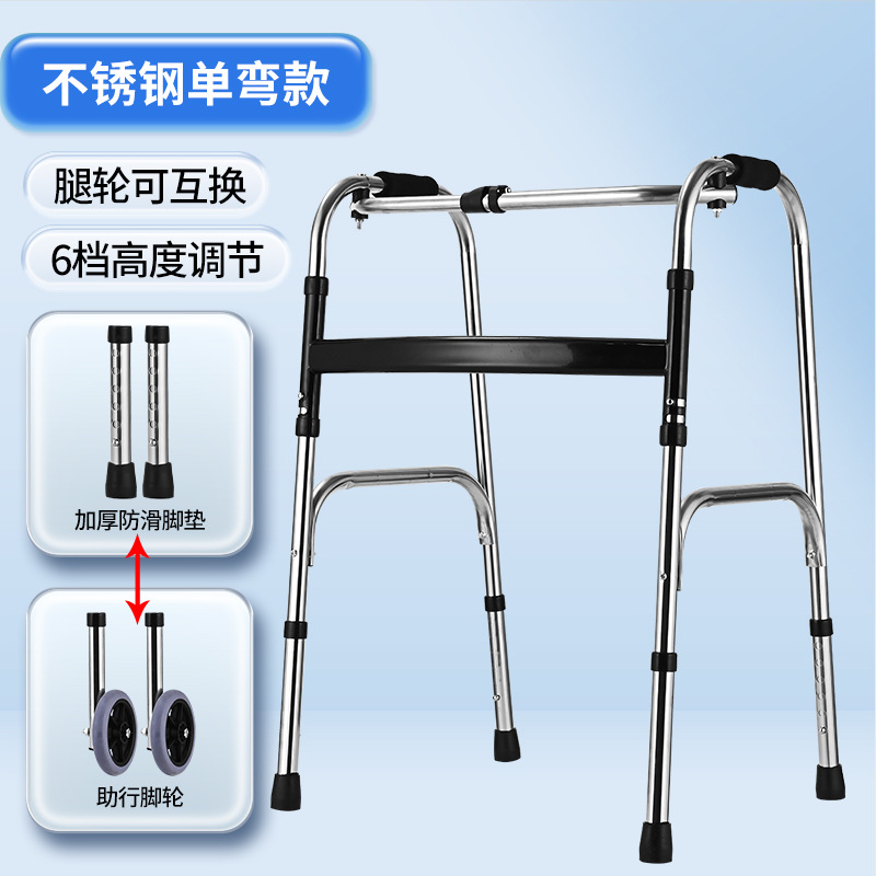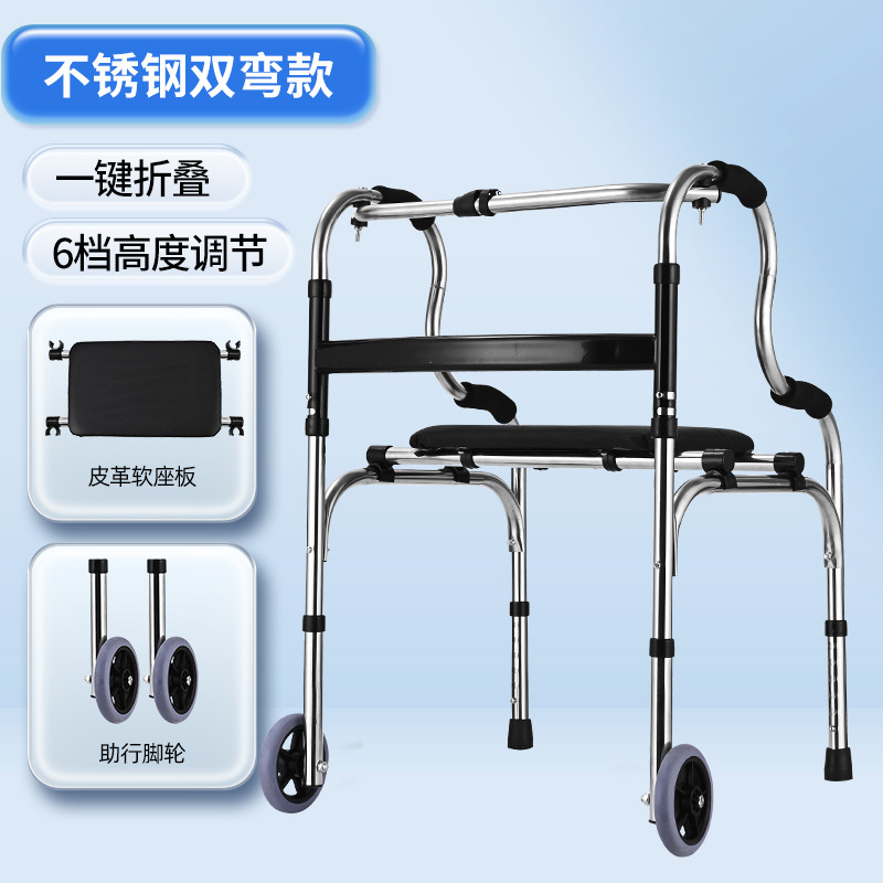 现货批发不锈钢助行器老年人带轮带坐垫四脚助步器学步器厂家供应