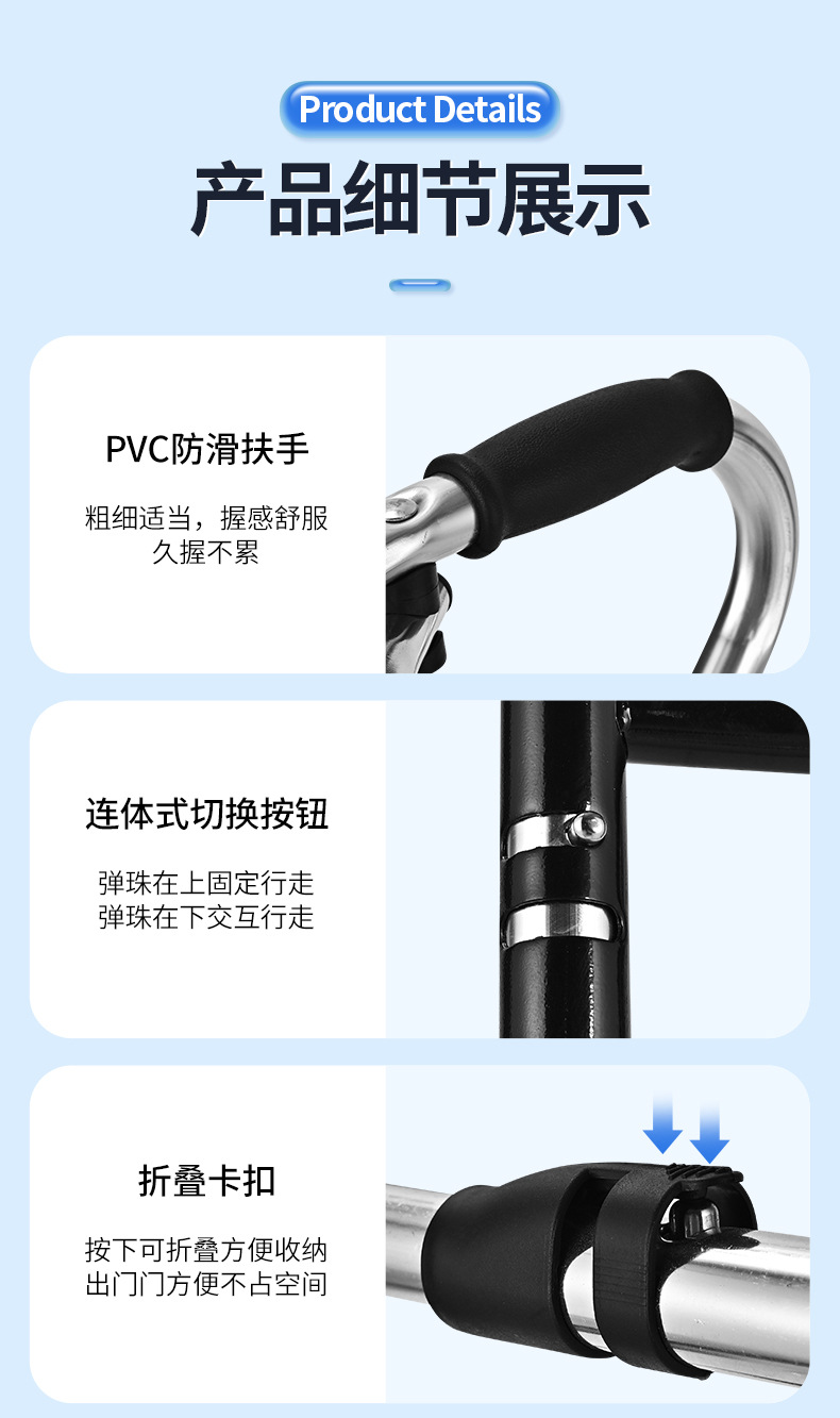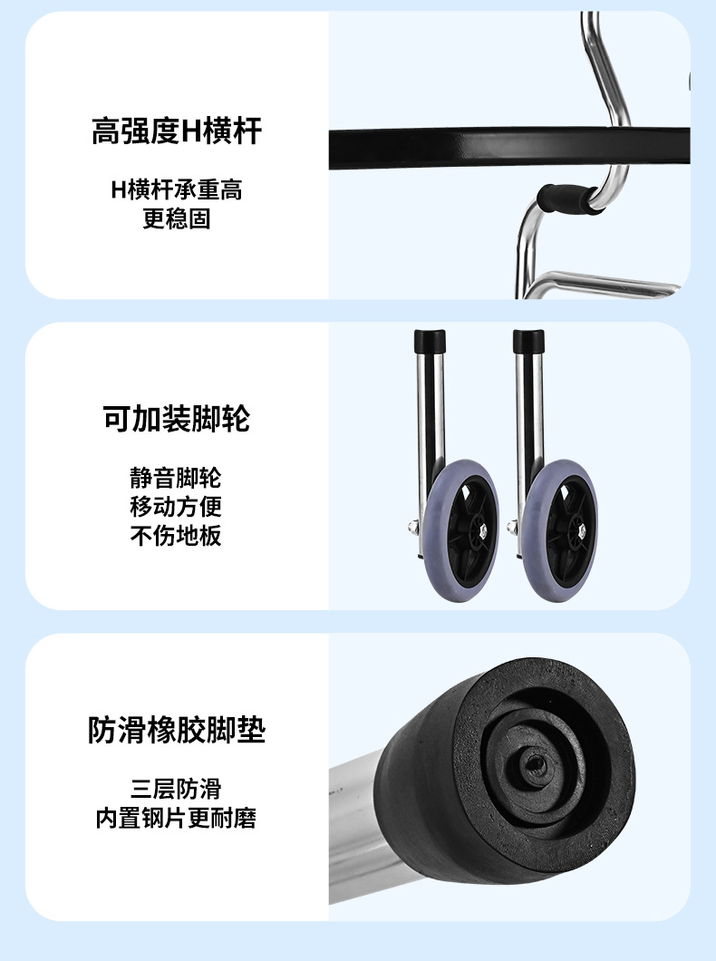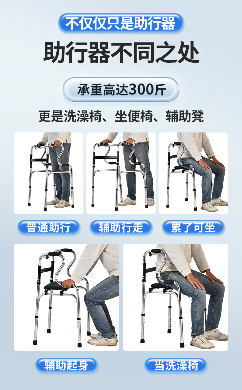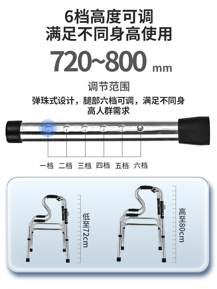 现货批发不锈钢助行器老年人带轮带坐垫四脚助步器学步器厂家供应