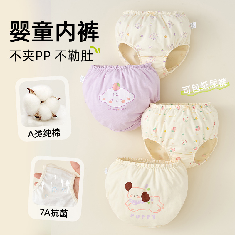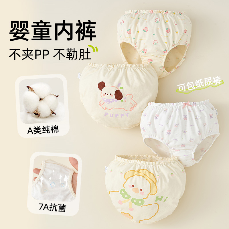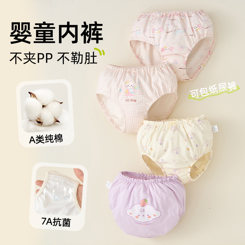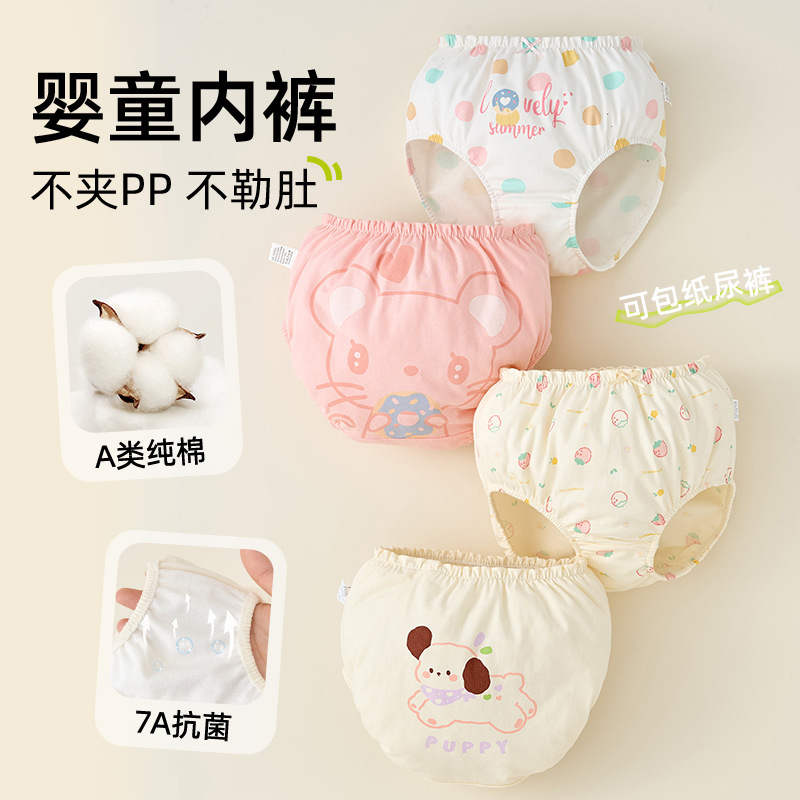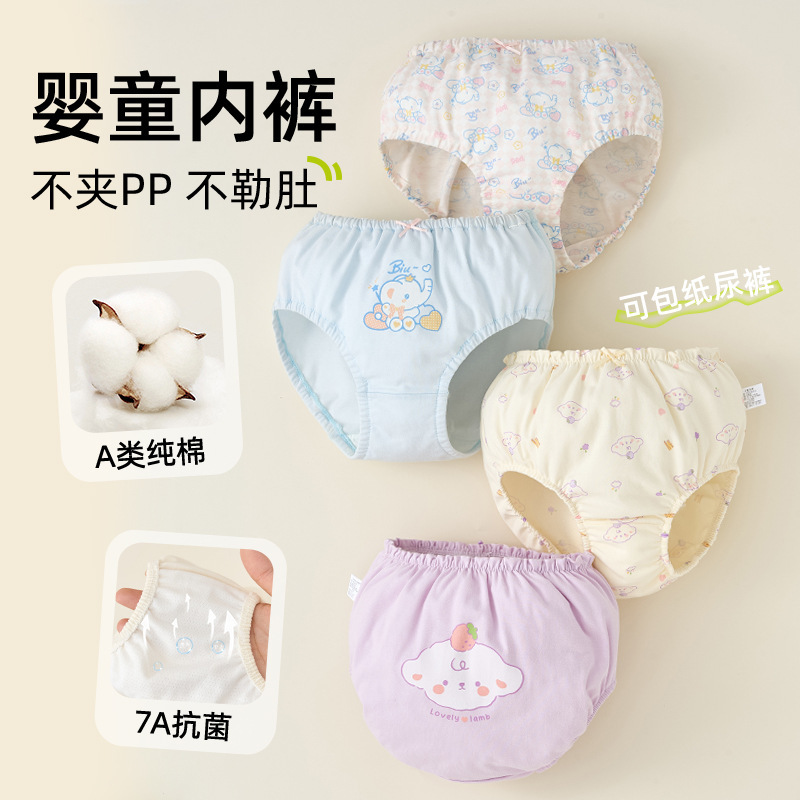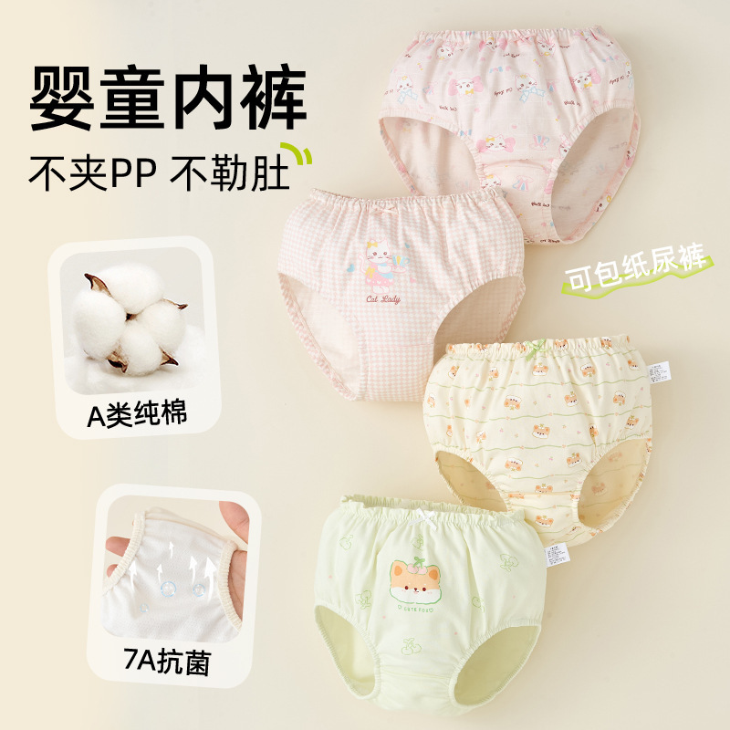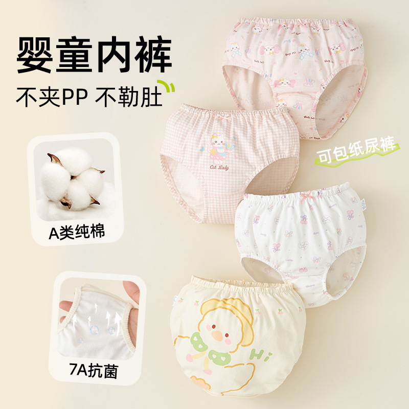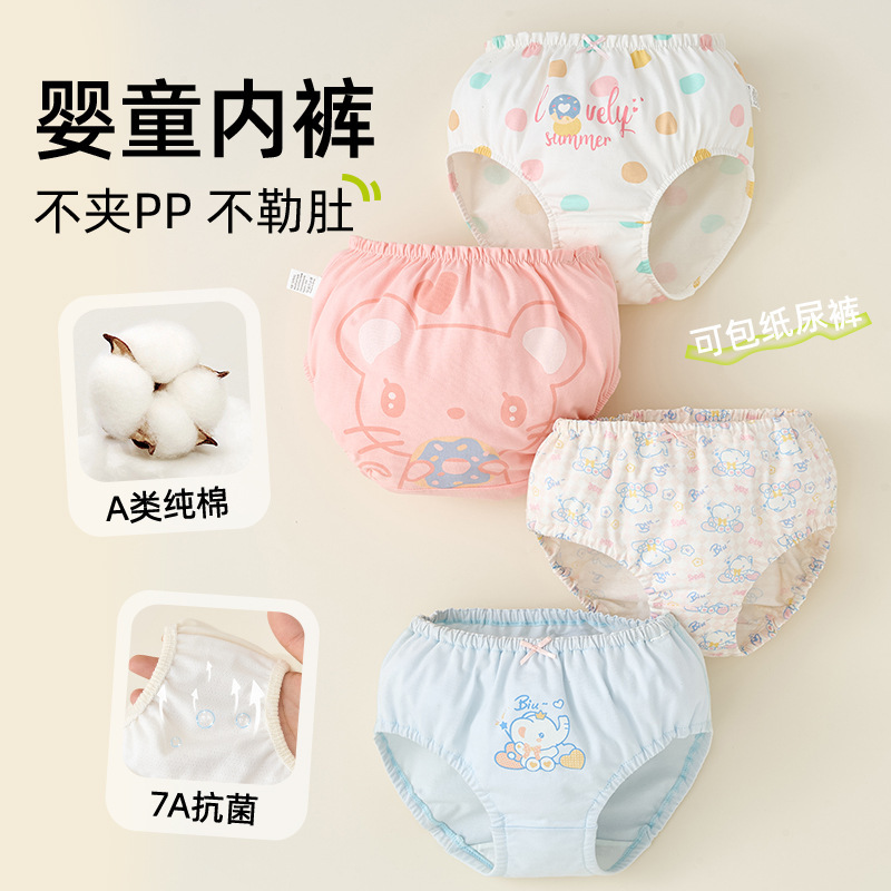 宝宝内裤女童纯棉a类棉儿童面包裤大童短裤婴幼儿三角不夹屁股