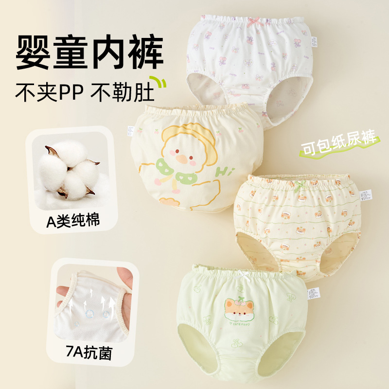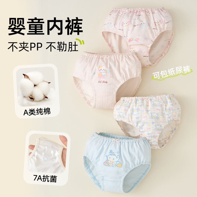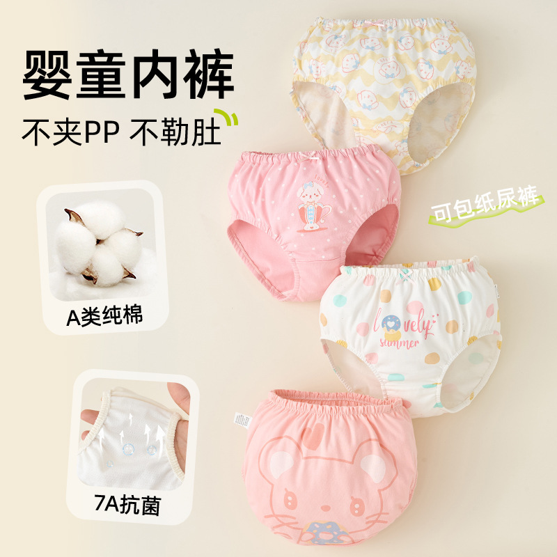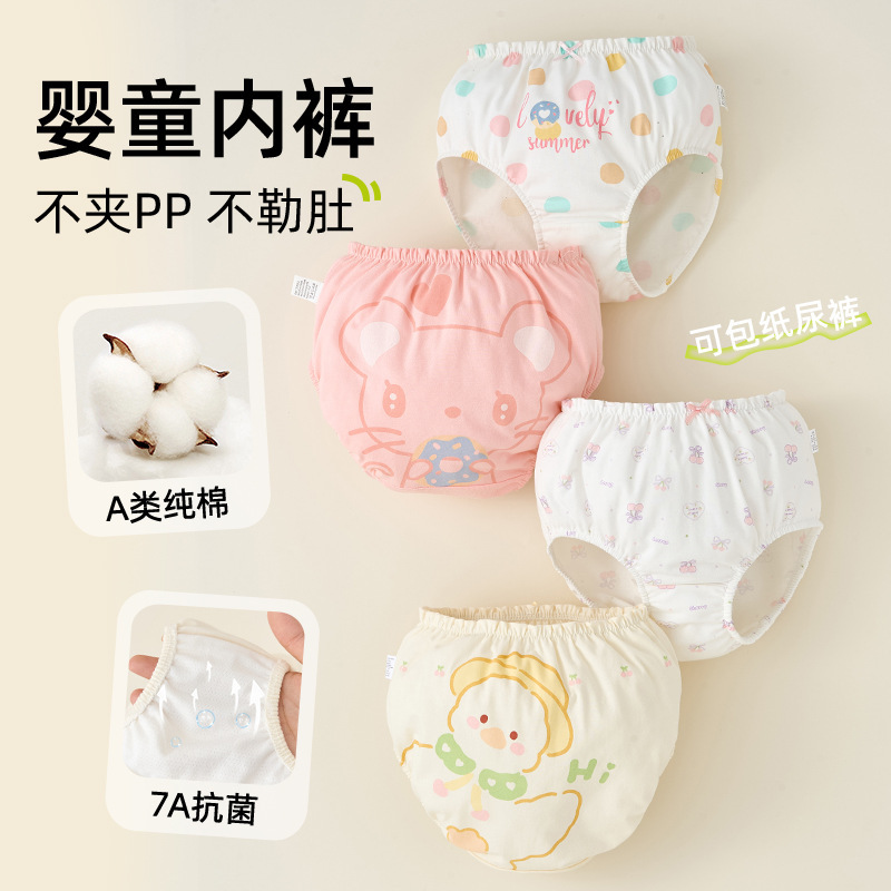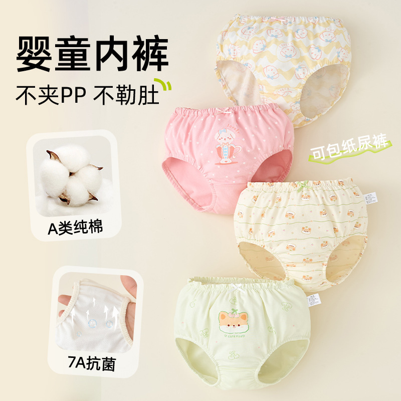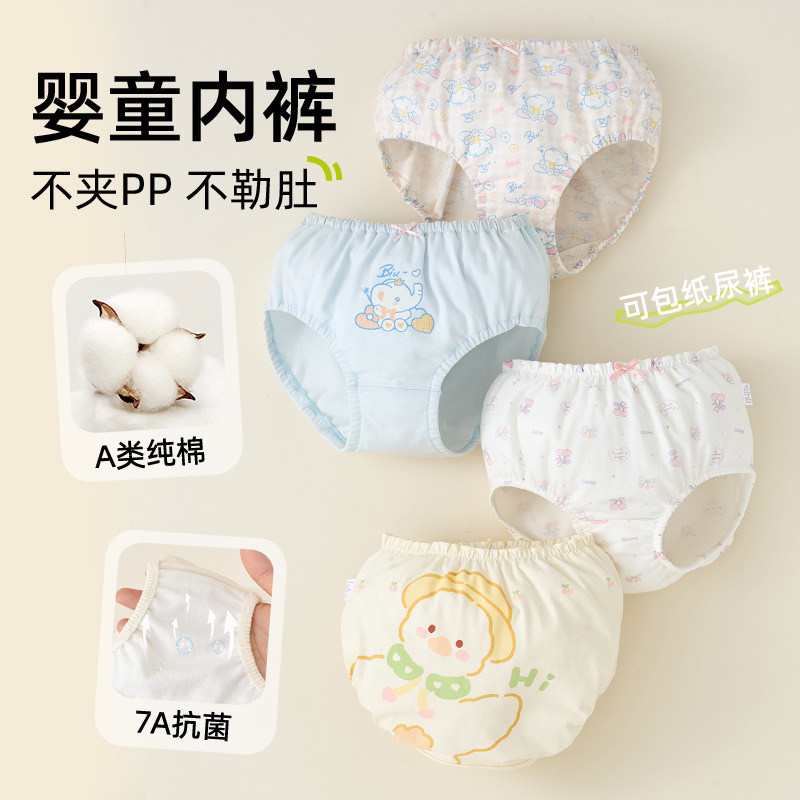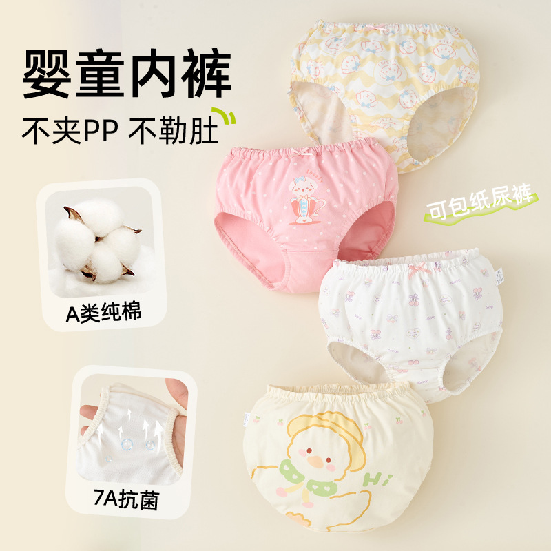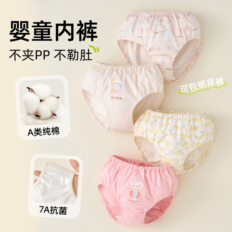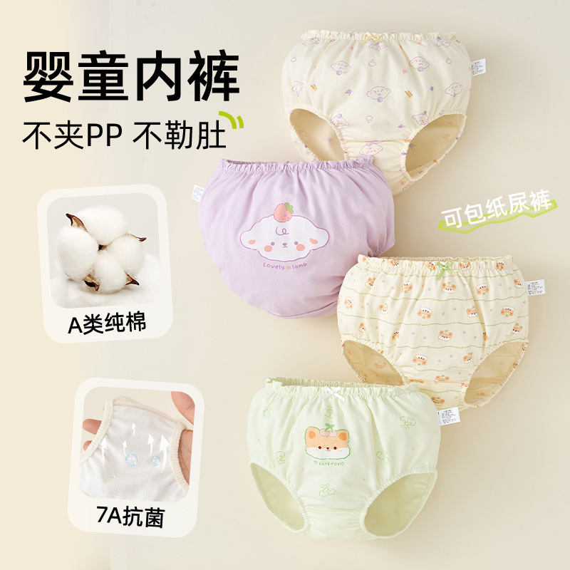 宝宝内裤女童纯棉a类棉儿童面包裤大童短裤婴幼儿三角不夹屁股