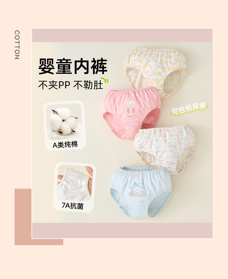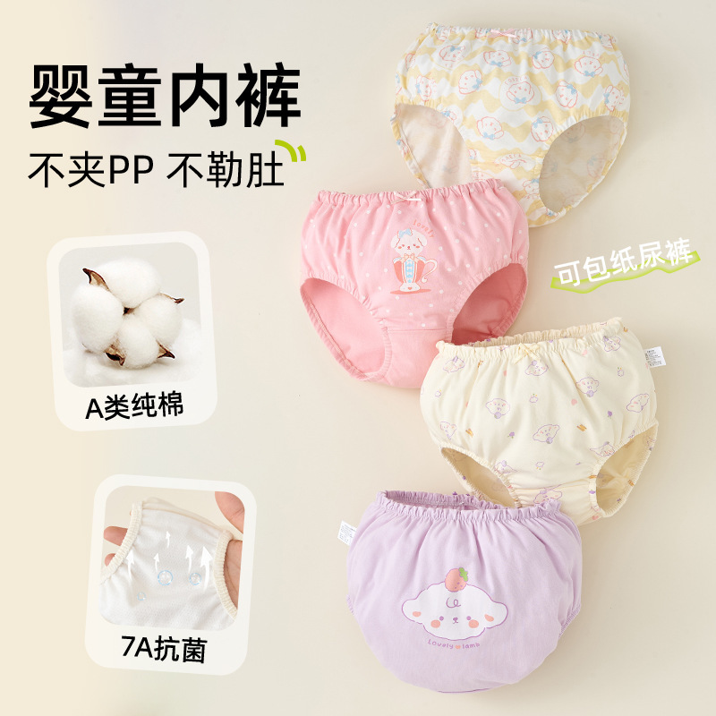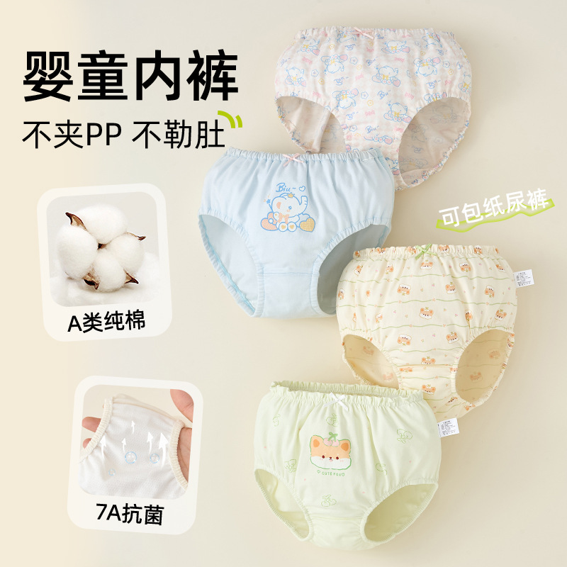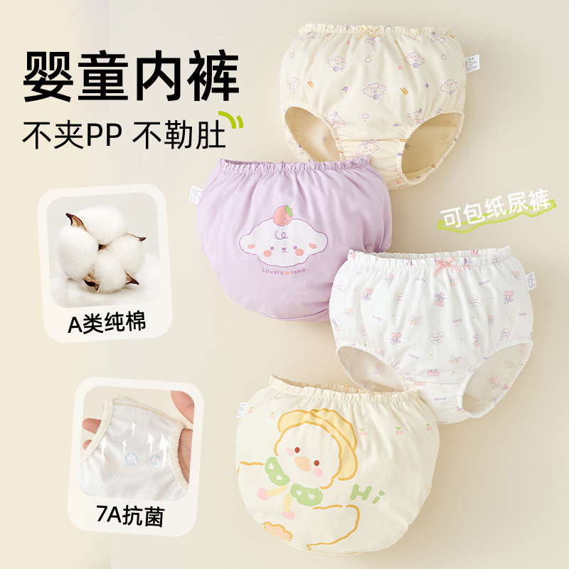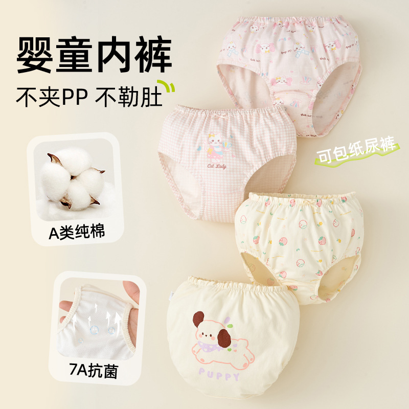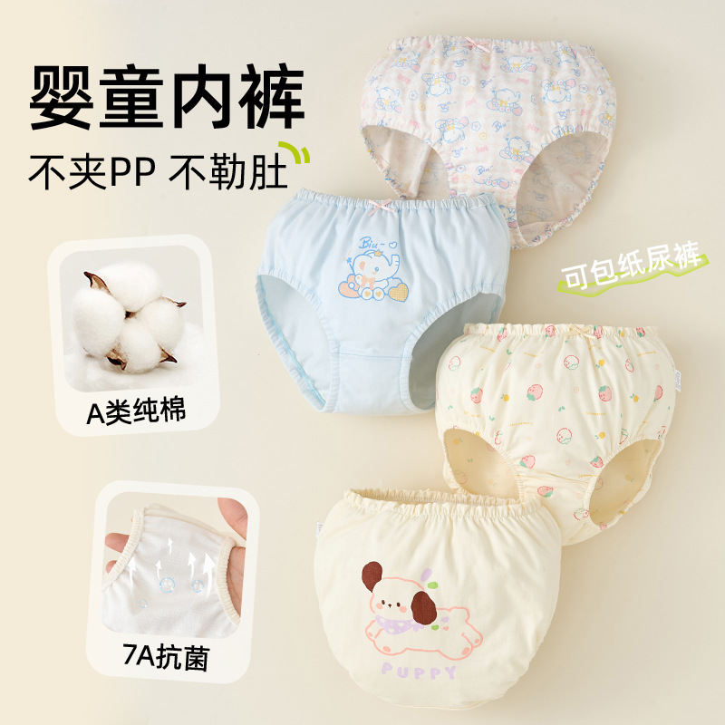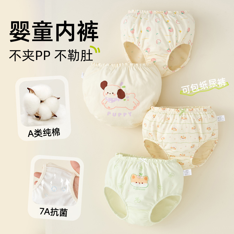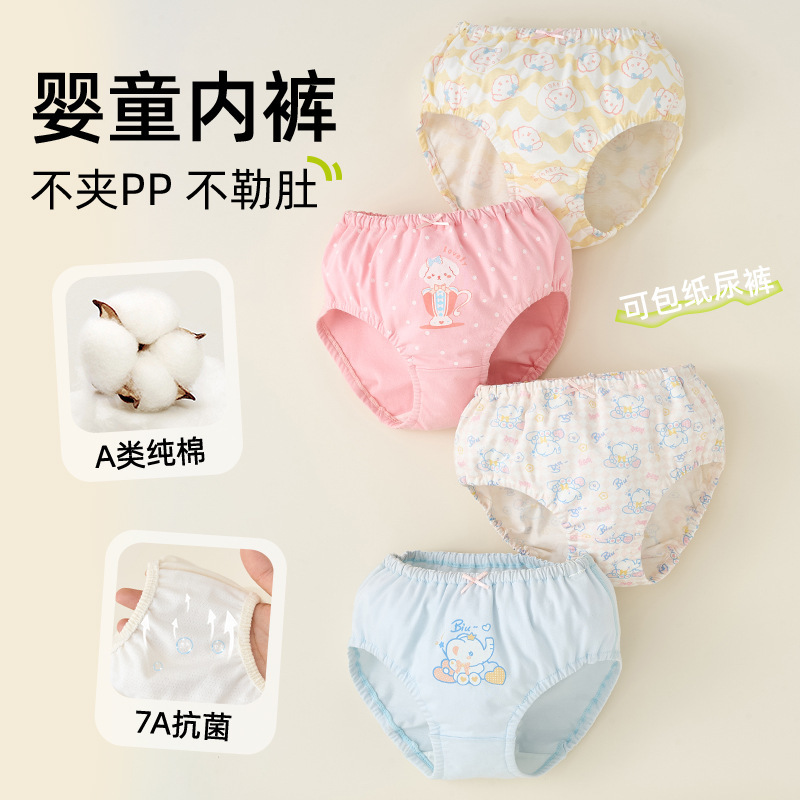 宝宝内裤女童纯棉a类棉儿童面包裤大童短裤婴幼儿三角不夹屁股