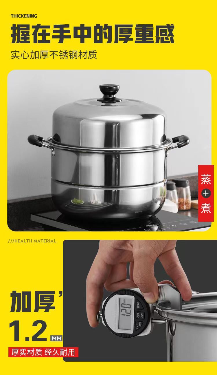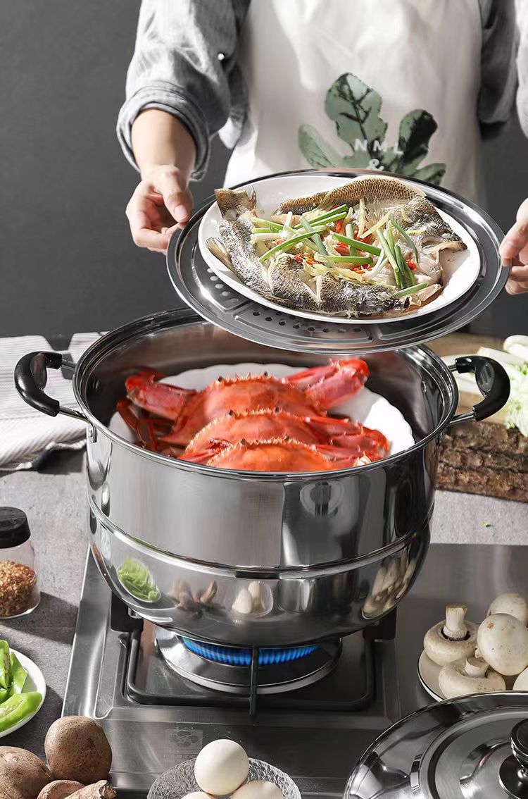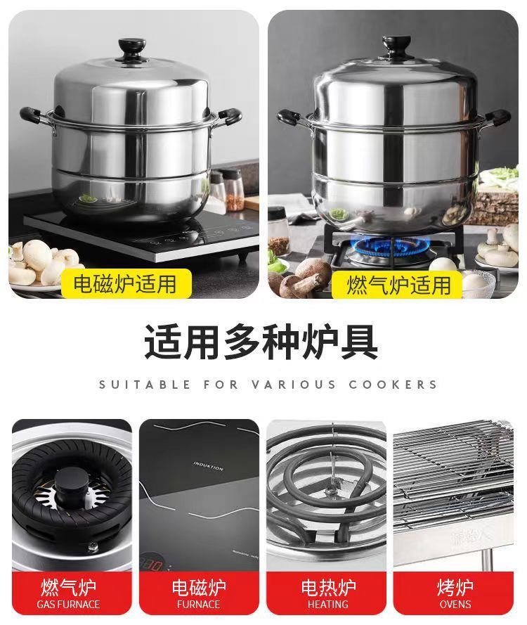 不锈钢蒸锅加厚蒸笼多功能大号家用笼屉煮炖大容量电磁炉煤气专用