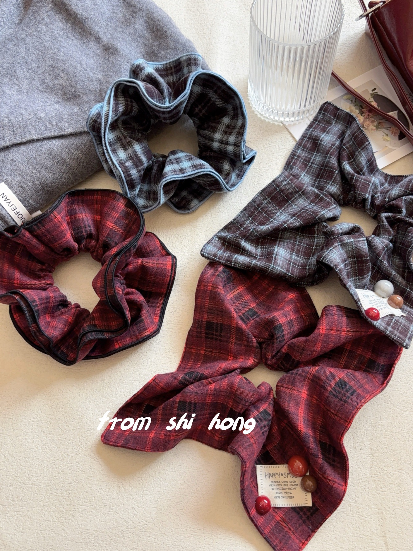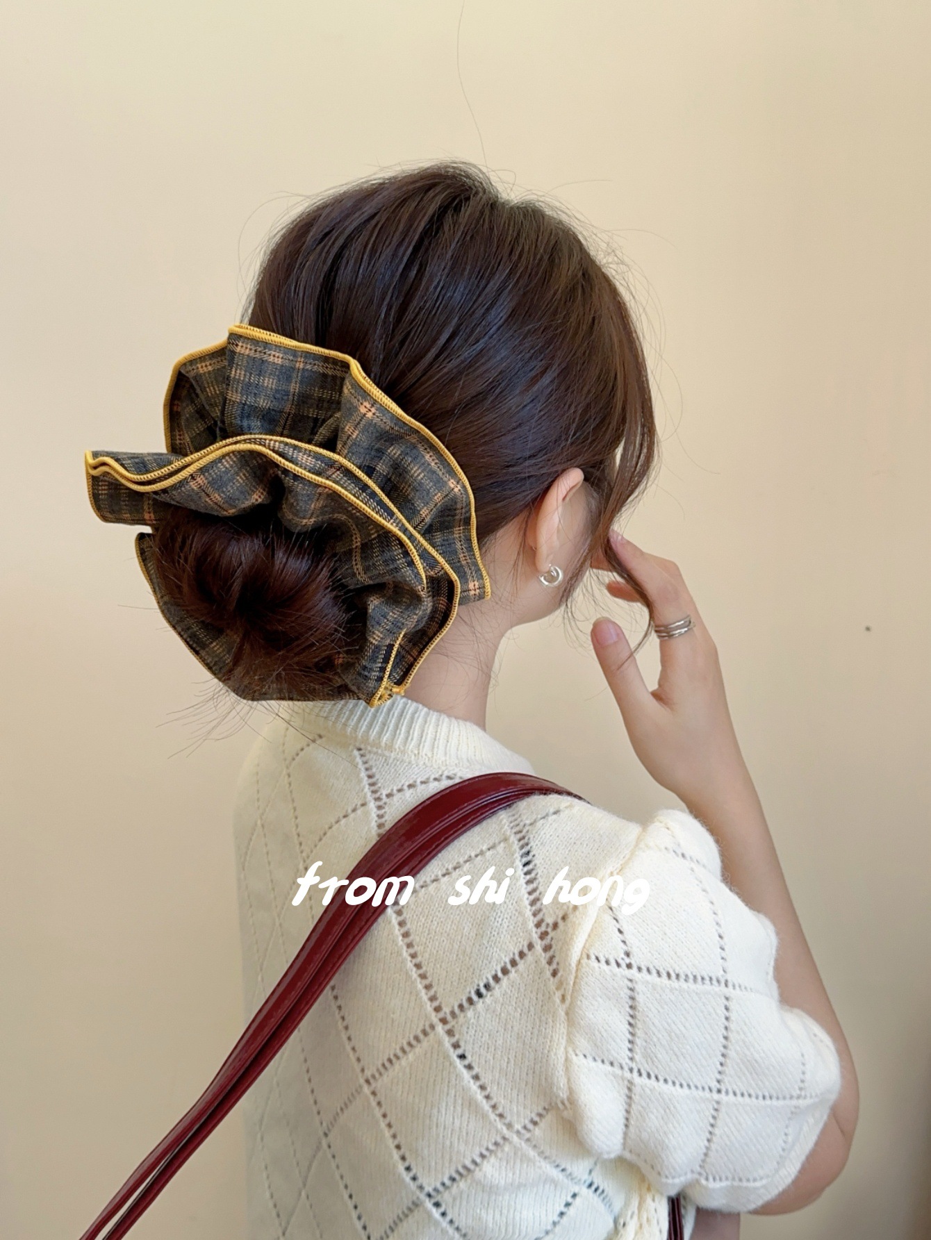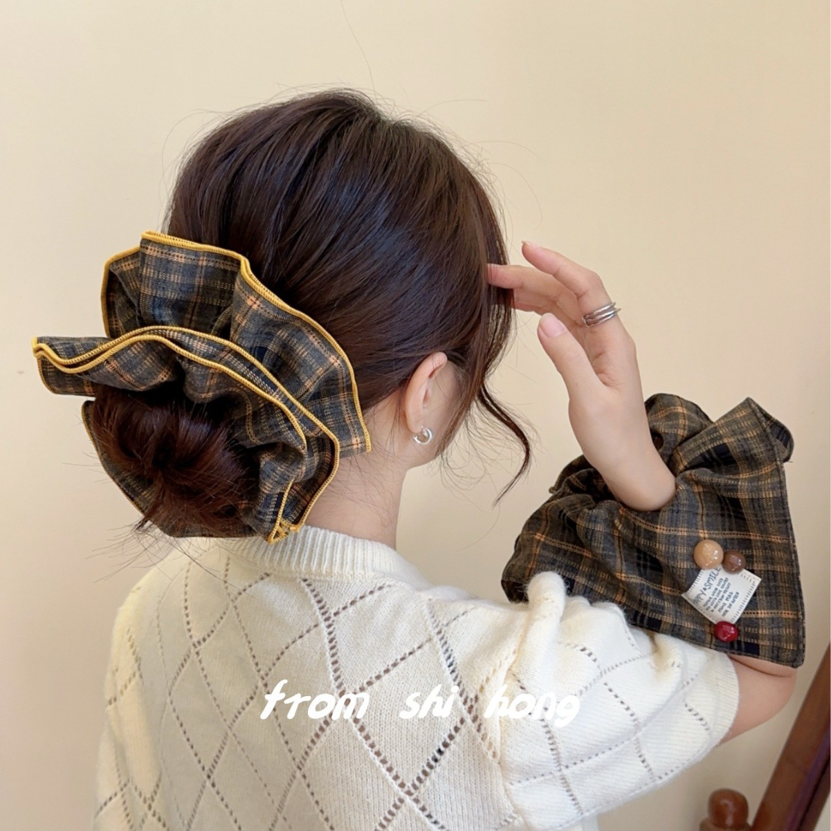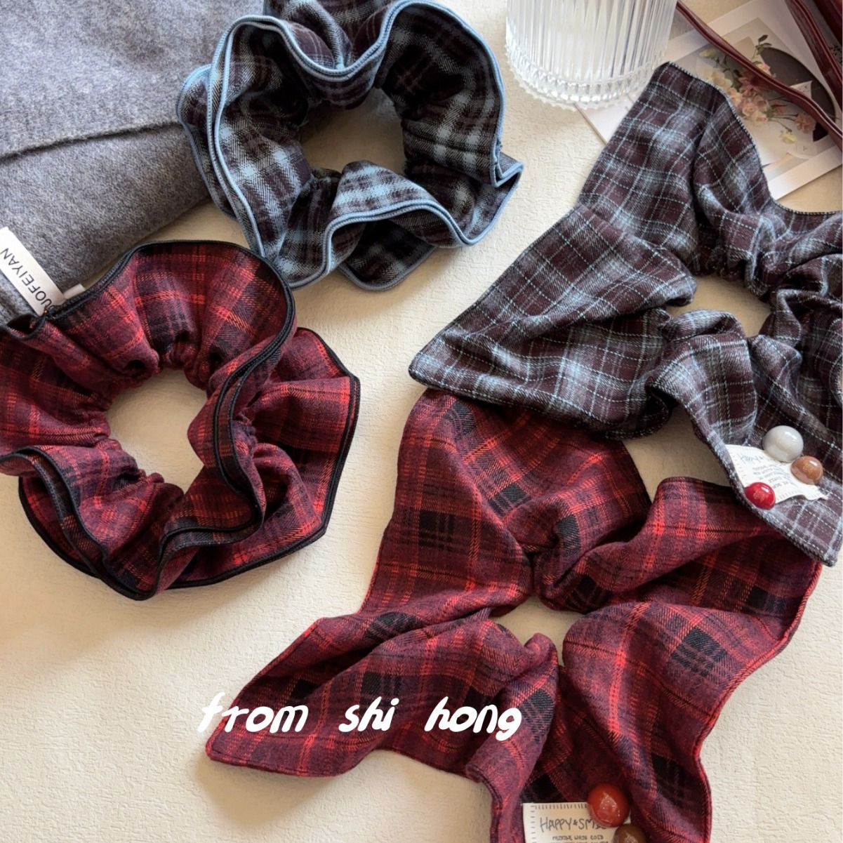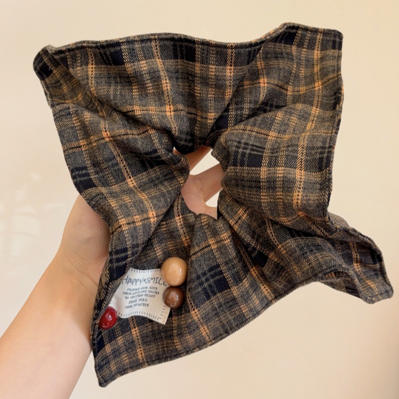 韩版美拉德系列格纹方巾款发圈女低马尾气质扎发绳丸子头头绳发饰