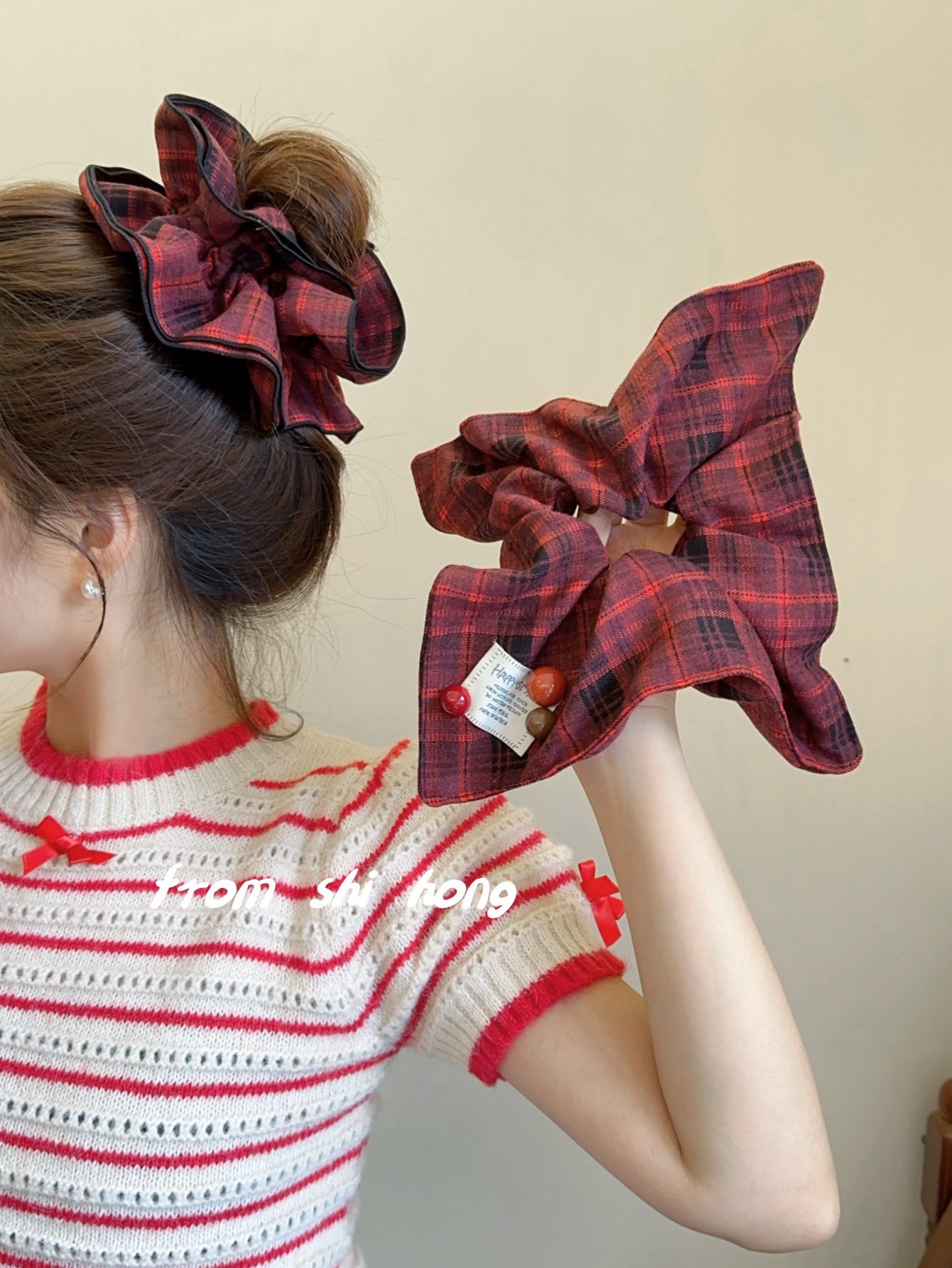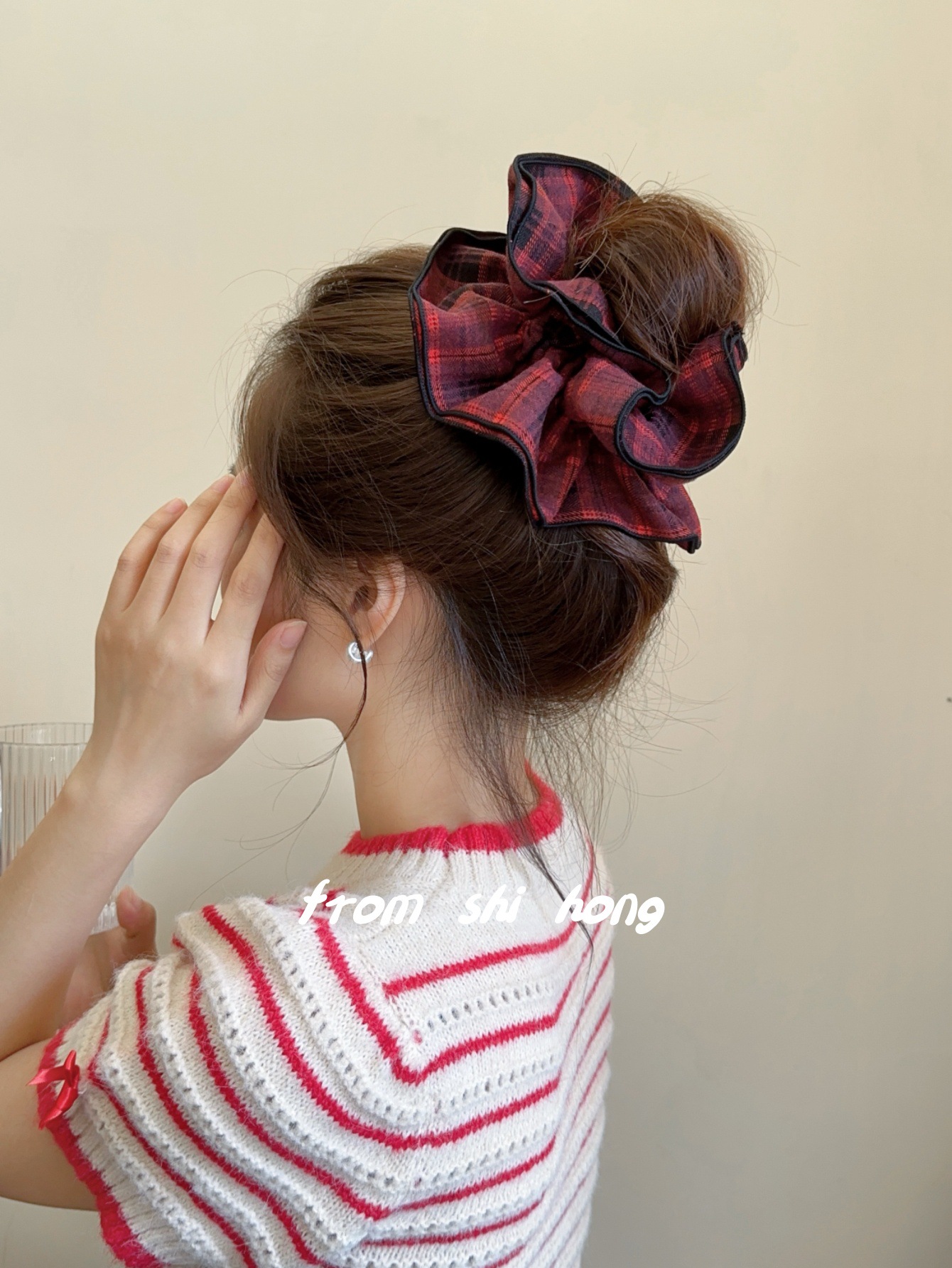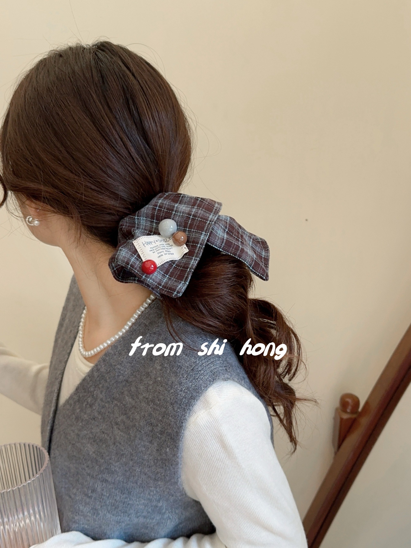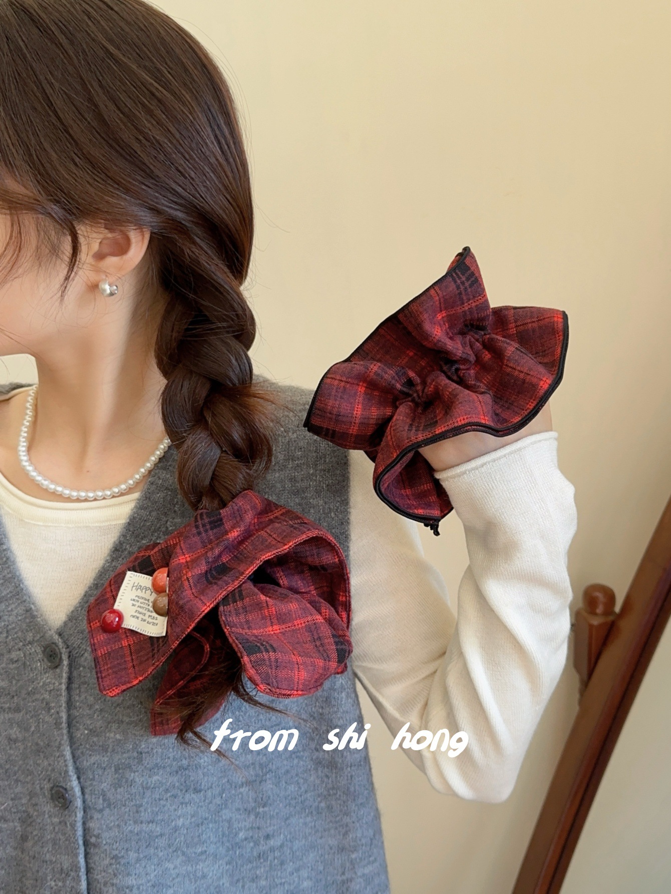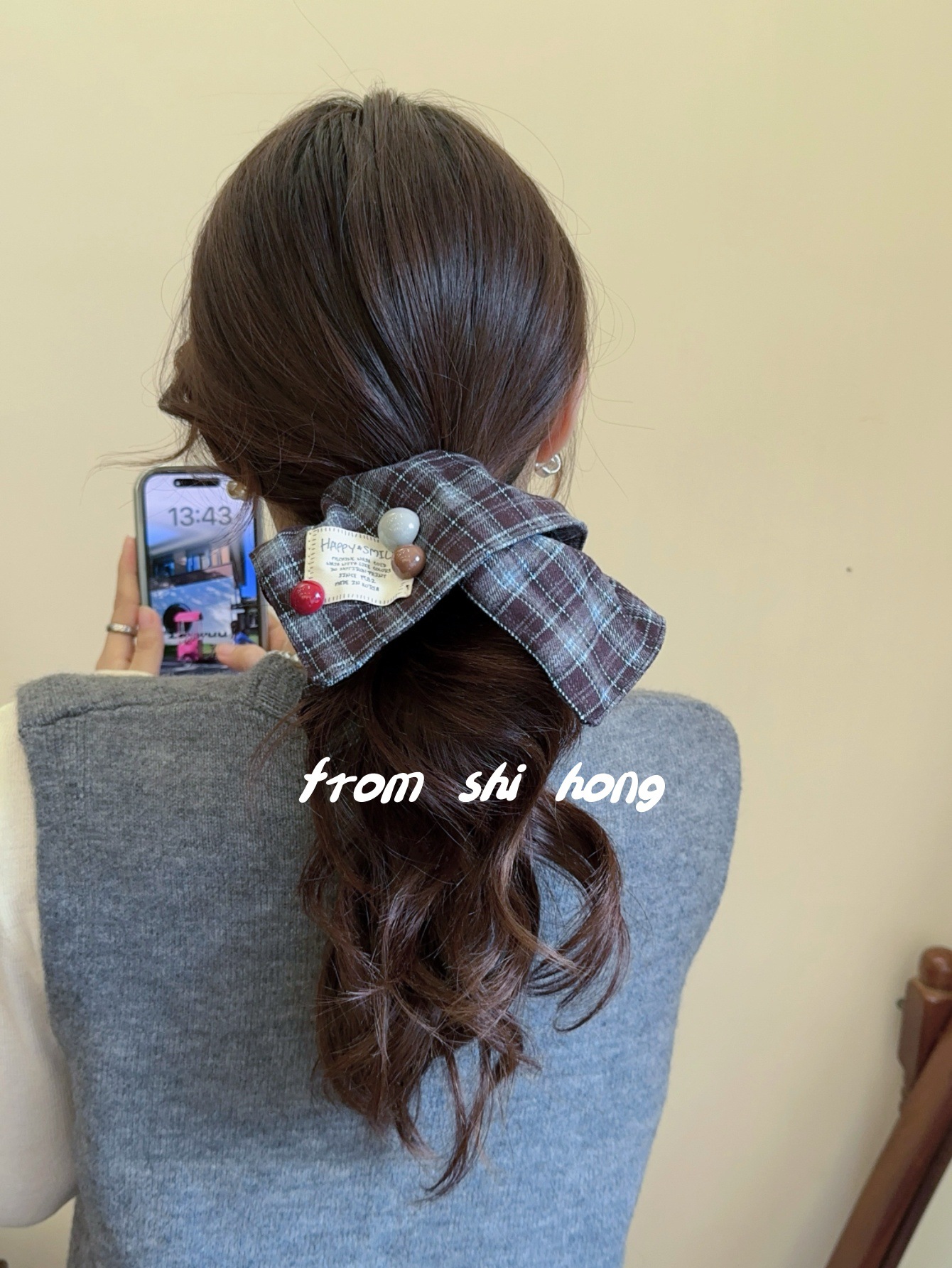 韩版美拉德系列格纹方巾款发圈女低马尾气质扎发绳丸子头头绳发饰