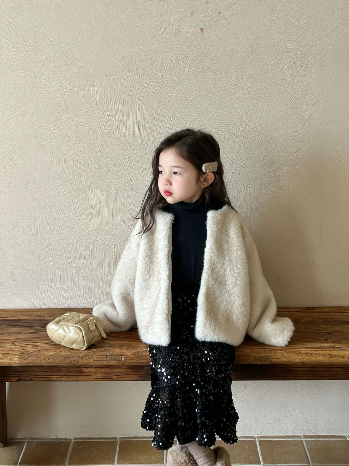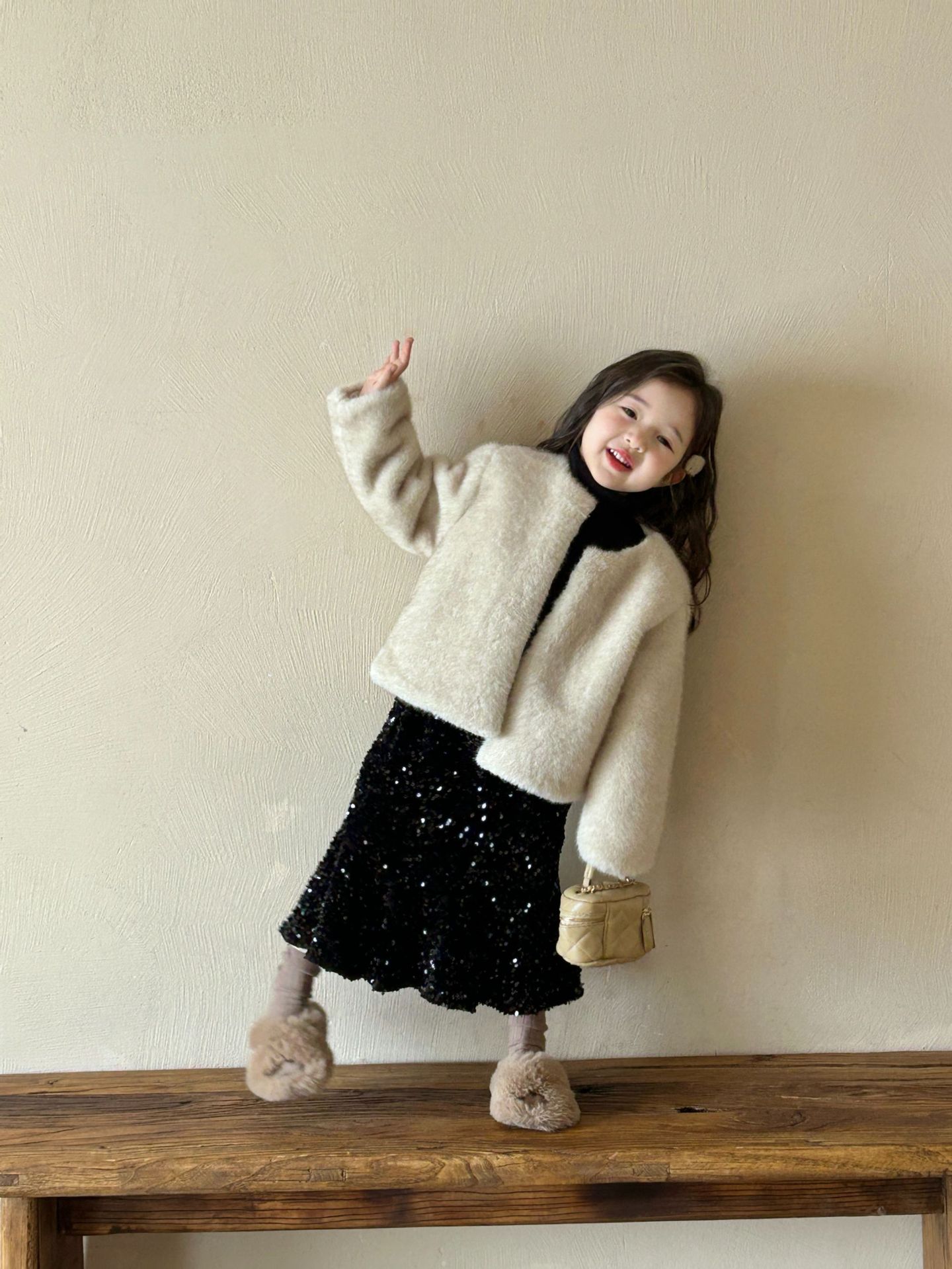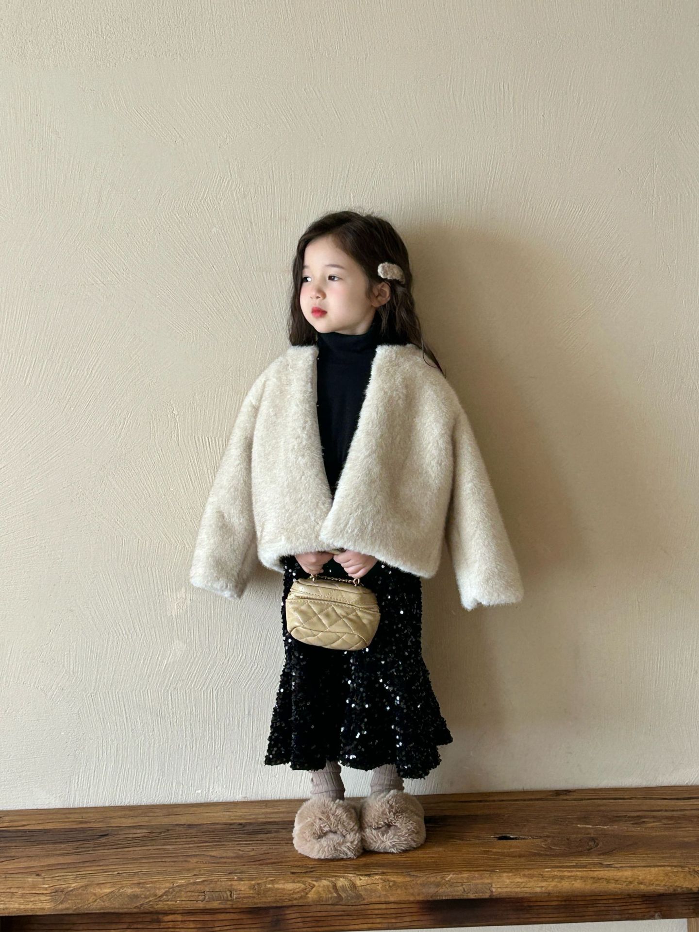 2024冬季新款童装 韩版童装 女童名媛风仿皮草大衣 夹棉毛毛衣