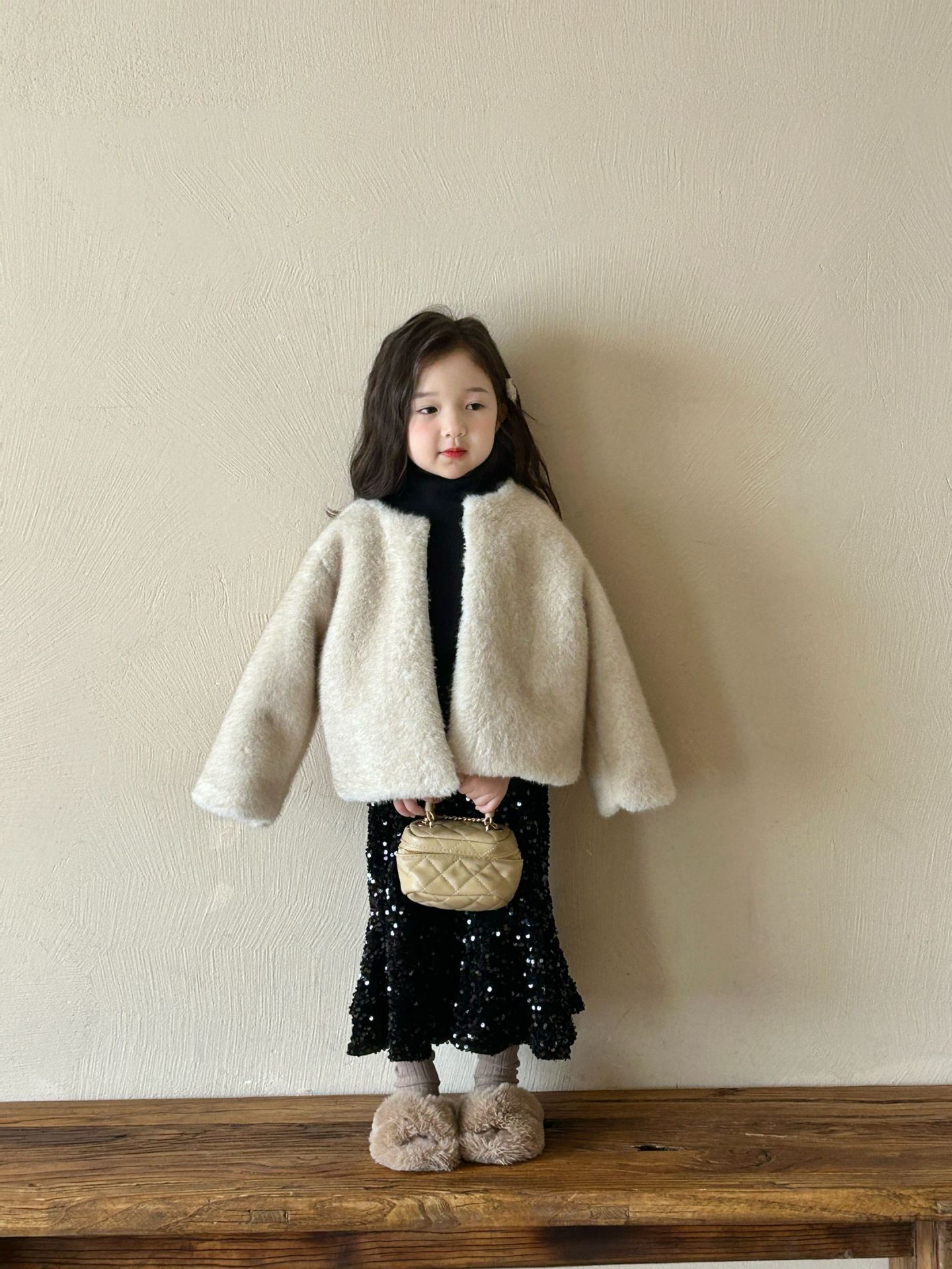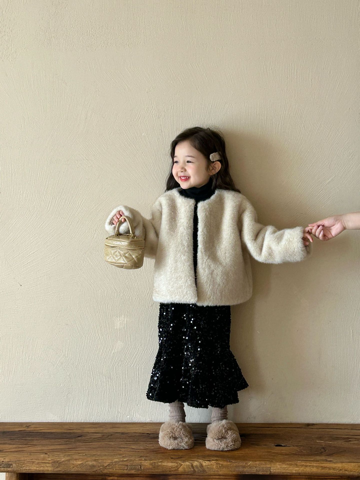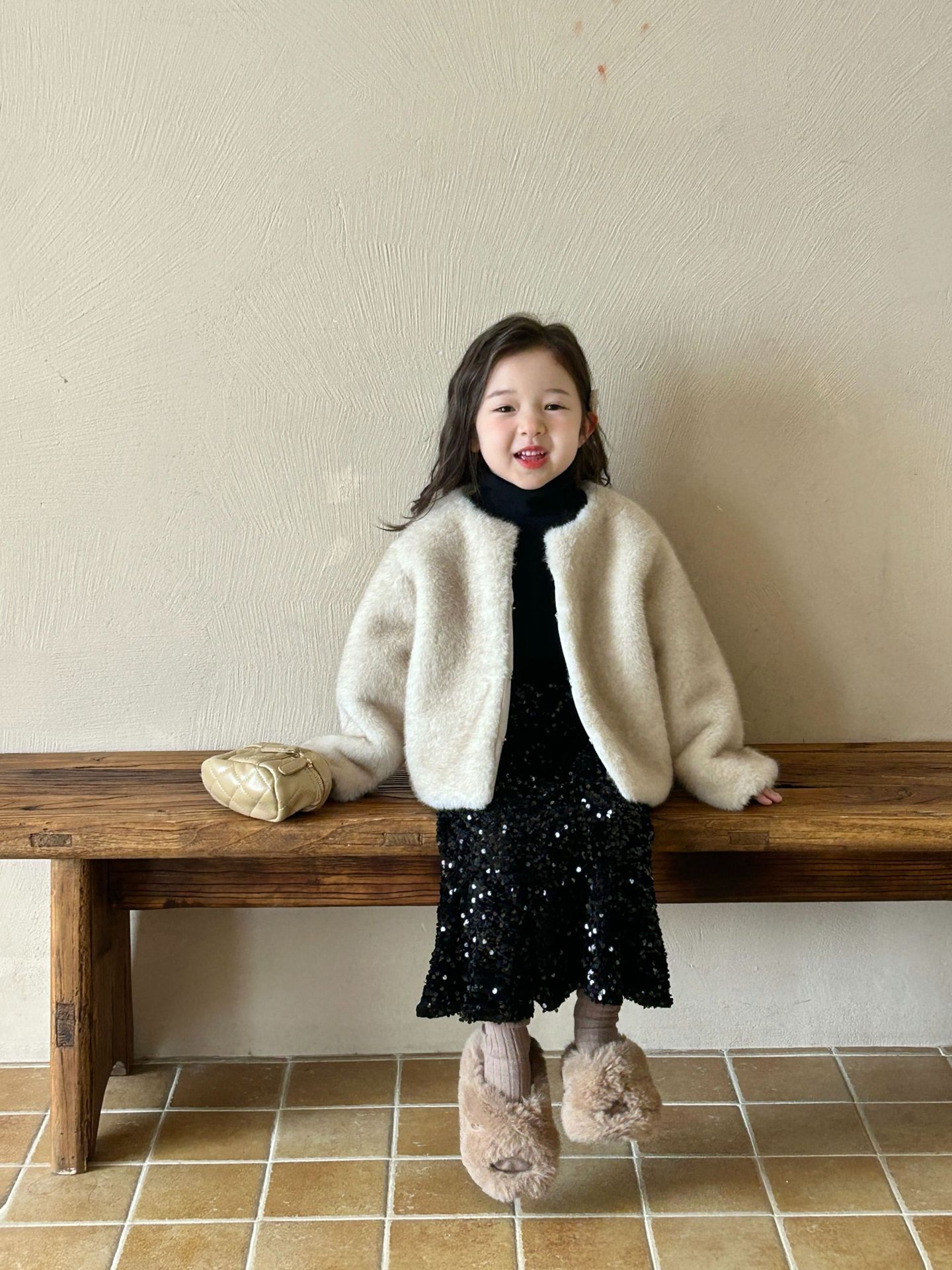 2024冬季新款童装 韩版童装 女童名媛风仿皮草大衣 夹棉毛毛衣