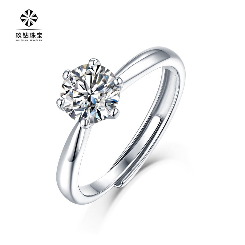 戒子女925银简约开口指环六爪戒直播热卖潮款莫桑石戒指现货批发