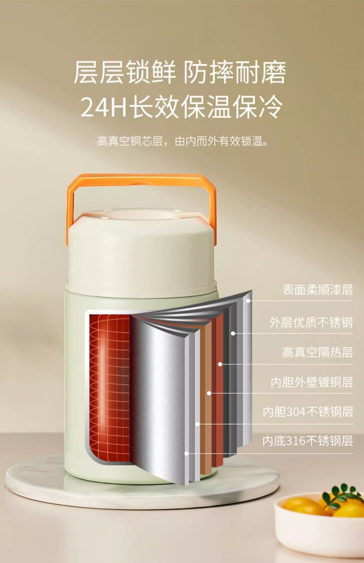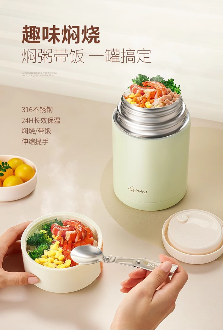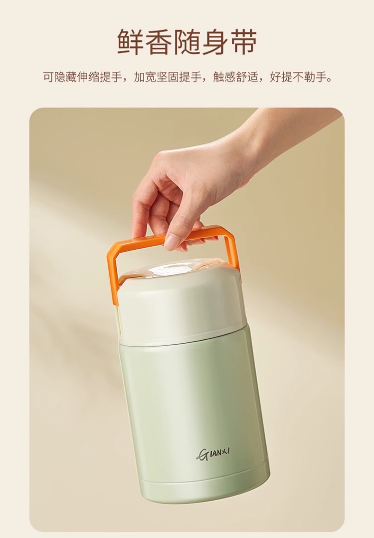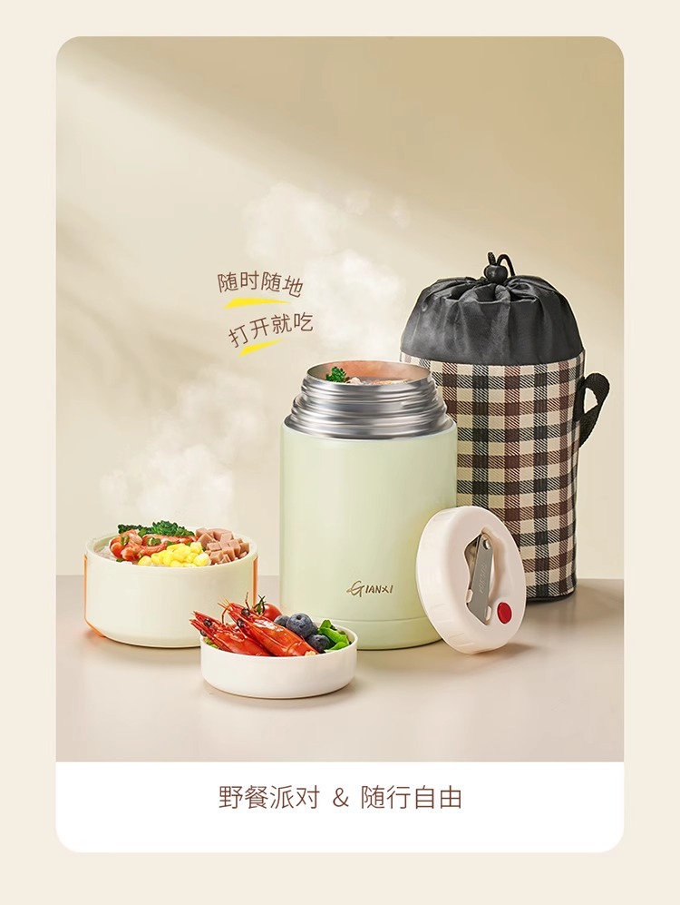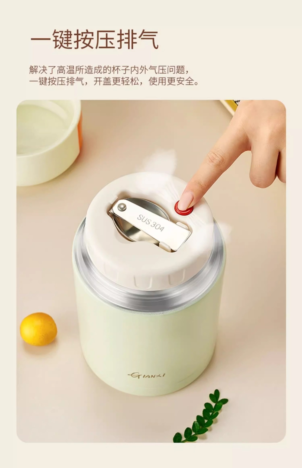 新款冬保鲜保温316不锈钢焖烧杯 便携提手一键按压排气保温饭盒桶