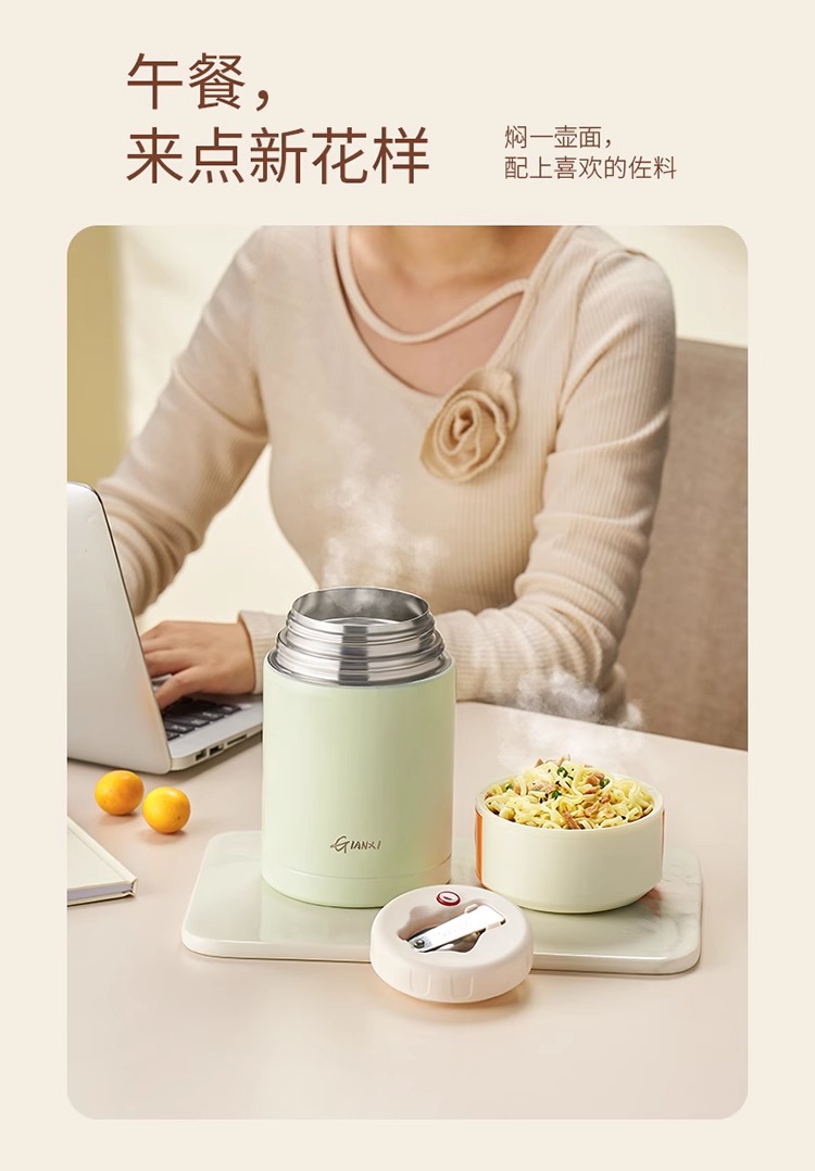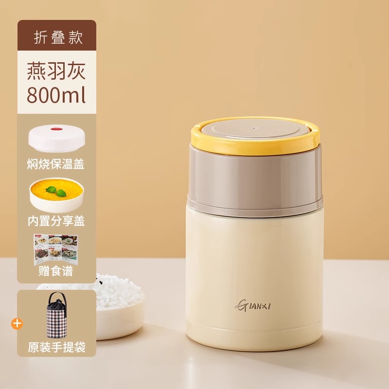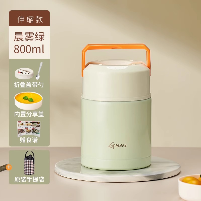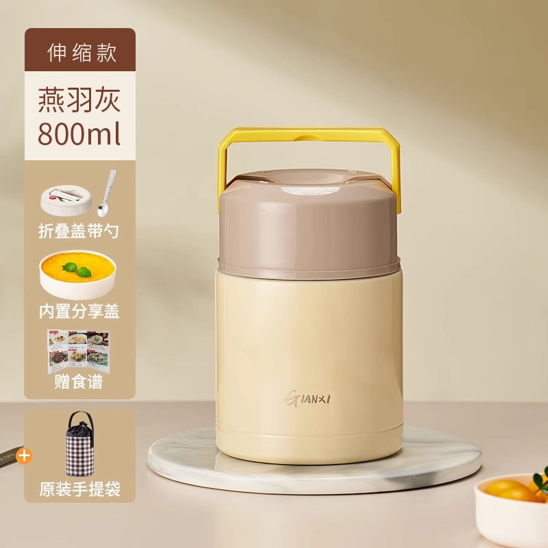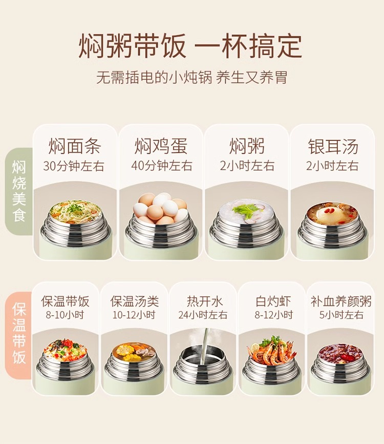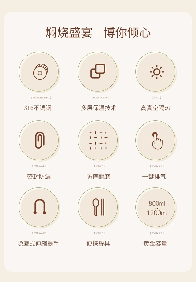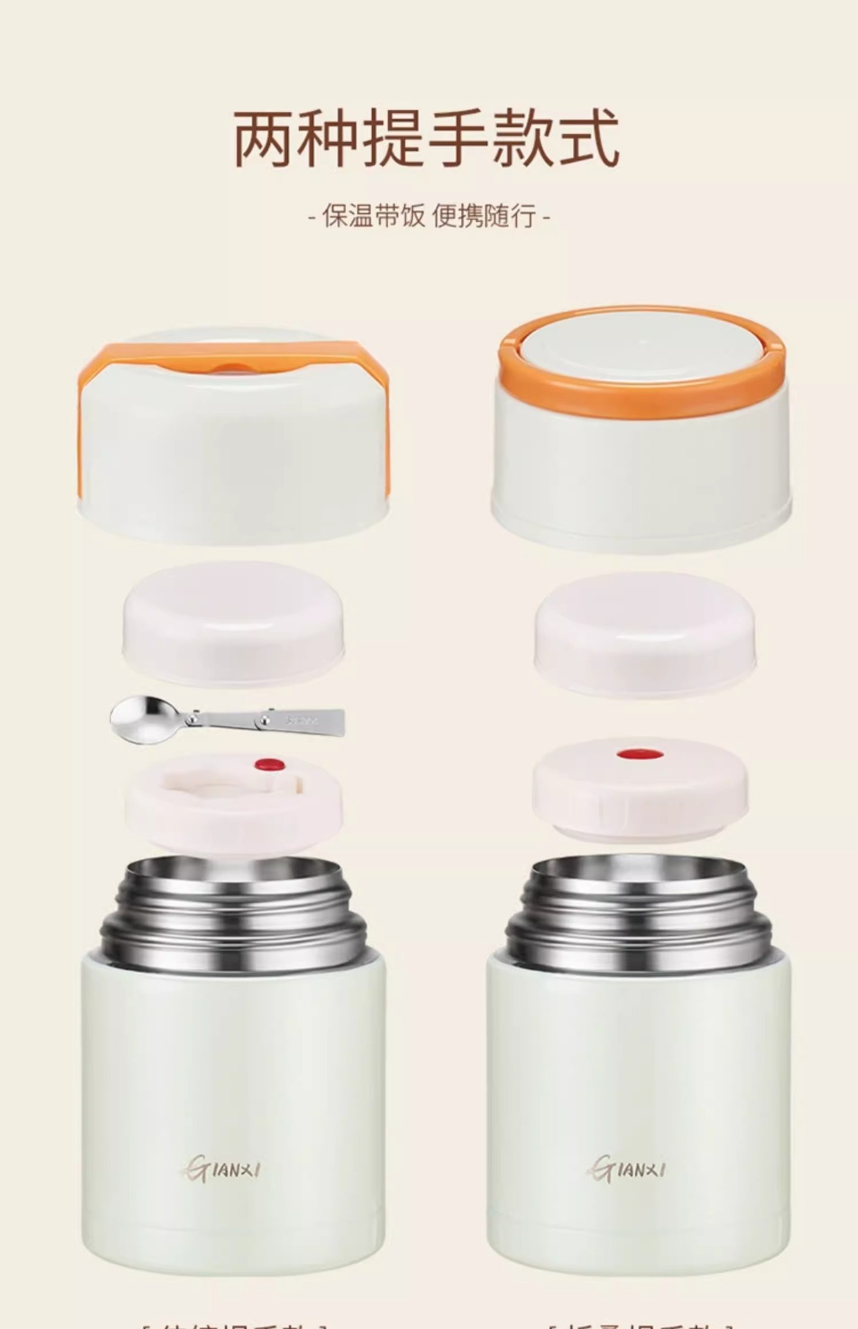 新款冬保鲜保温316不锈钢焖烧杯 便携提手一键按压排气保温饭盒桶