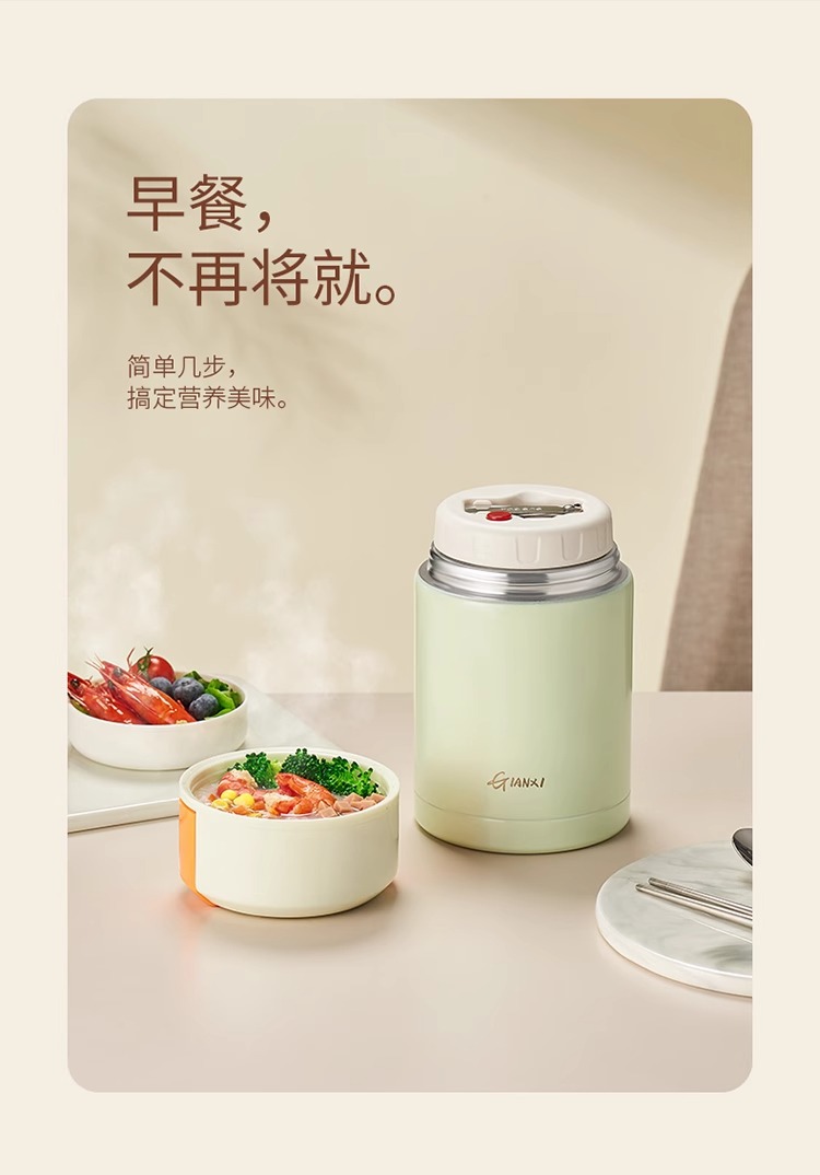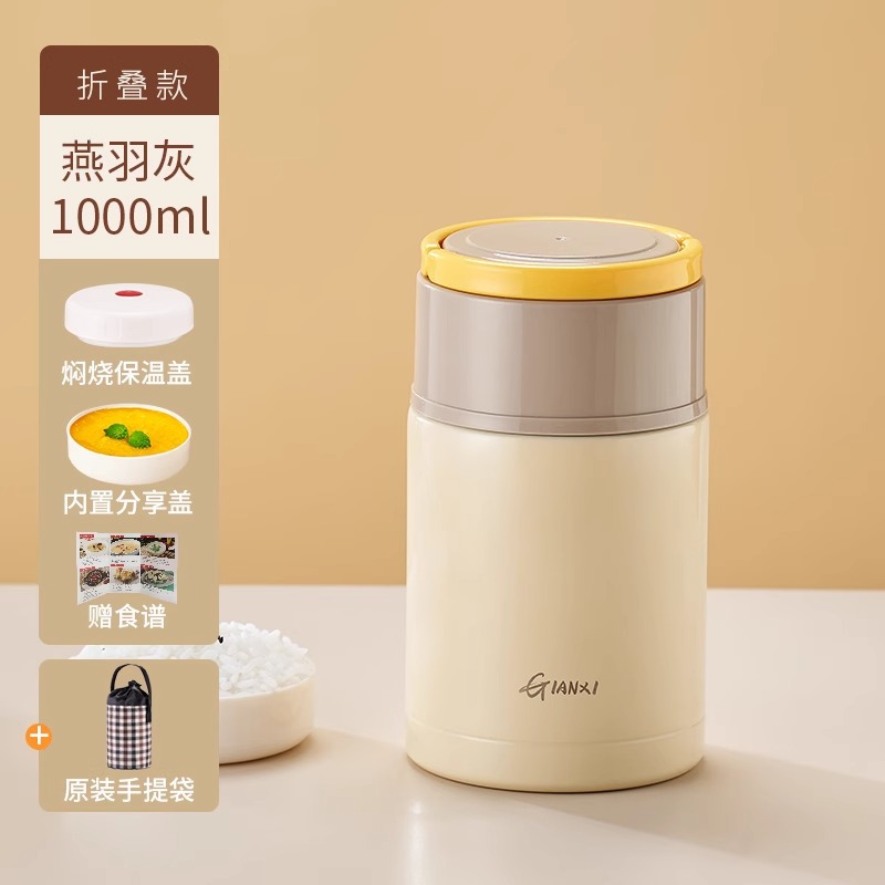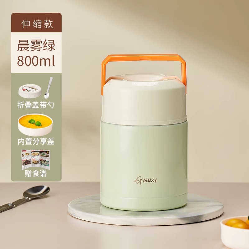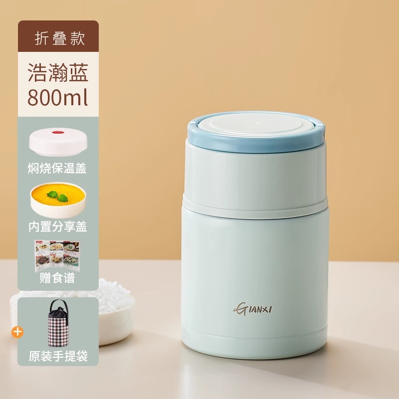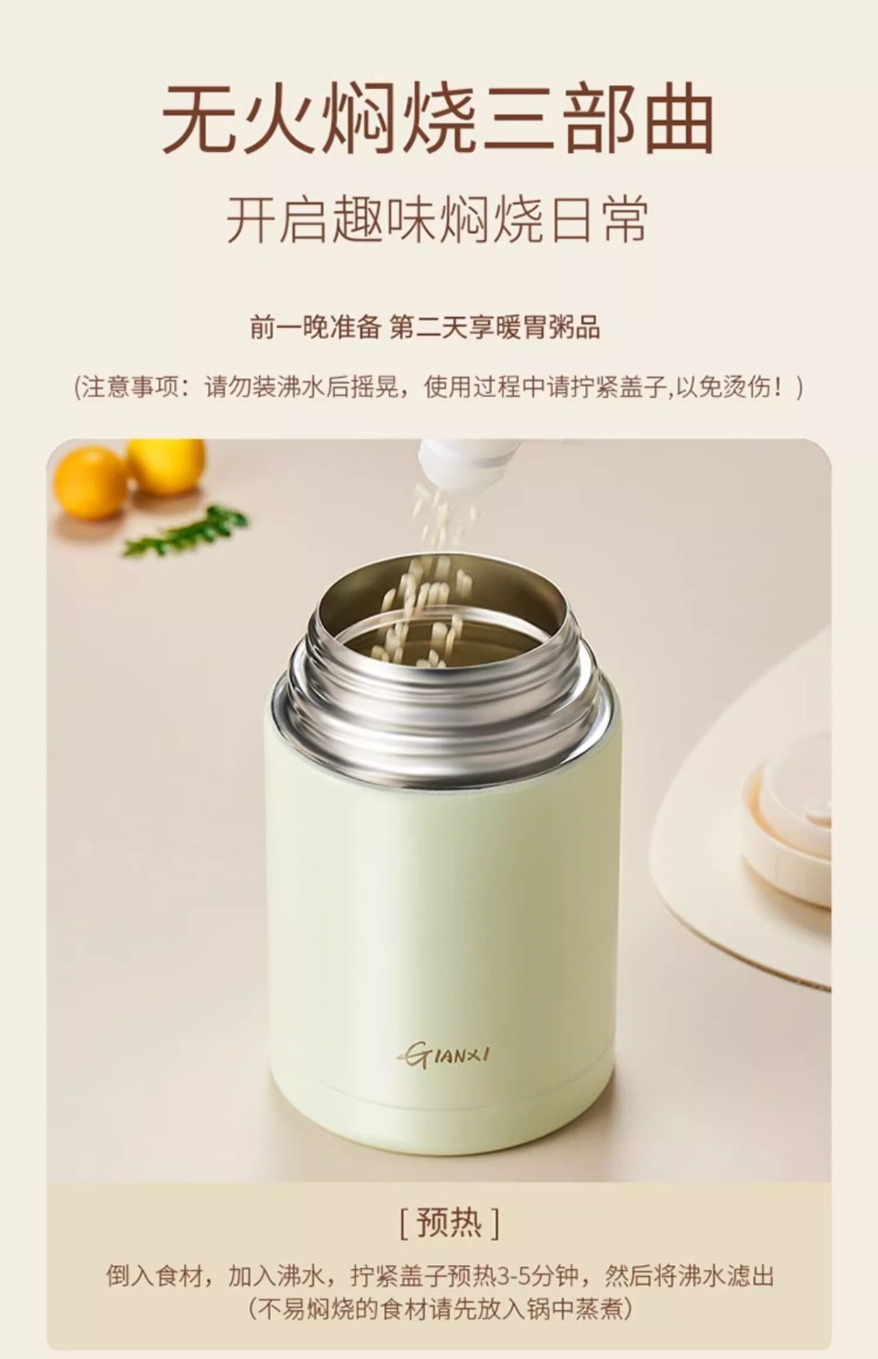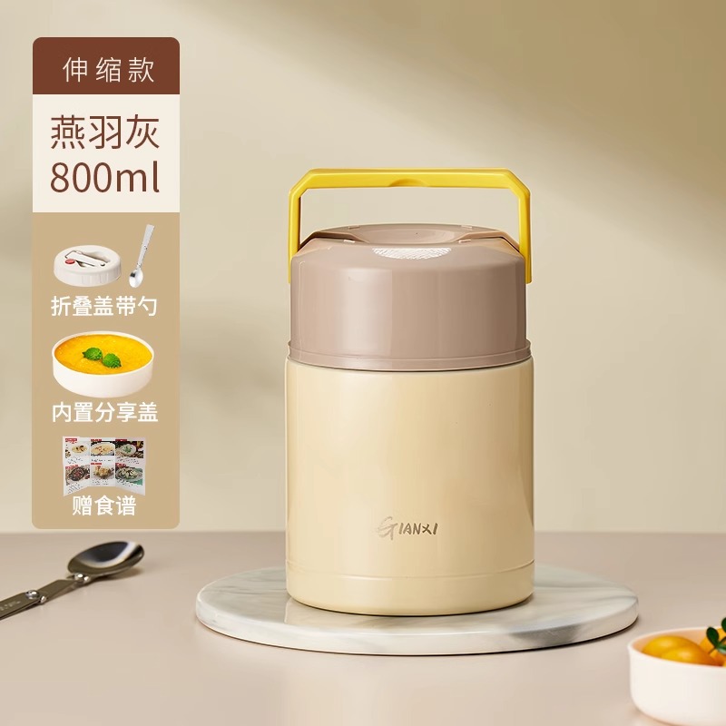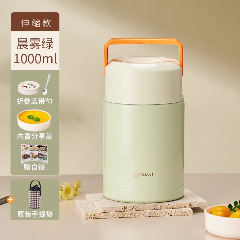 新款冬保鲜保温316不锈钢焖烧杯 便携提手一键按压排气保温饭盒桶
