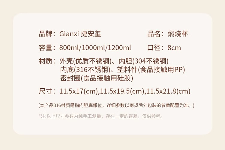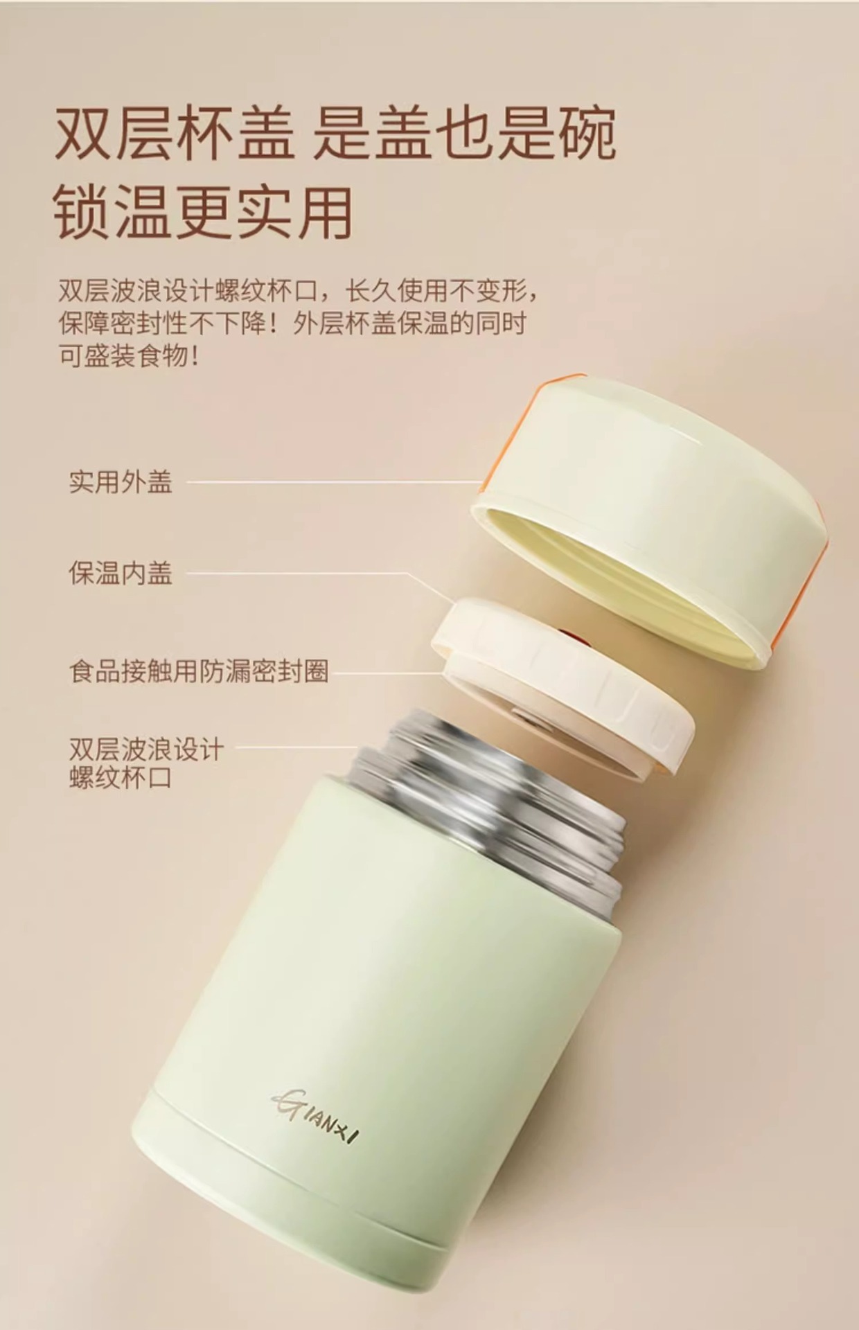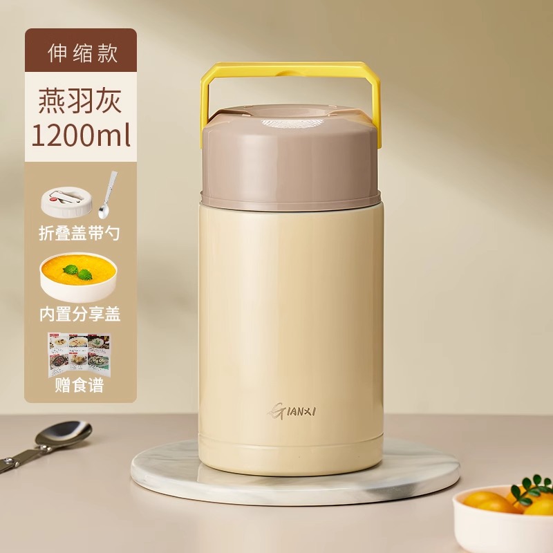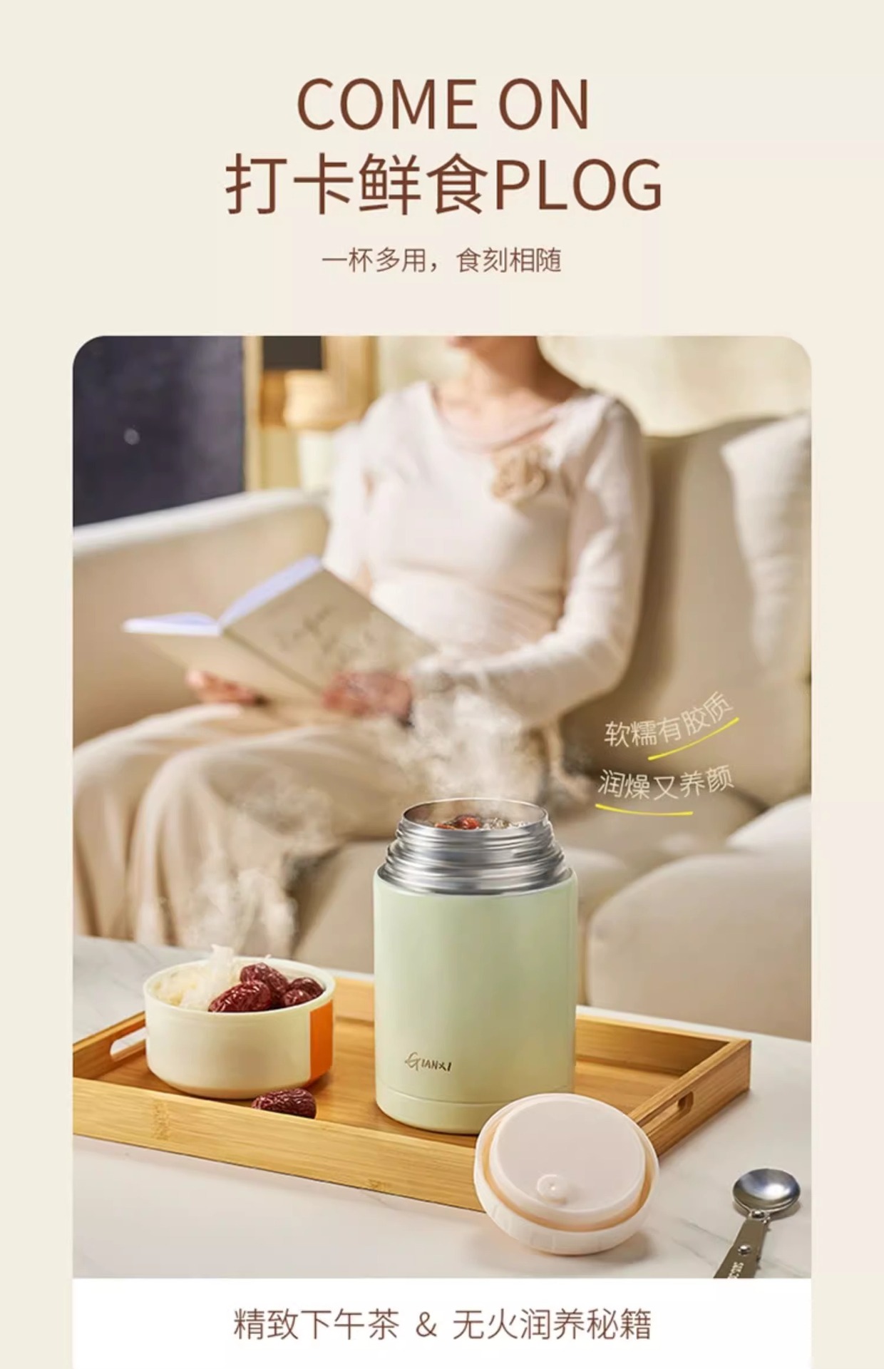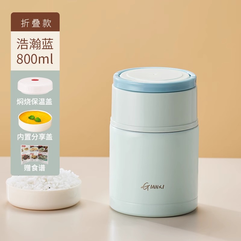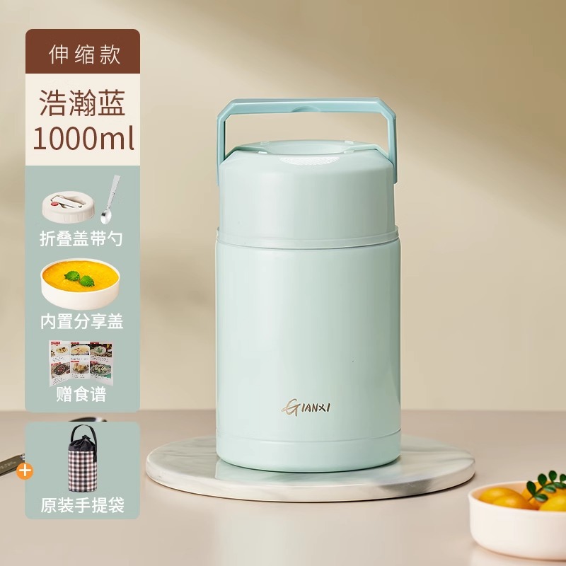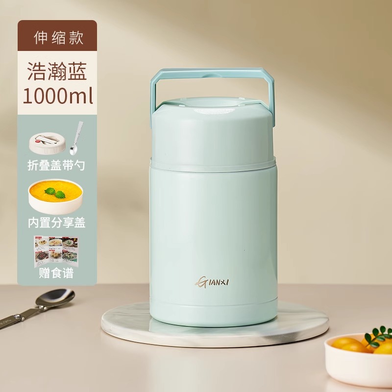 新款冬保鲜保温316不锈钢焖烧杯 便携提手一键按压排气保温饭盒桶