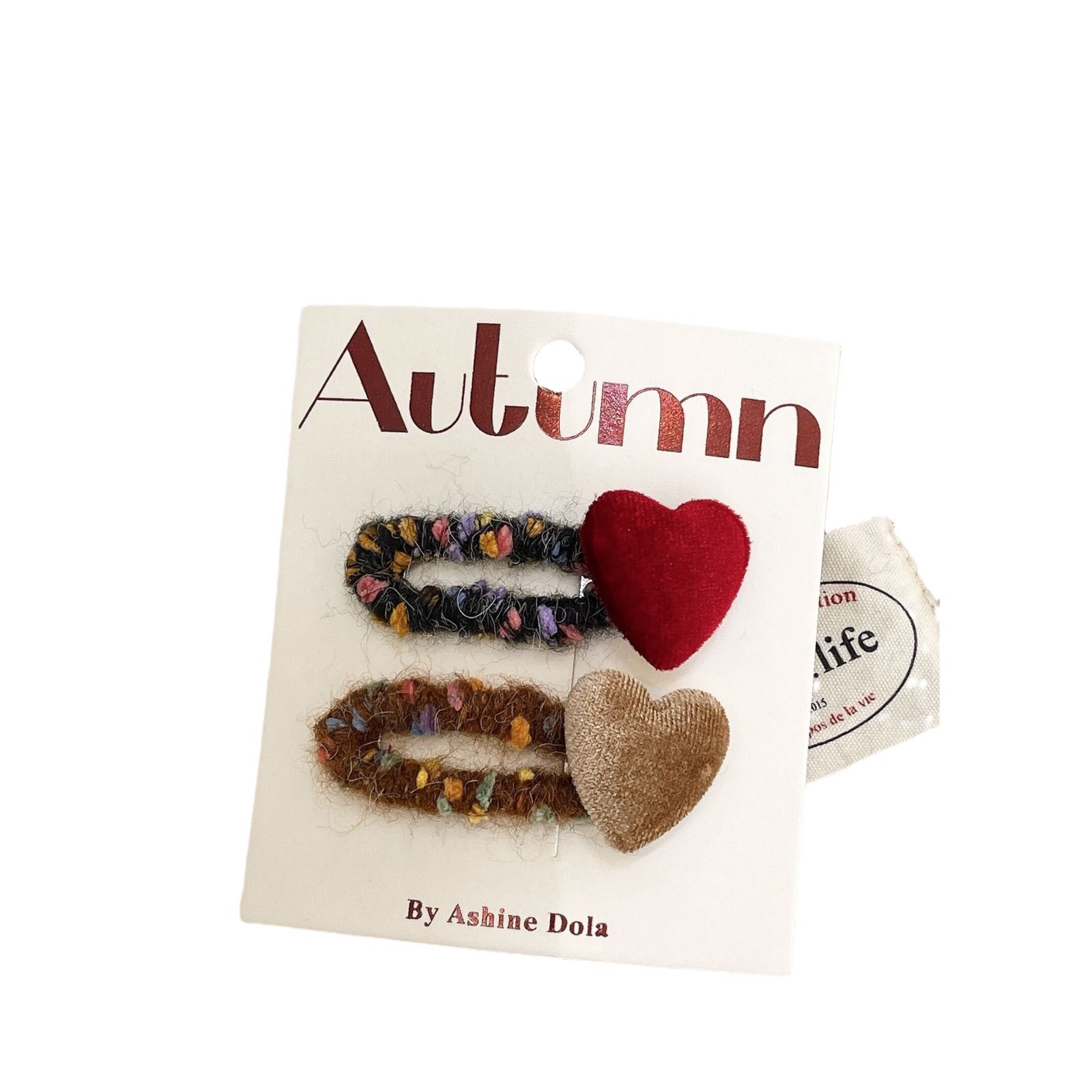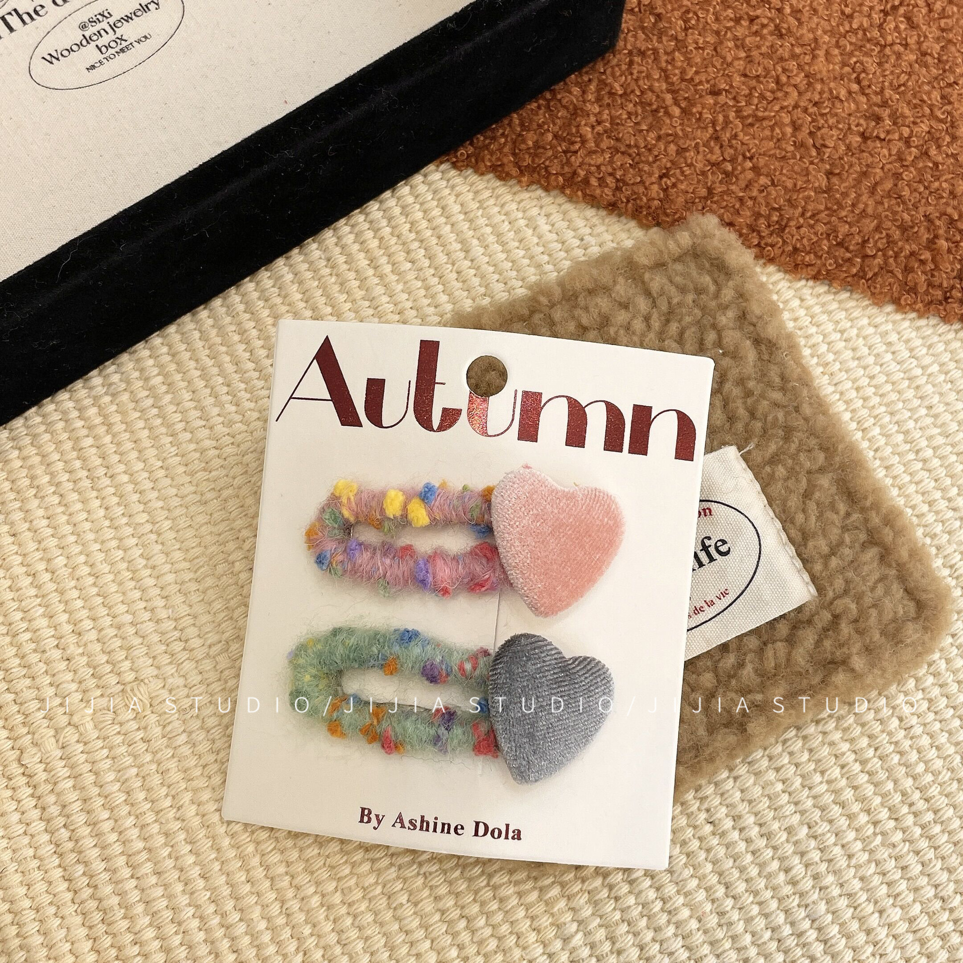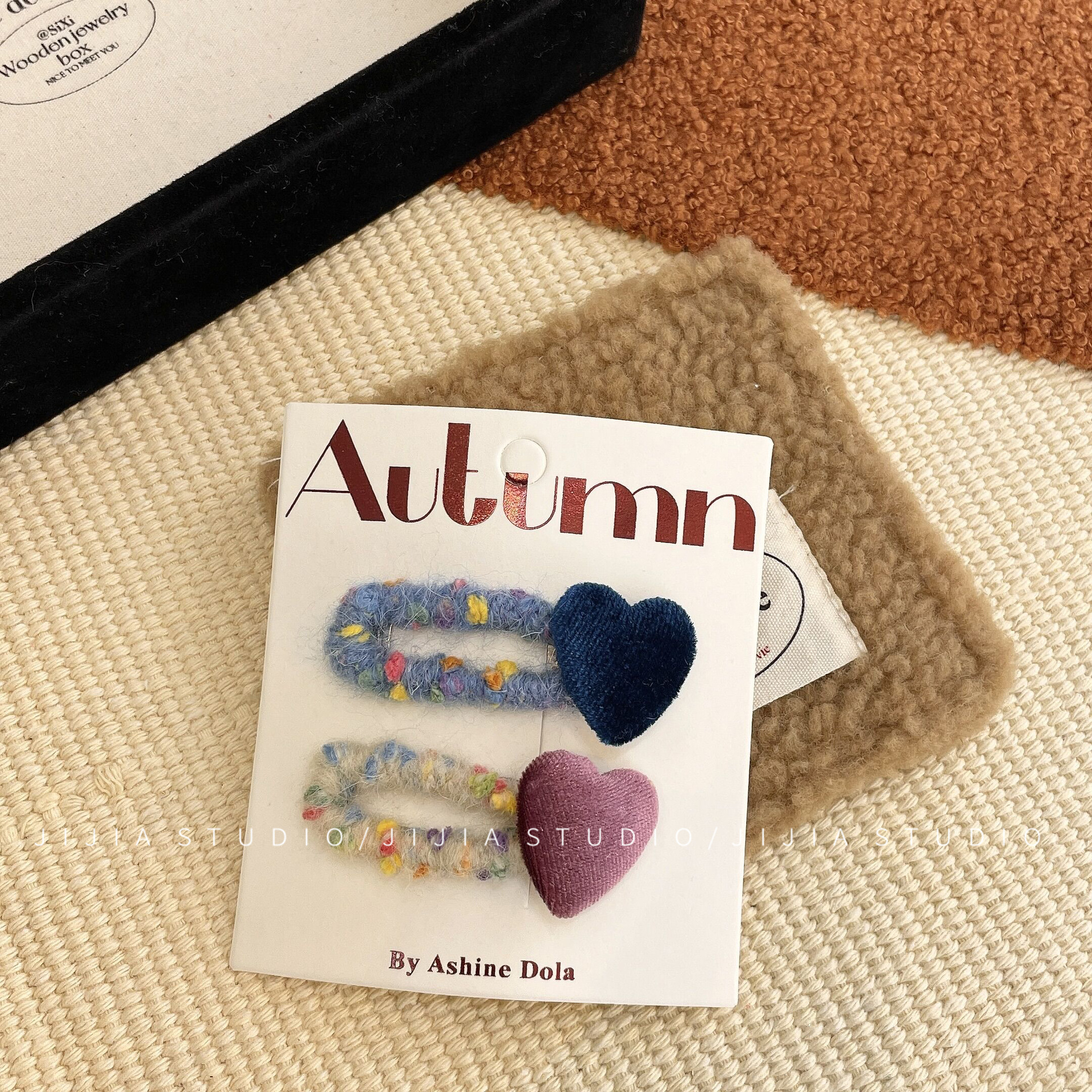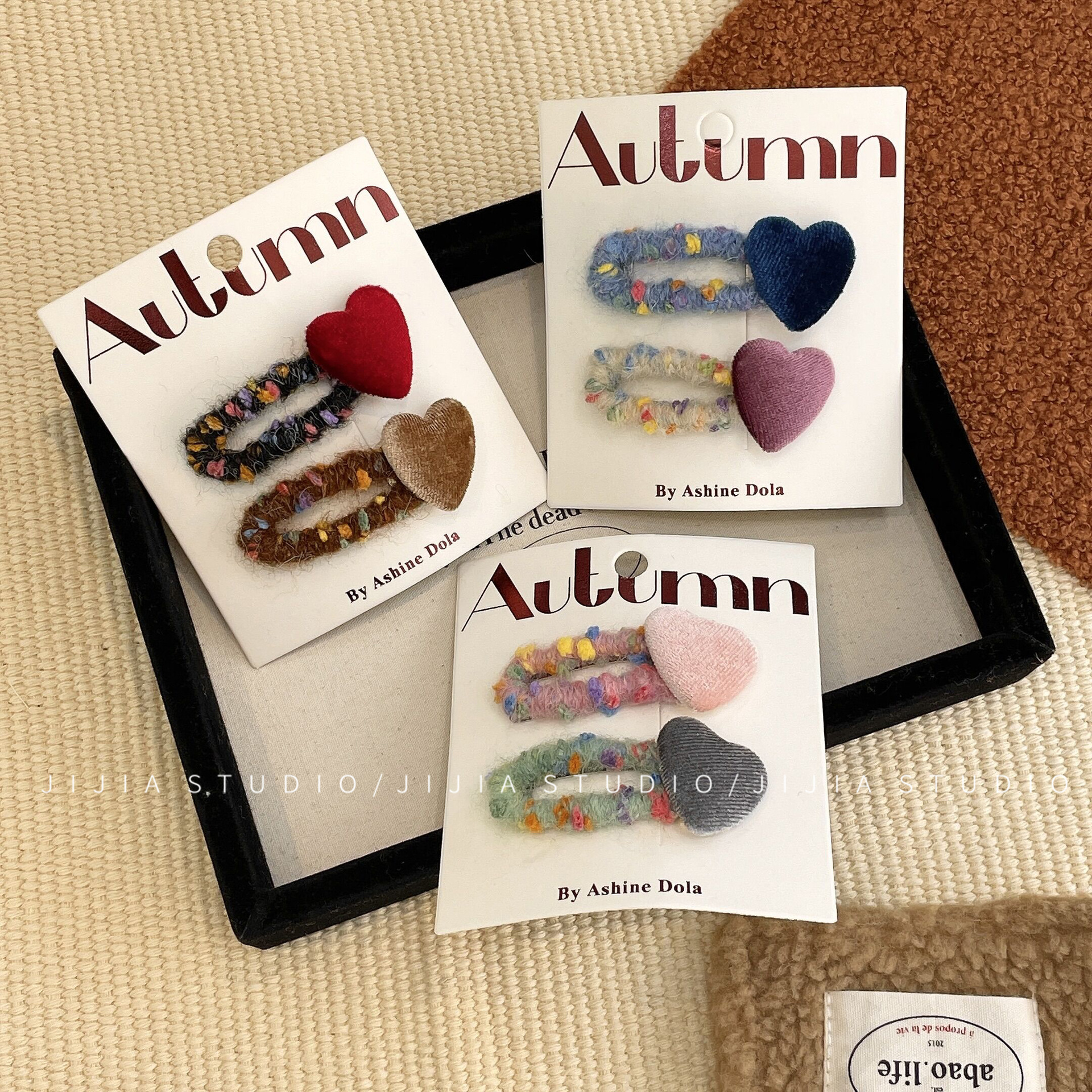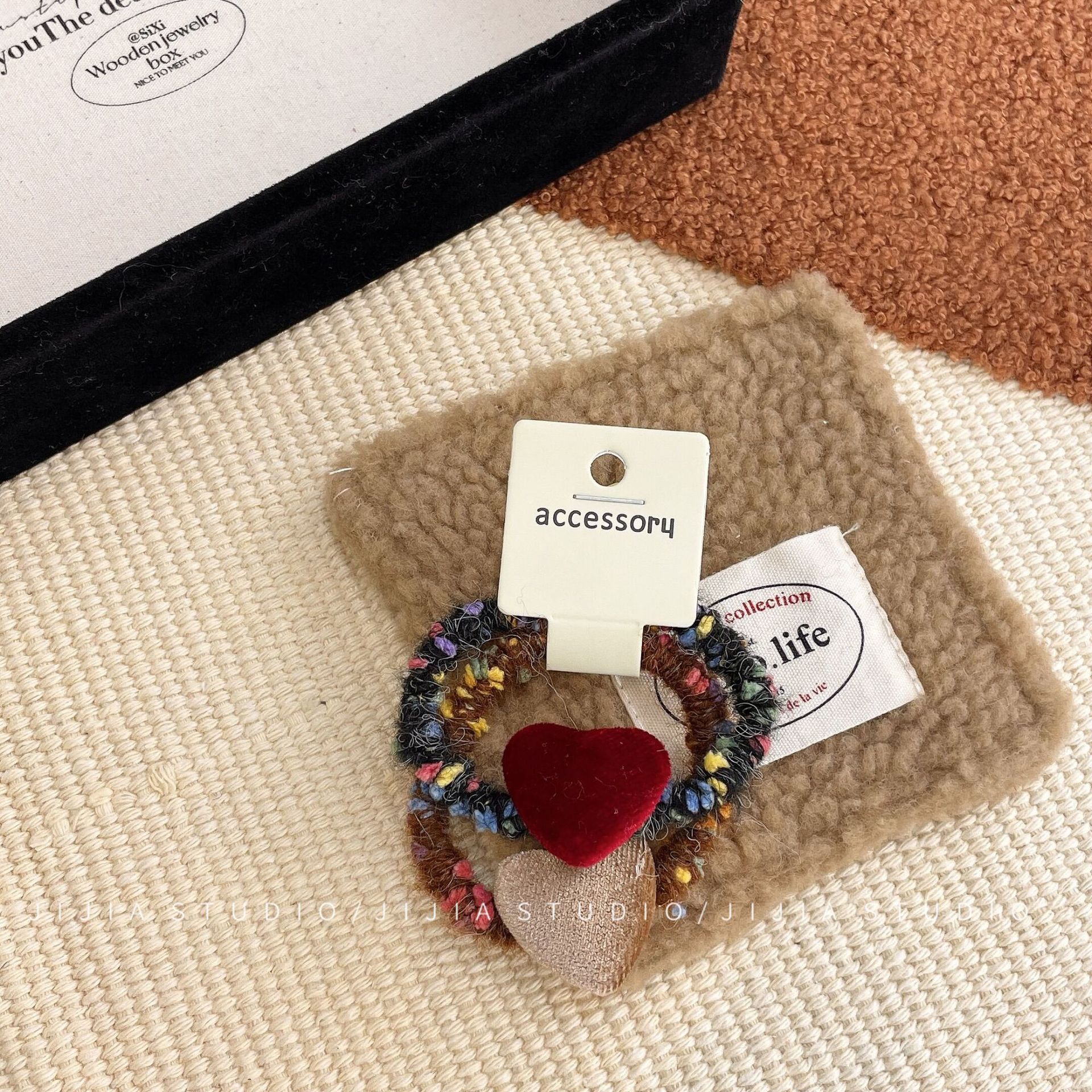 秋冬撞色丝绒爱心发夹复古毛线不伤发发绳甜美侧边发夹碎发头饰