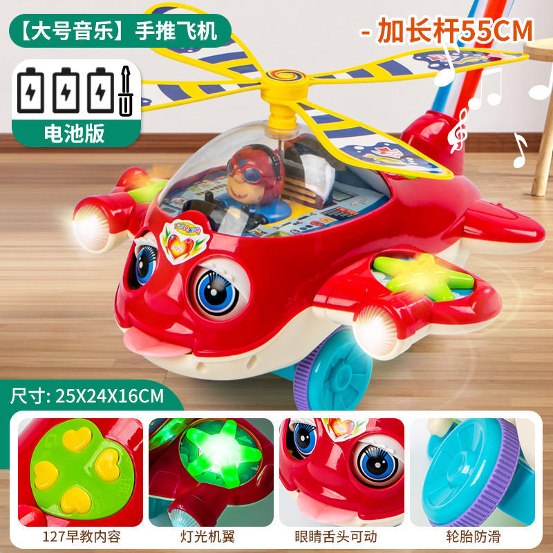 宝宝学步手推车蝴蝶多功能助步车响铃手推飞机地摊玩具礼物推推乐