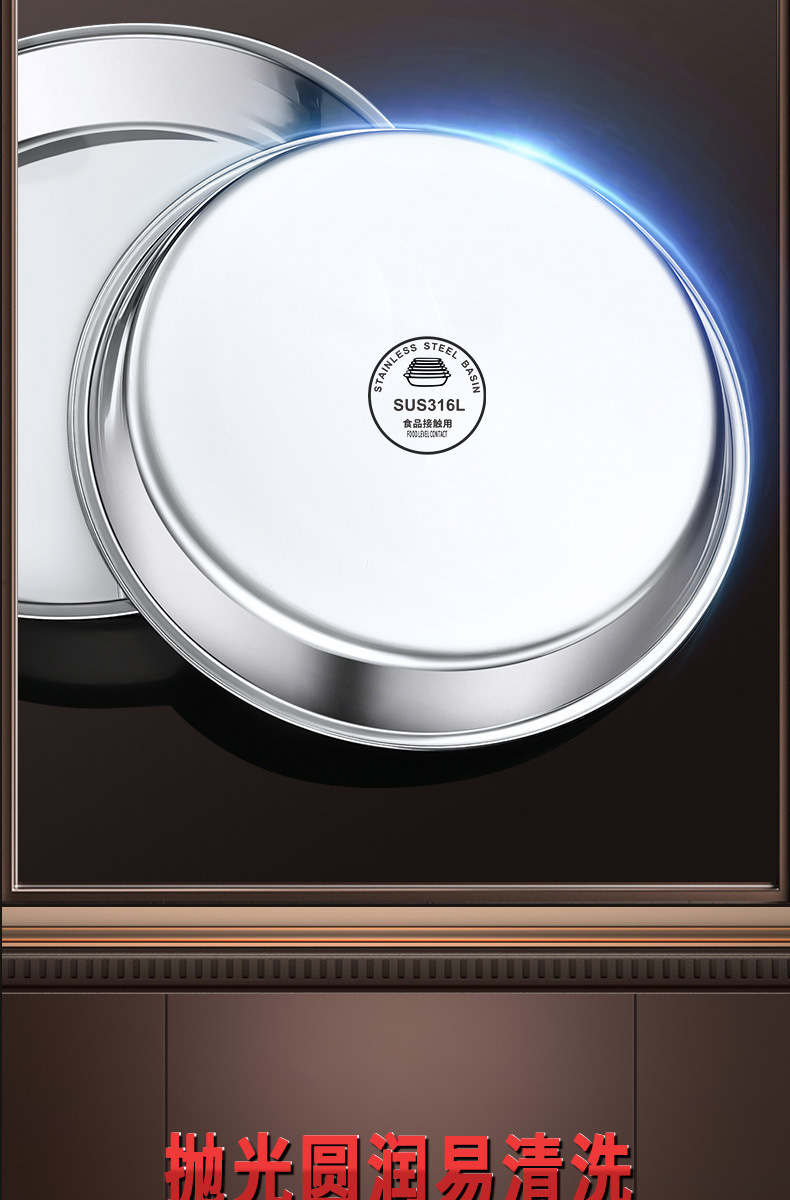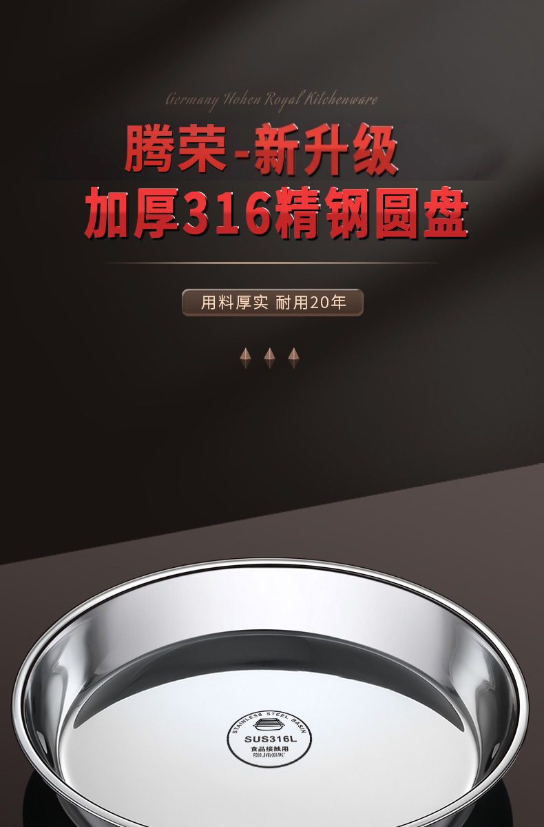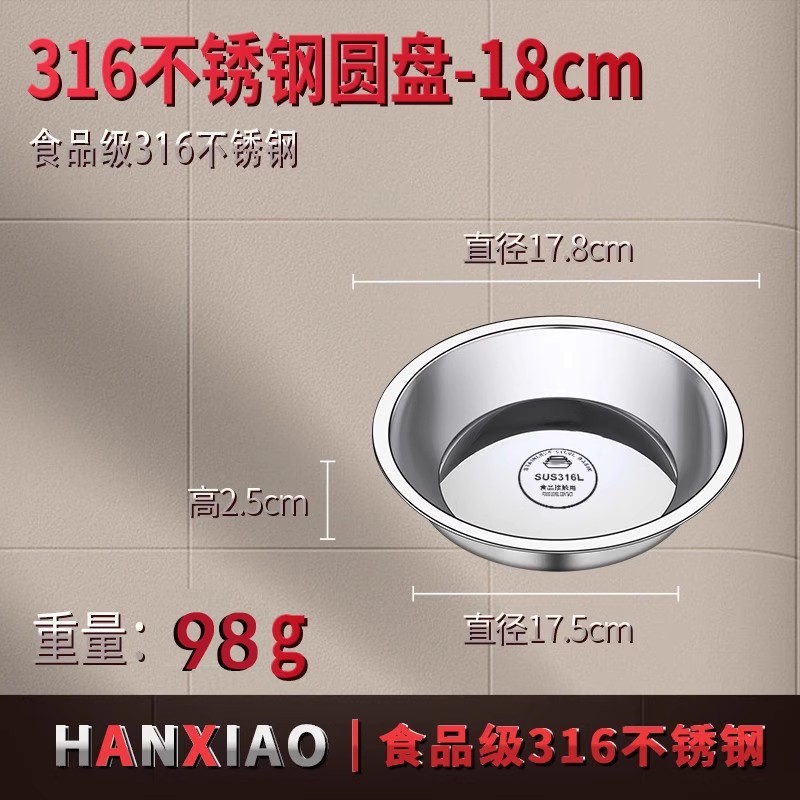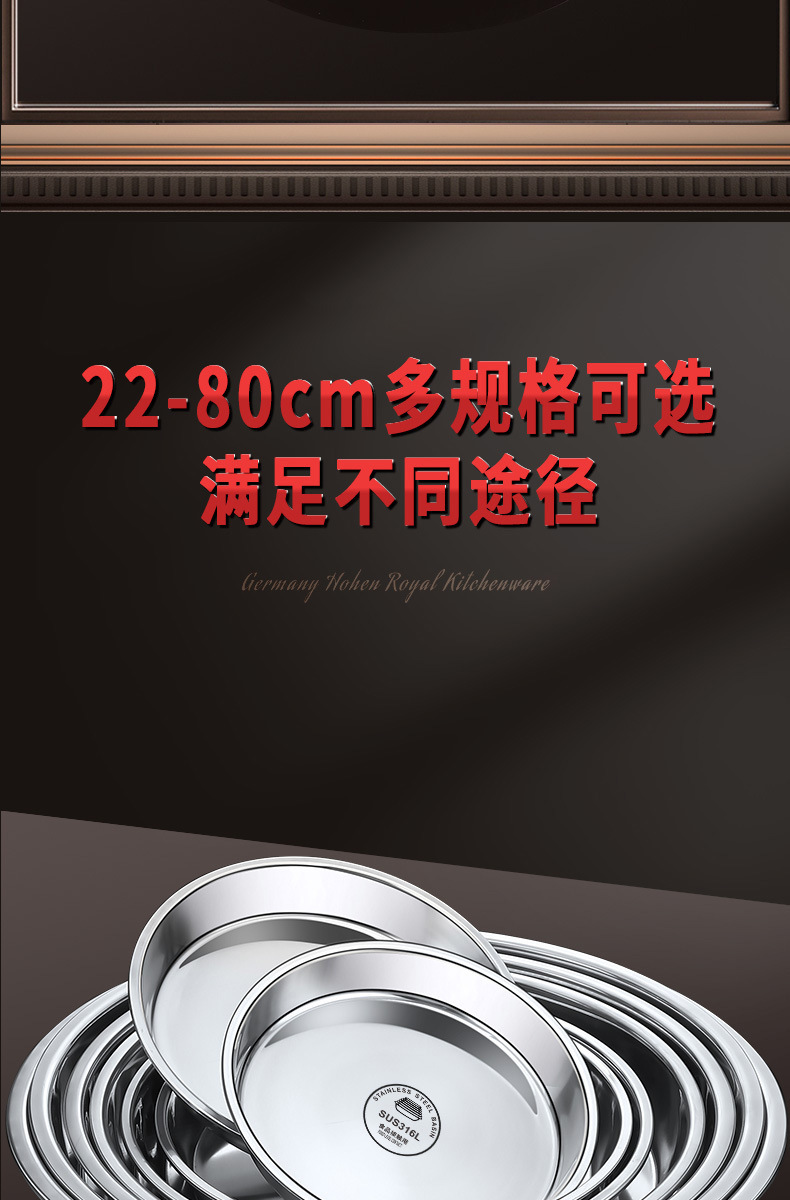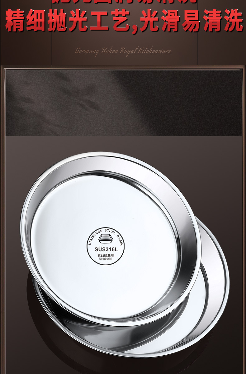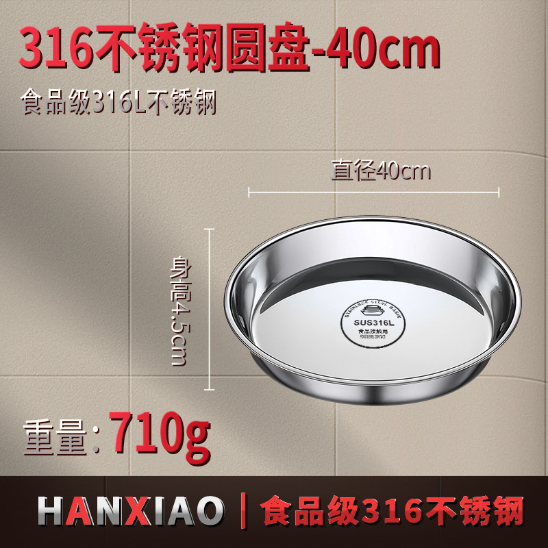 316食品级不锈钢大圆盘子家用浅盘蒸盘圆形托盘铁盘菜盘早餐碟子
