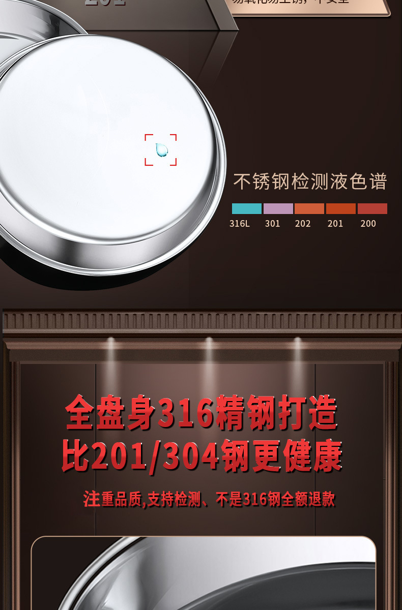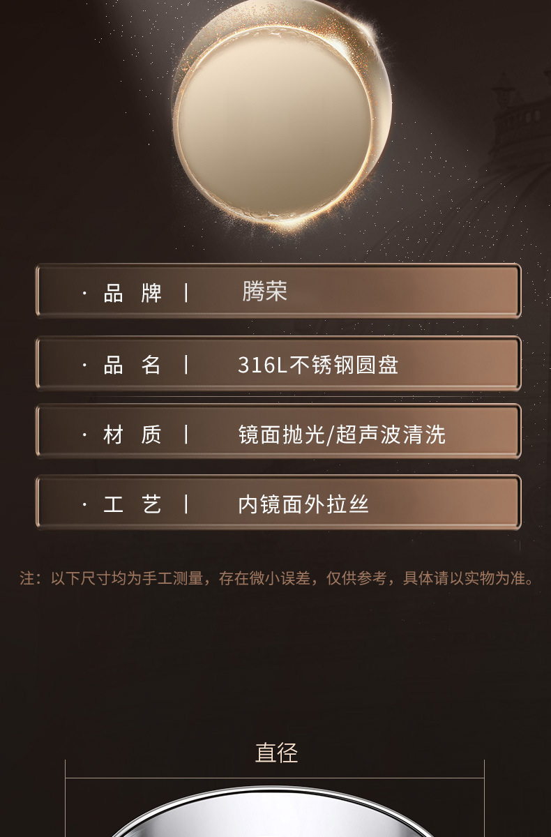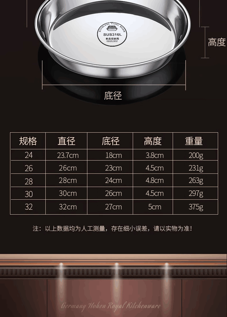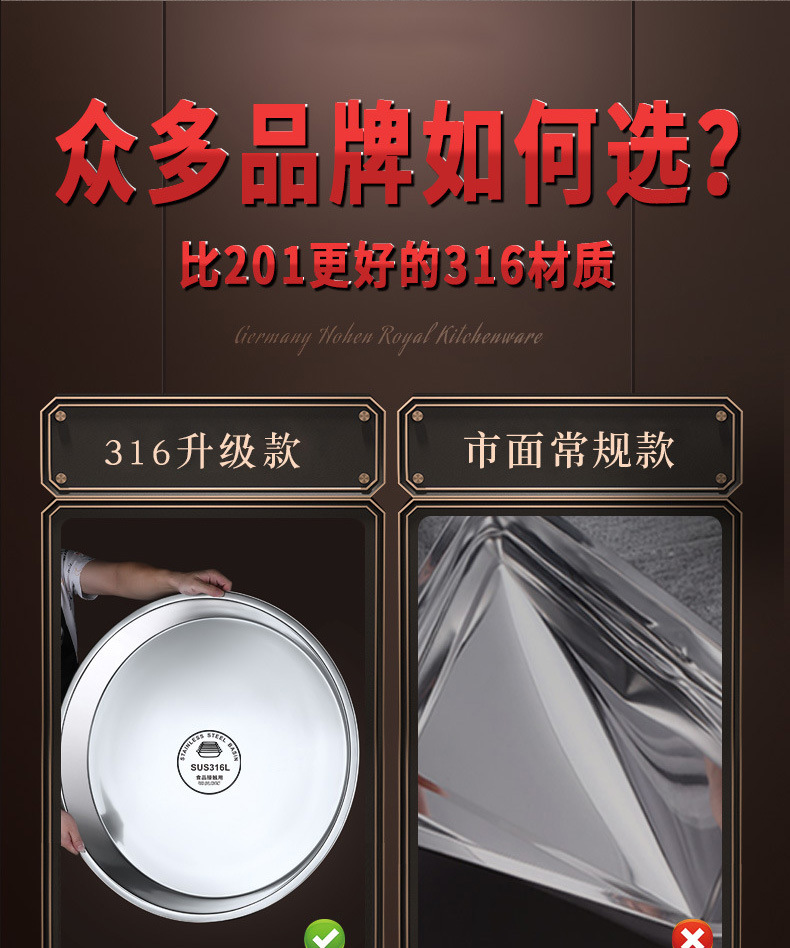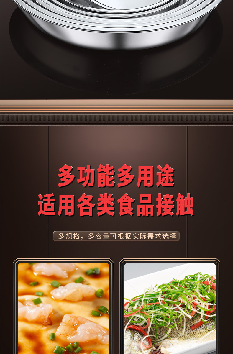 316食品级不锈钢大圆盘子家用浅盘蒸盘圆形托盘铁盘菜盘早餐碟子