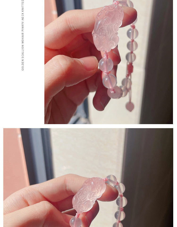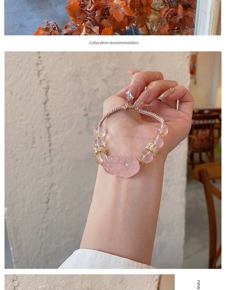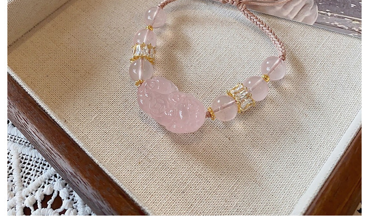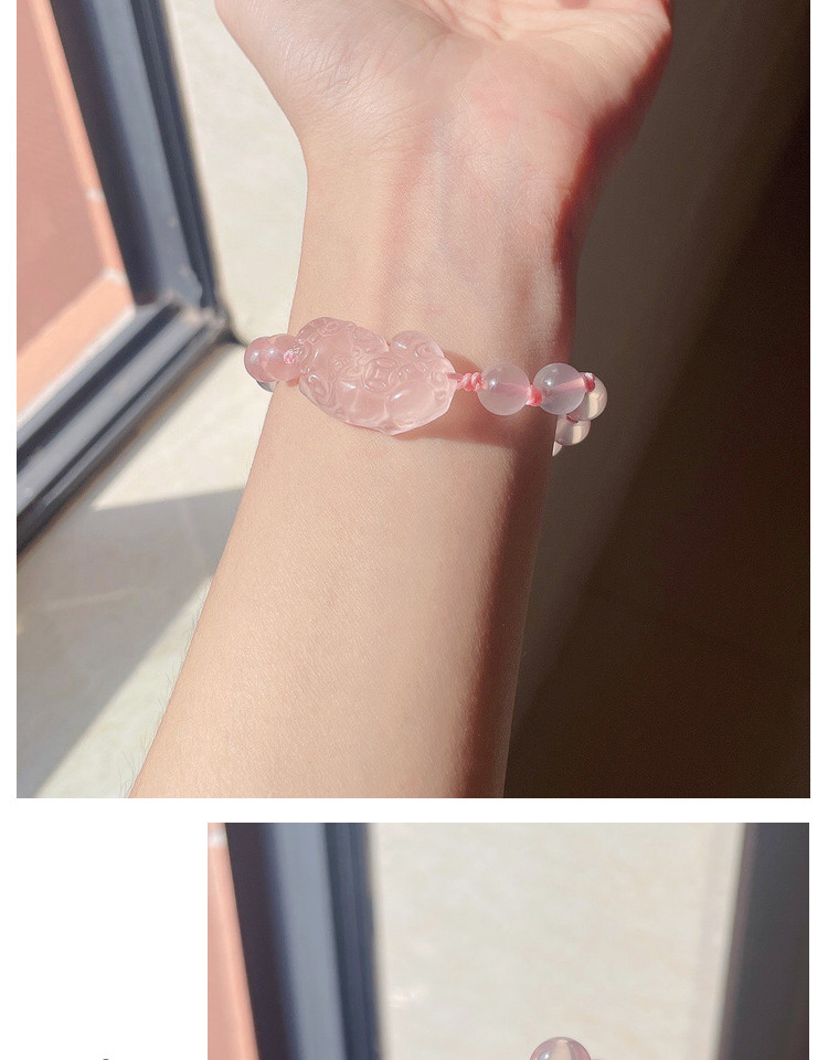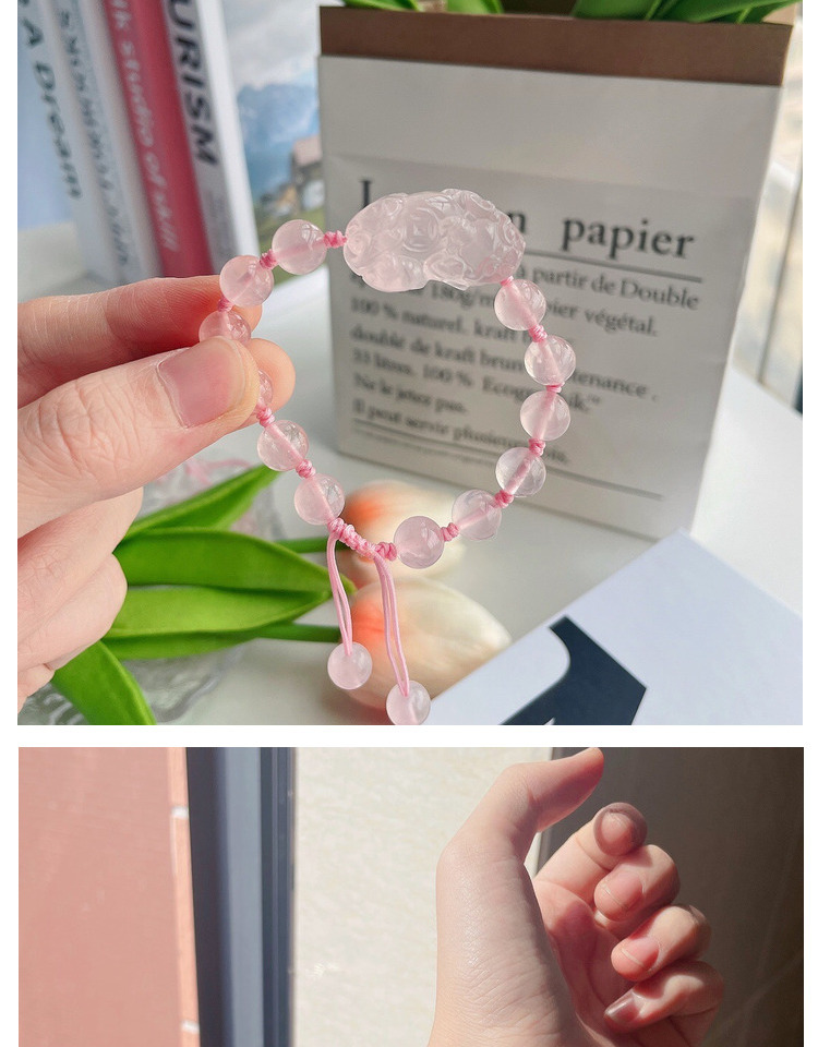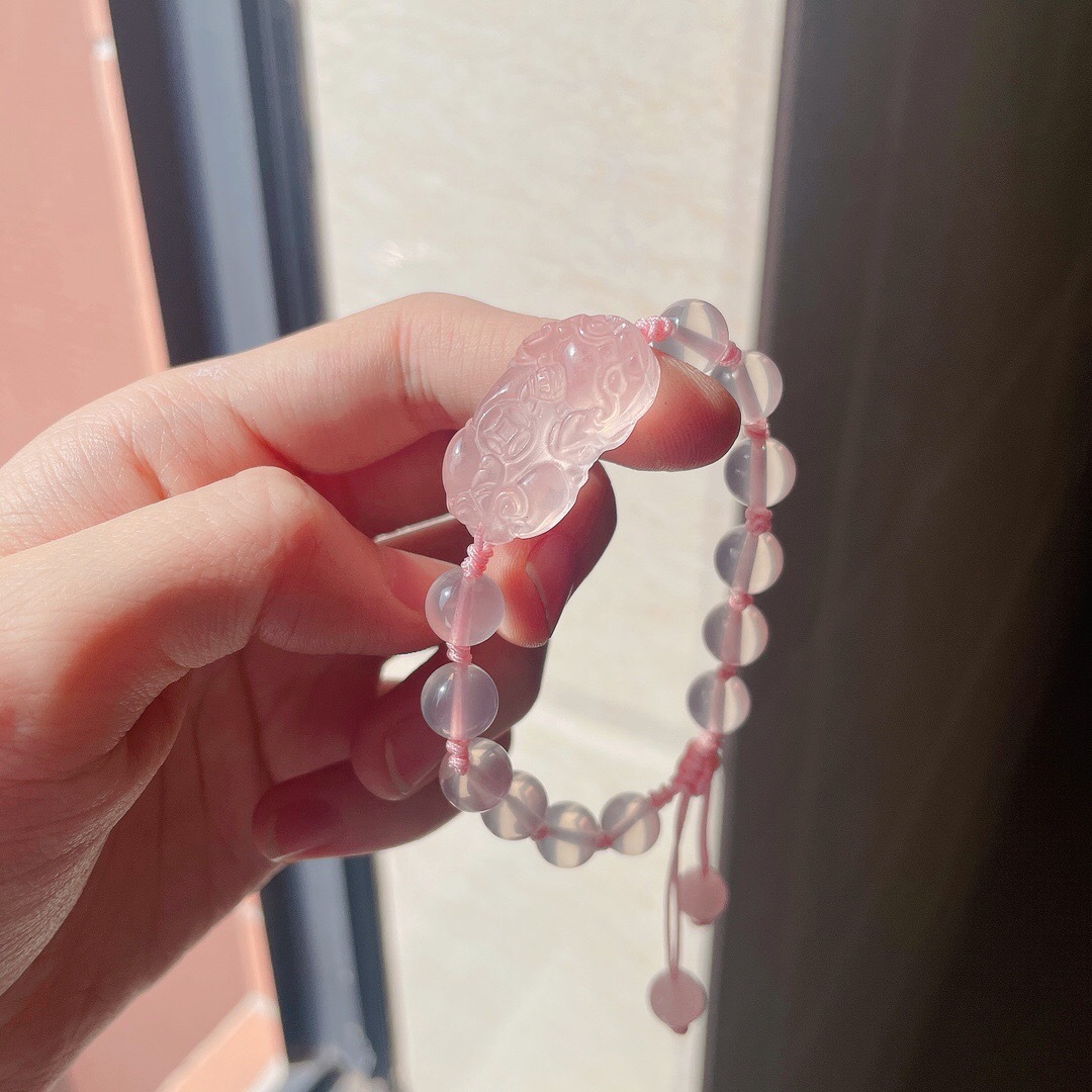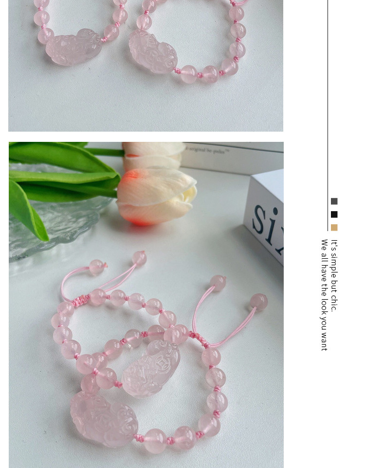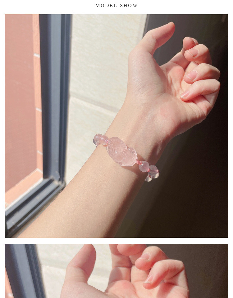 天然马达加斯加粉晶手链女芙蓉石马粉水晶貔貅手链桃花手串