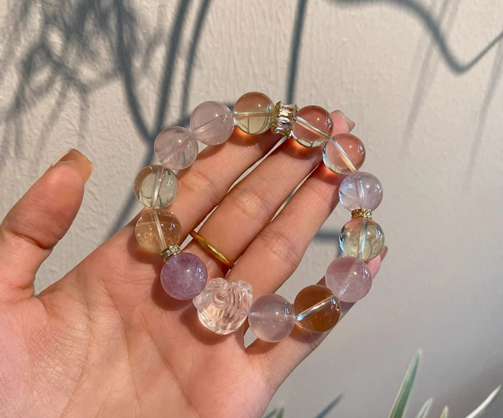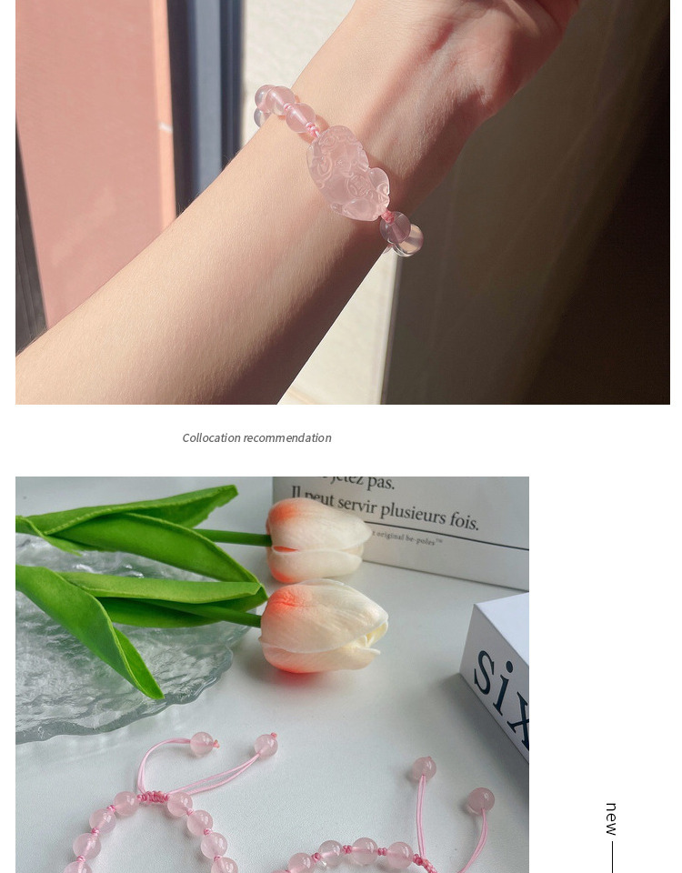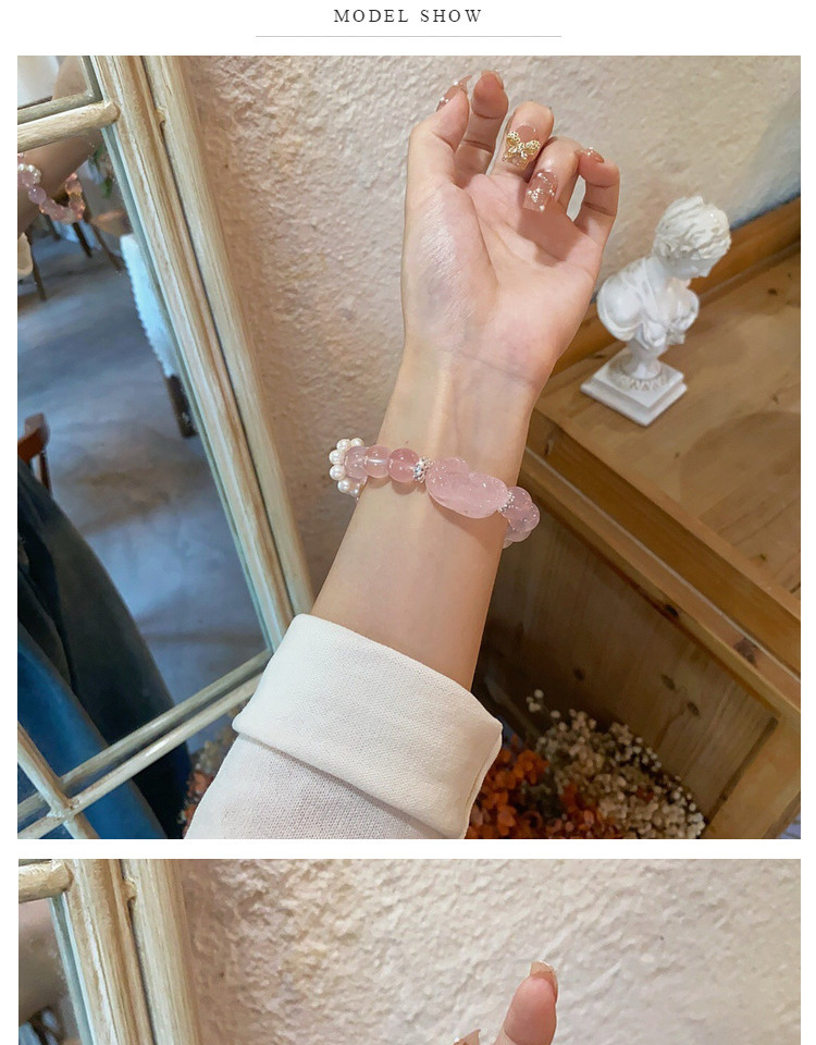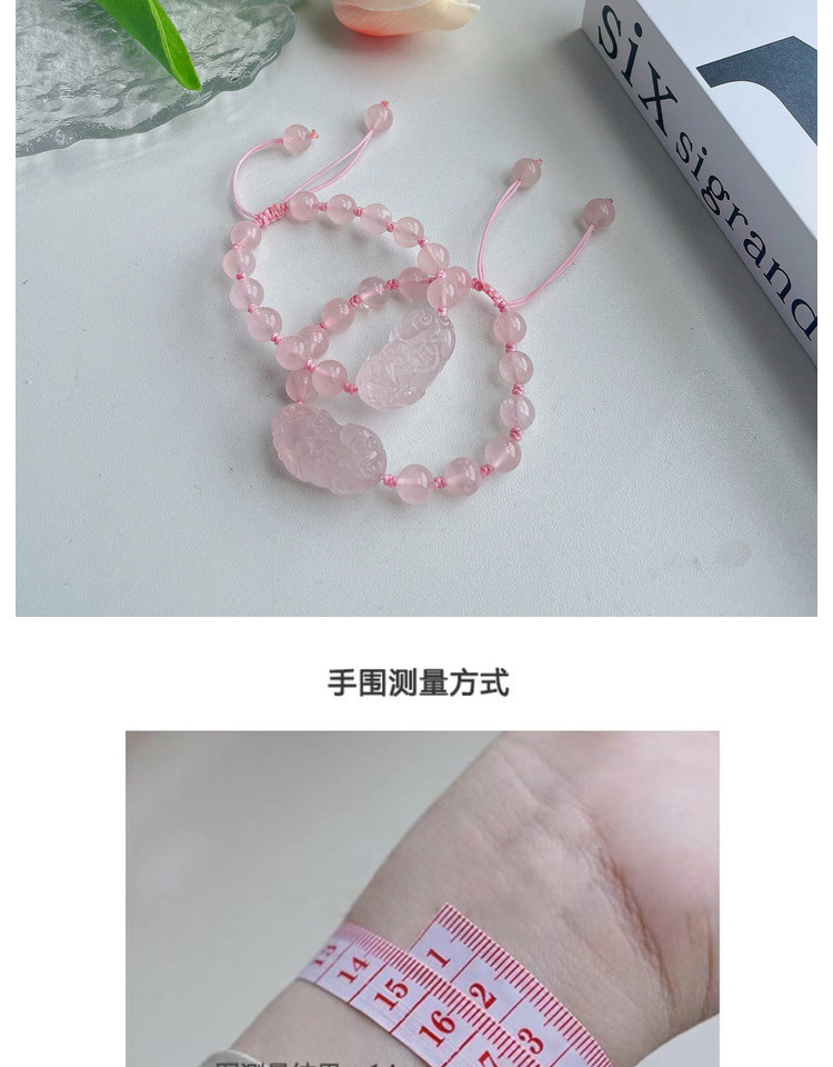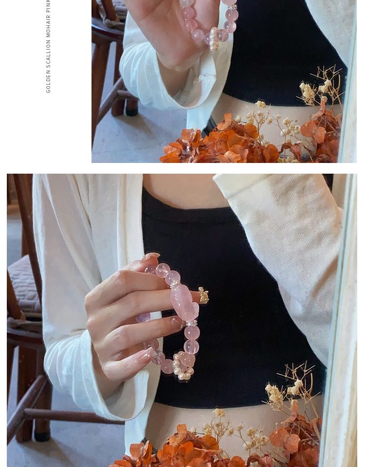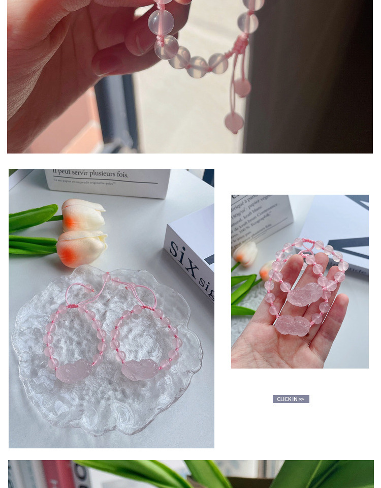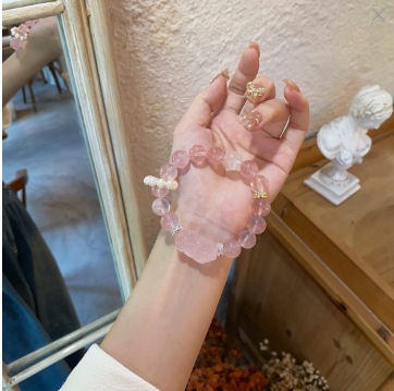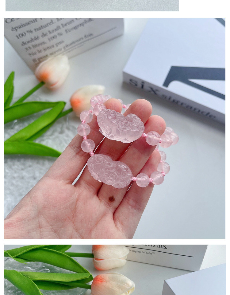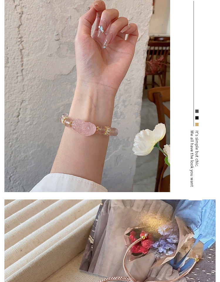 天然马达加斯加粉晶手链女芙蓉石马粉水晶貔貅手链桃花手串