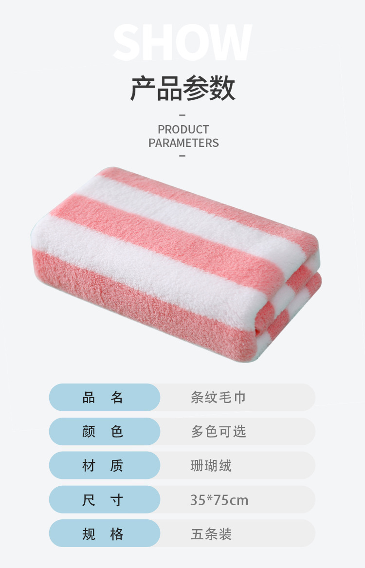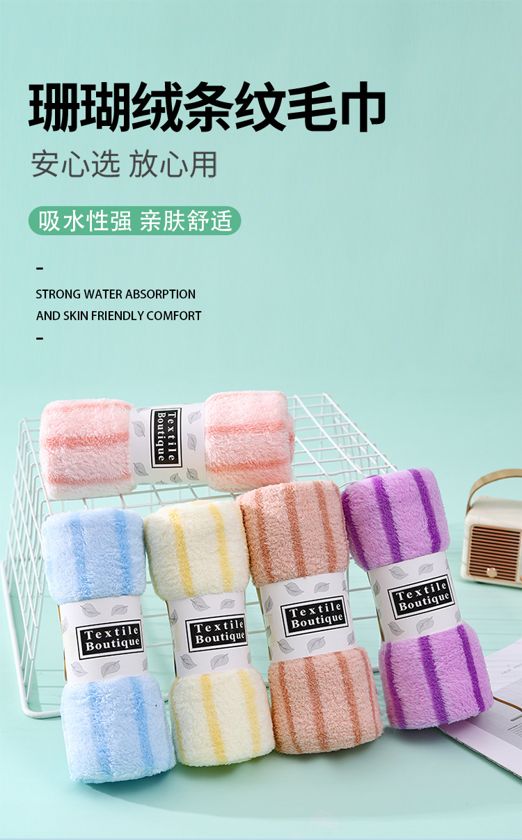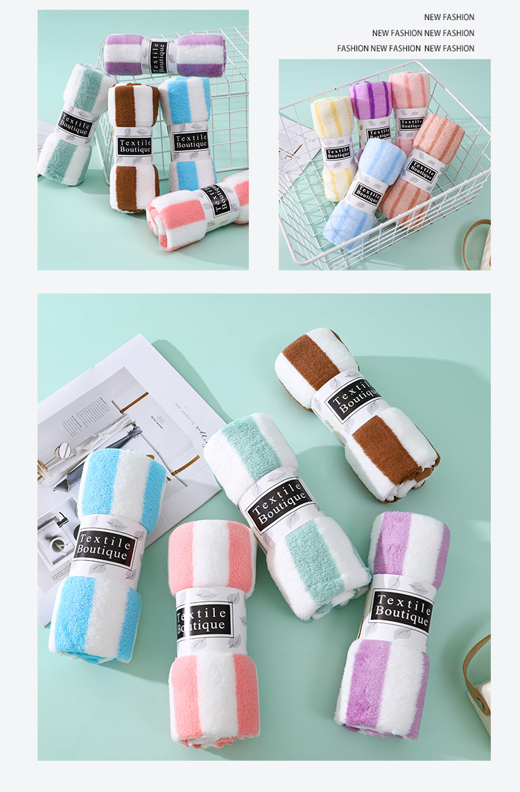高密珊瑚绒毛巾腰封包装 宽窄彩条纹吸水速干不掉毛礼品毛巾批发