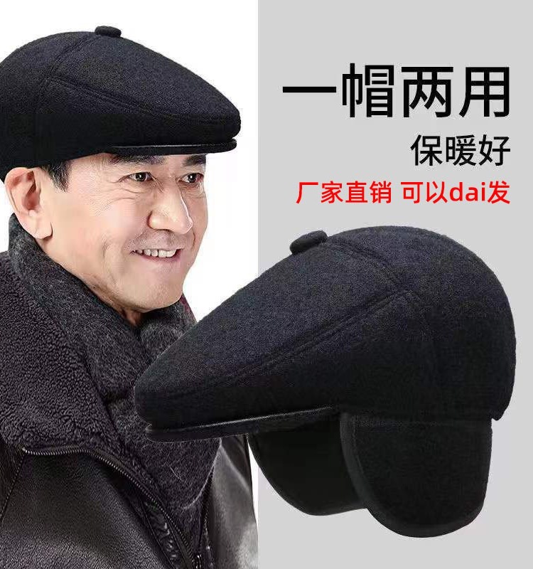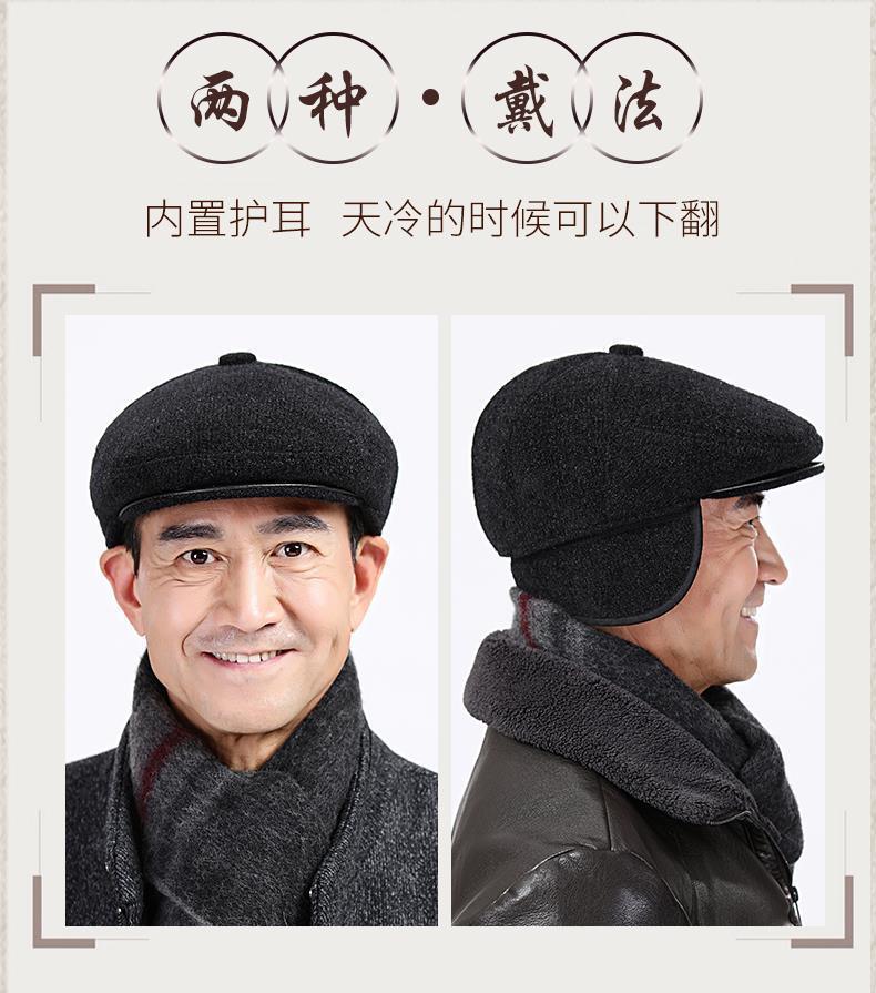 冬天中老年前进帽爷爷爸爸护耳老头鸭舌帽户外百搭加绒加厚帽子