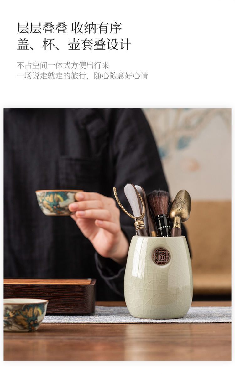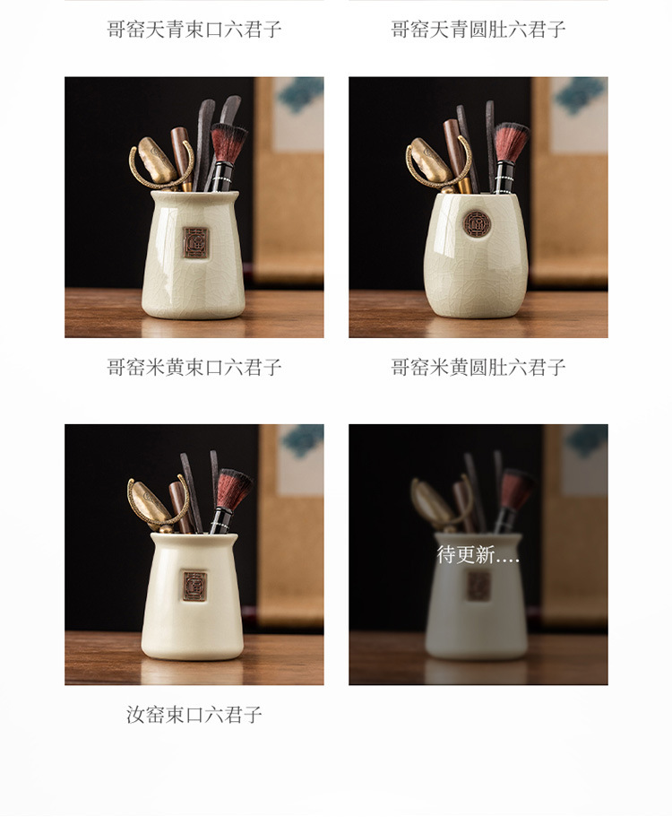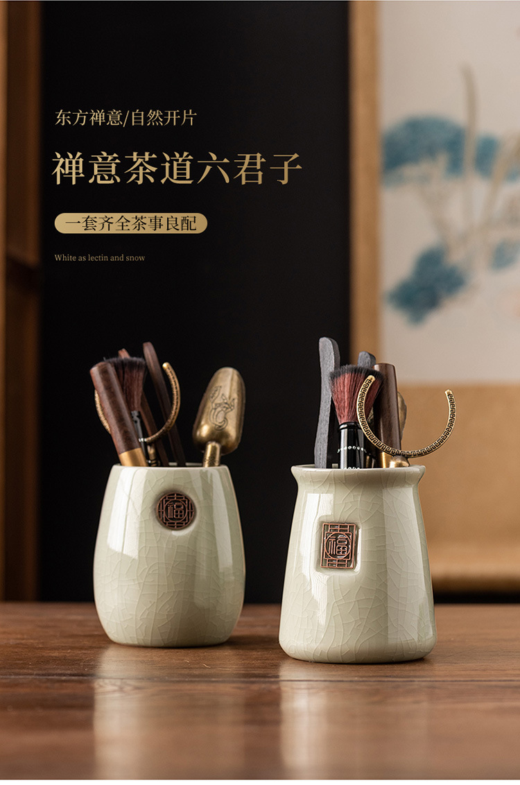 汝窑茶道六君子实木茶夹茶勺茶针刷茶具整套开片可养量大实惠批发