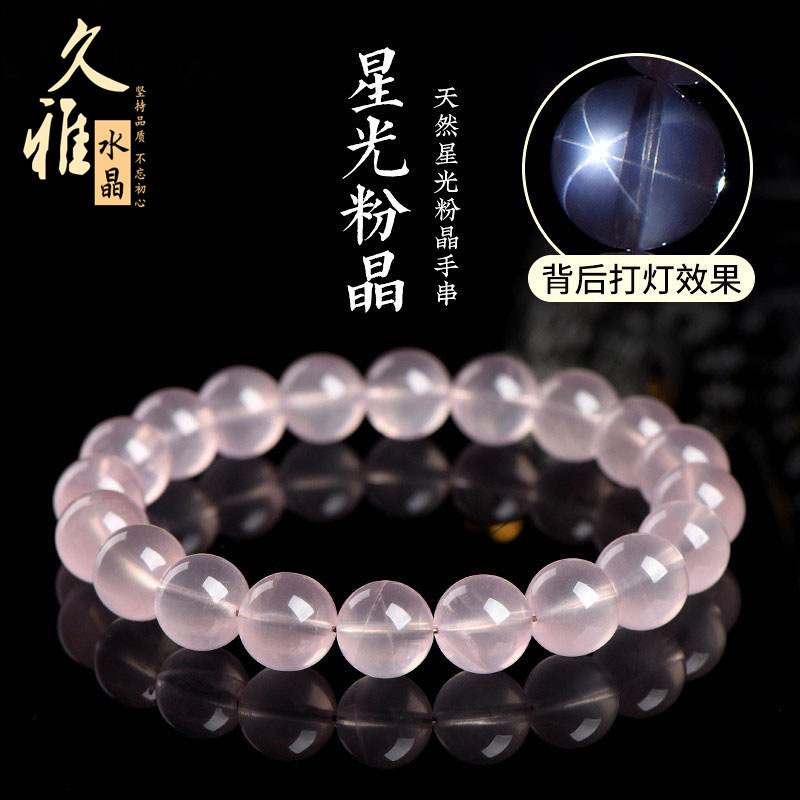 久雅水晶 天然星光莫桑粉水晶手串 粉色水晶圆珠手链 厂家直销