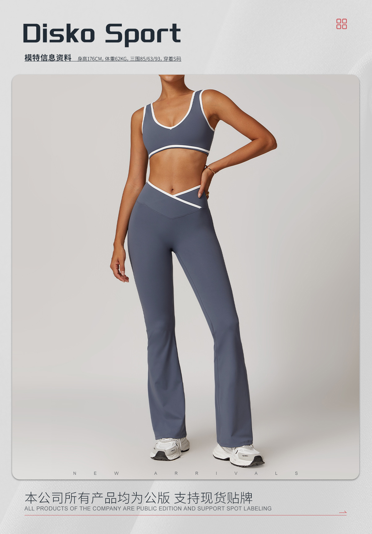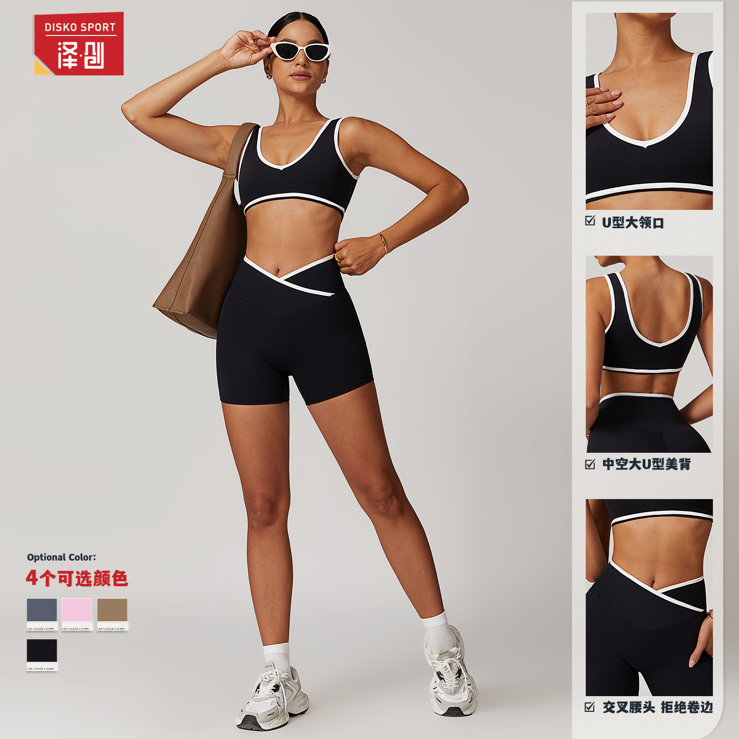 交叉高腰运动套装女撞色露背紧身裸感瑜伽套装跑步健身瑜伽服8843