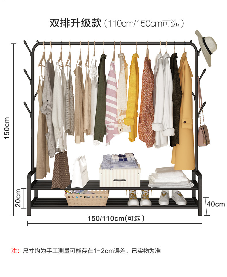 晾衣架落地卧室家用衣架室内阳台简易晾衣杆可移动折叠收纳挂衣架